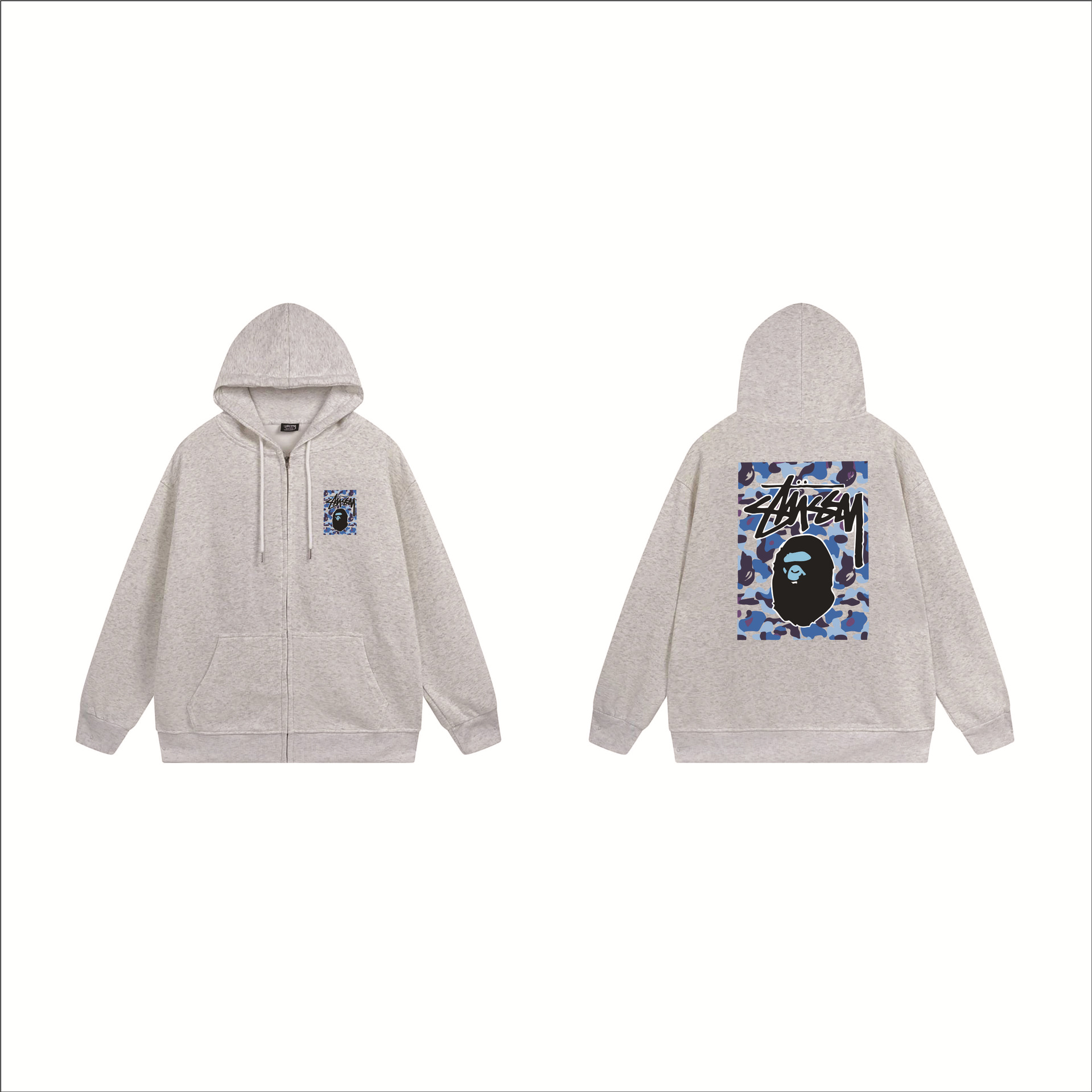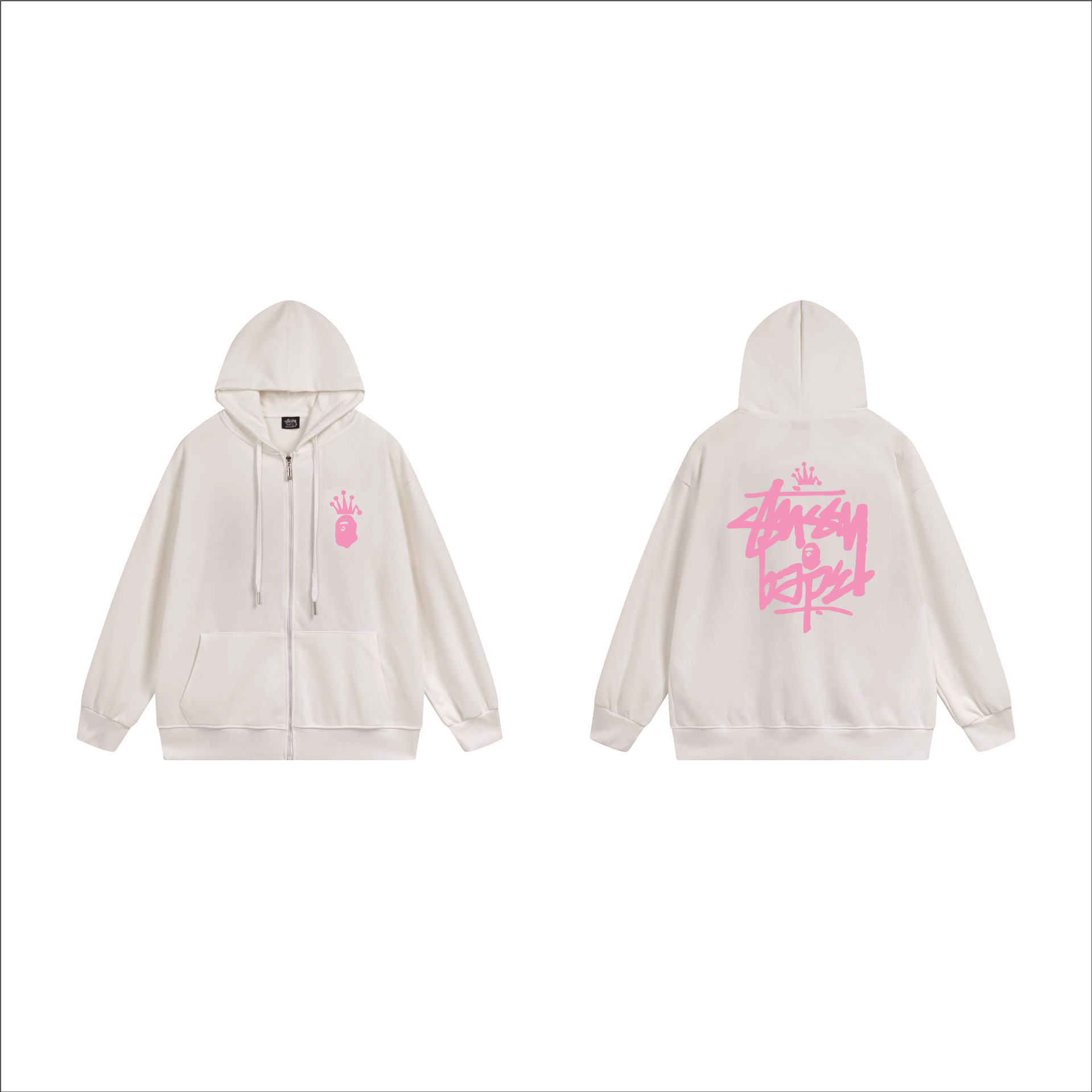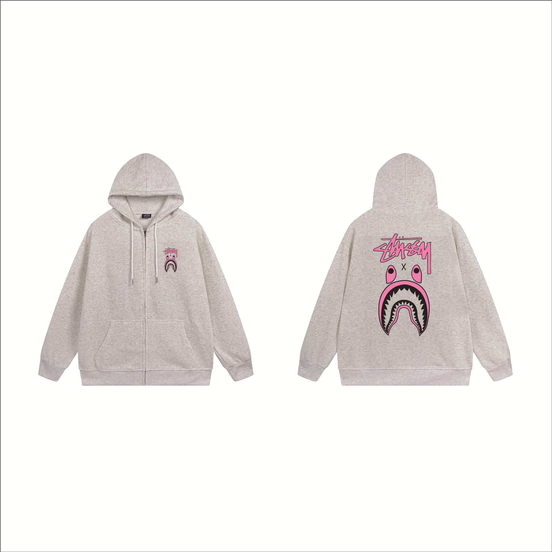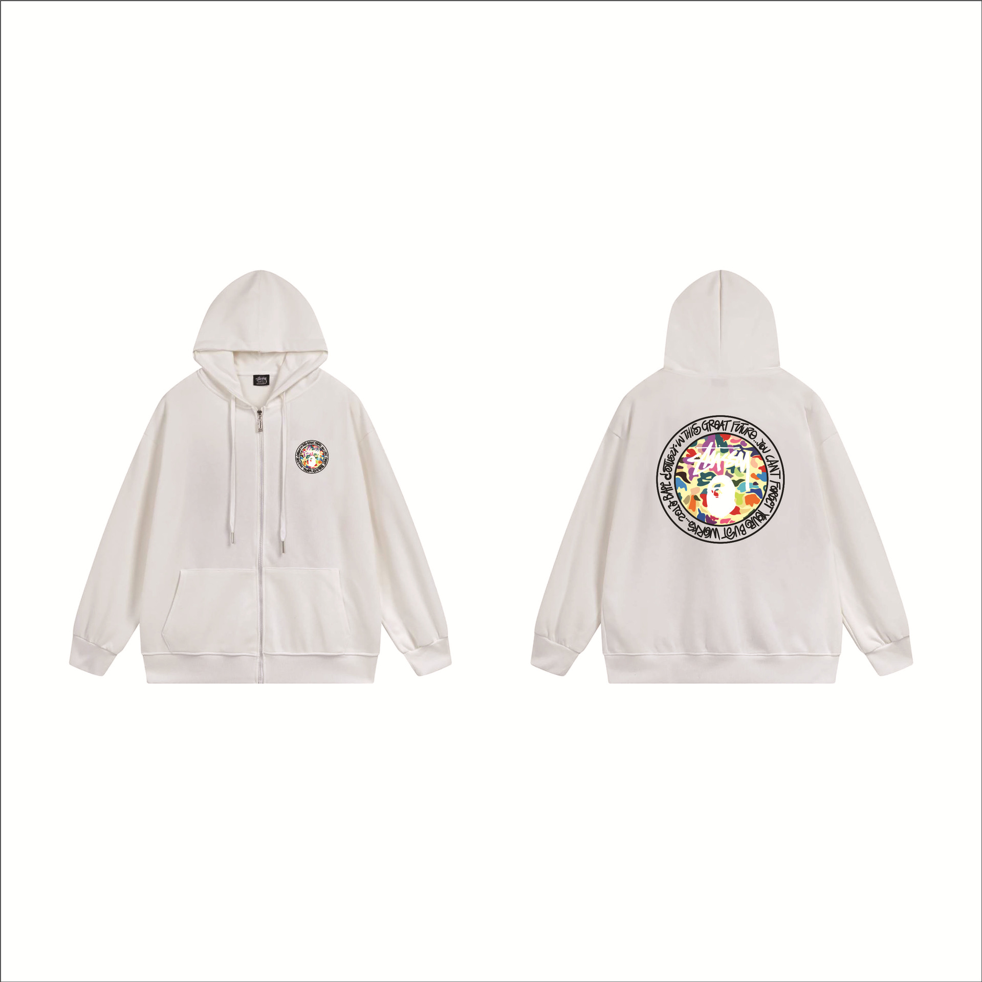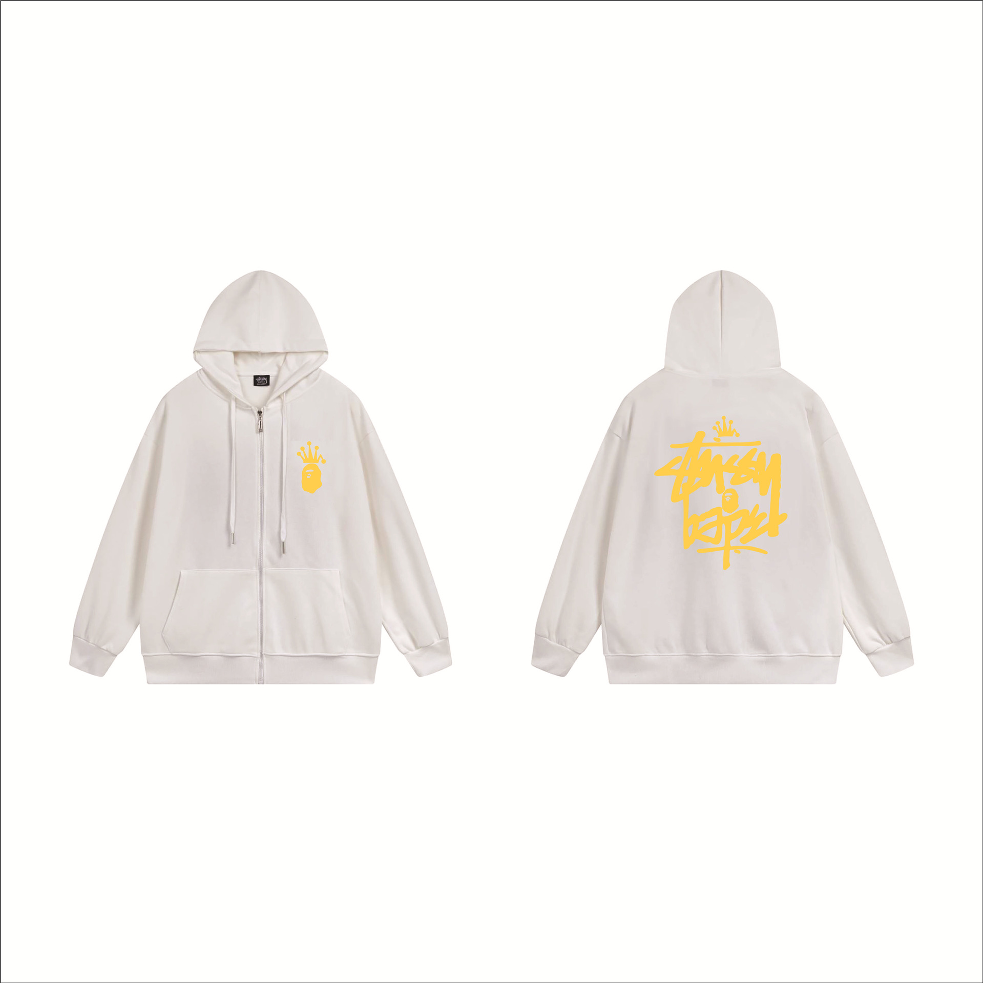 크로스보더 STU 스투자 브랜드 문자 패턴 프린트 블랙 8자 지퍼 후드 티셔츠 가을/겨울 남녀공용