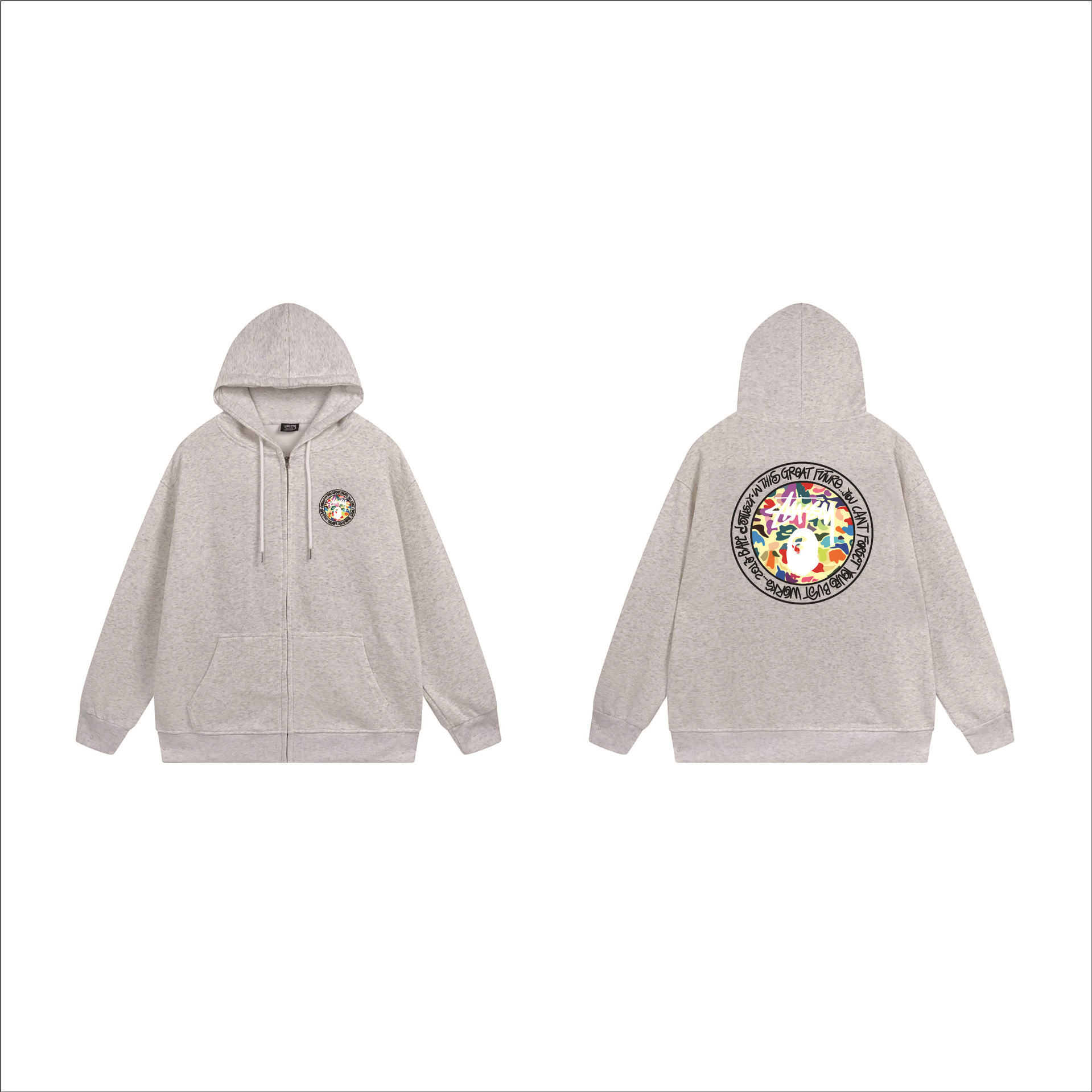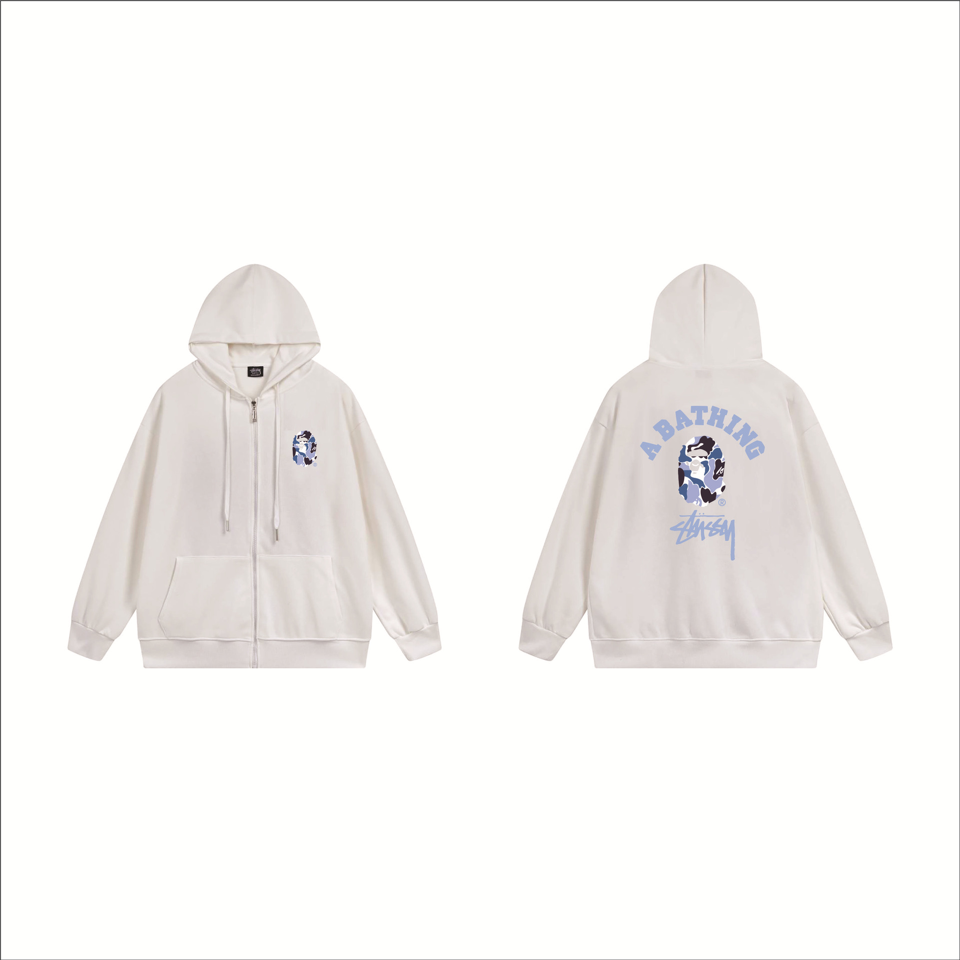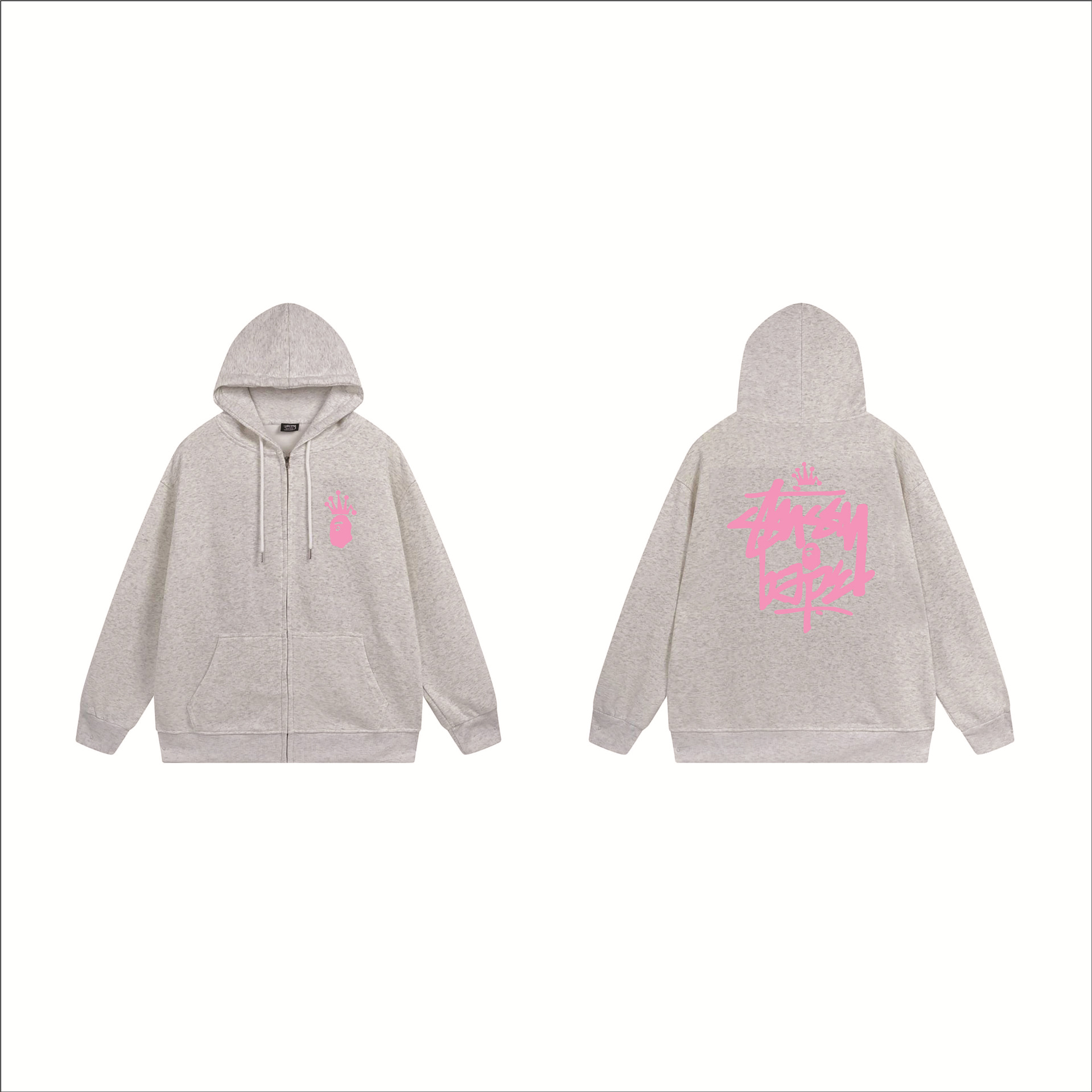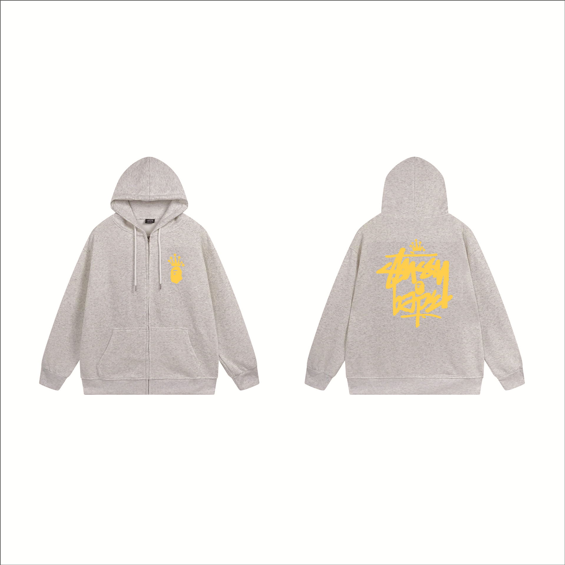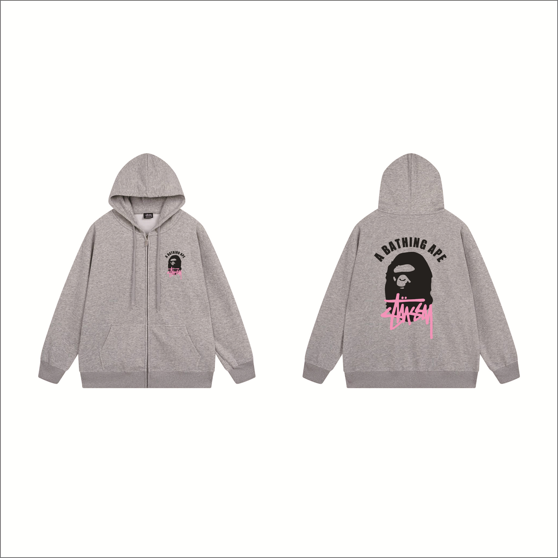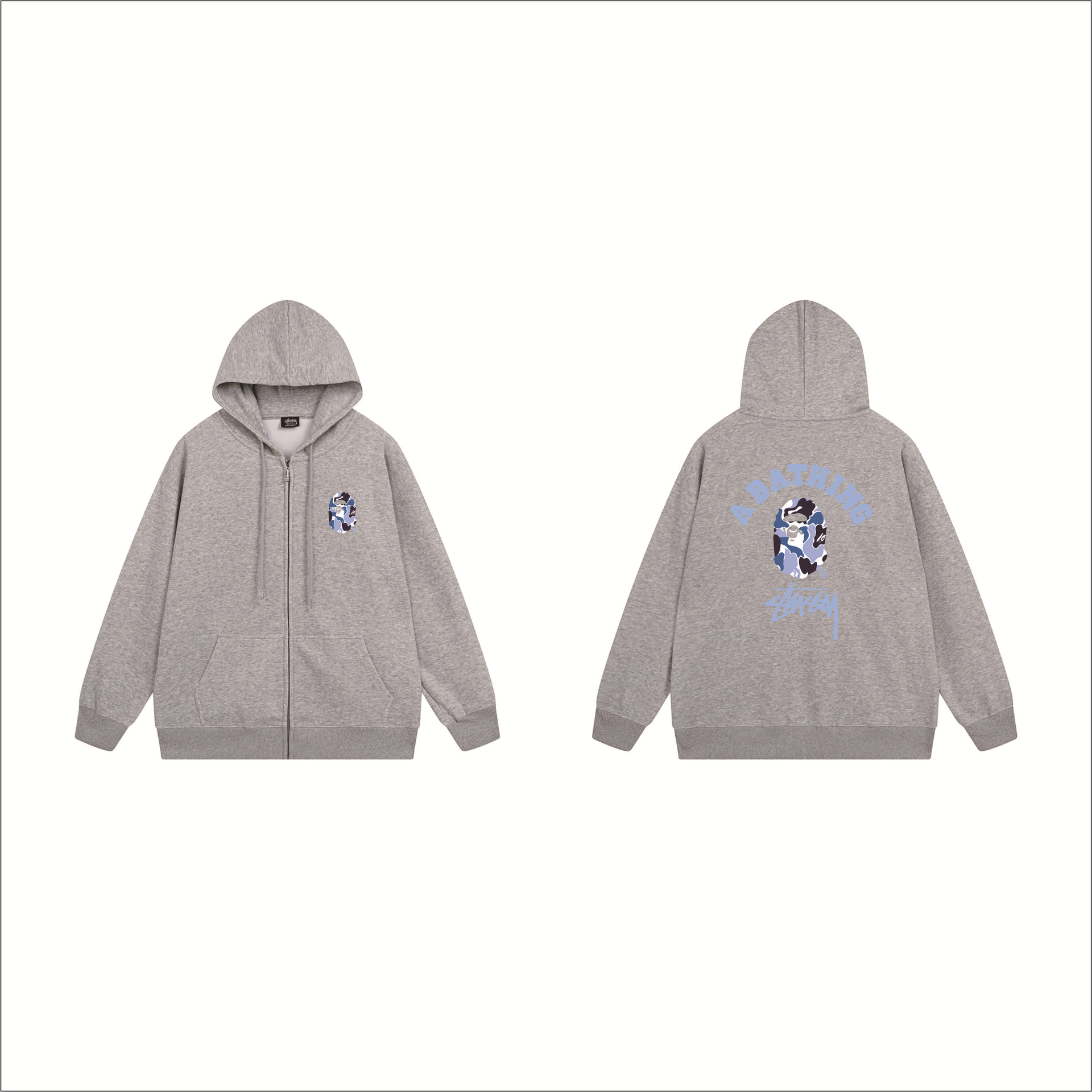 크로스보더 STU 스투자 브랜드 문자 패턴 프린트 블랙 8자 지퍼 후드 티셔츠 가을/겨울 남녀공용