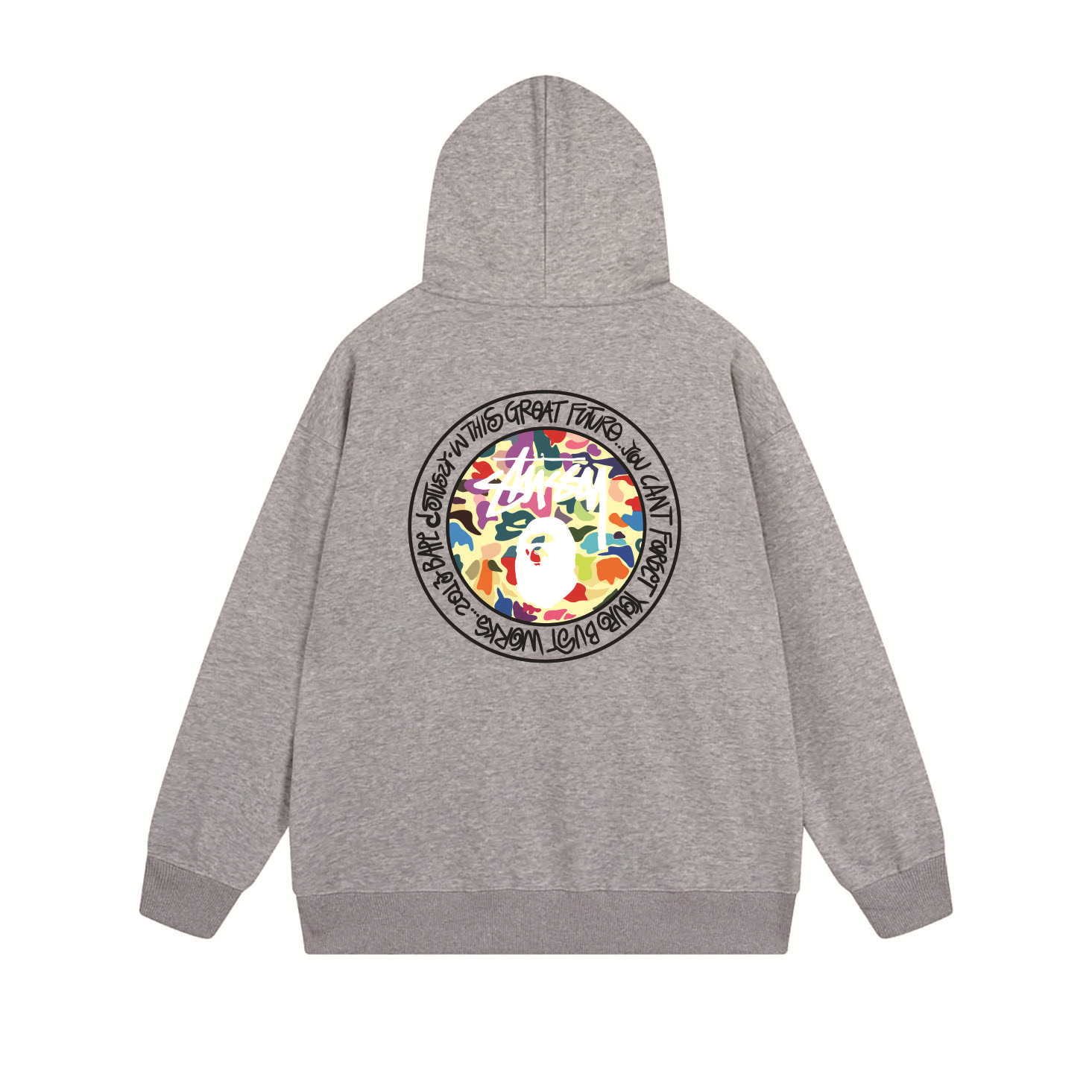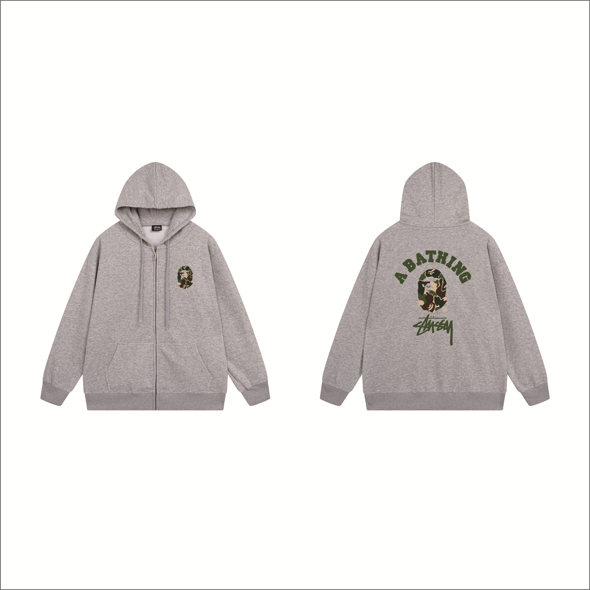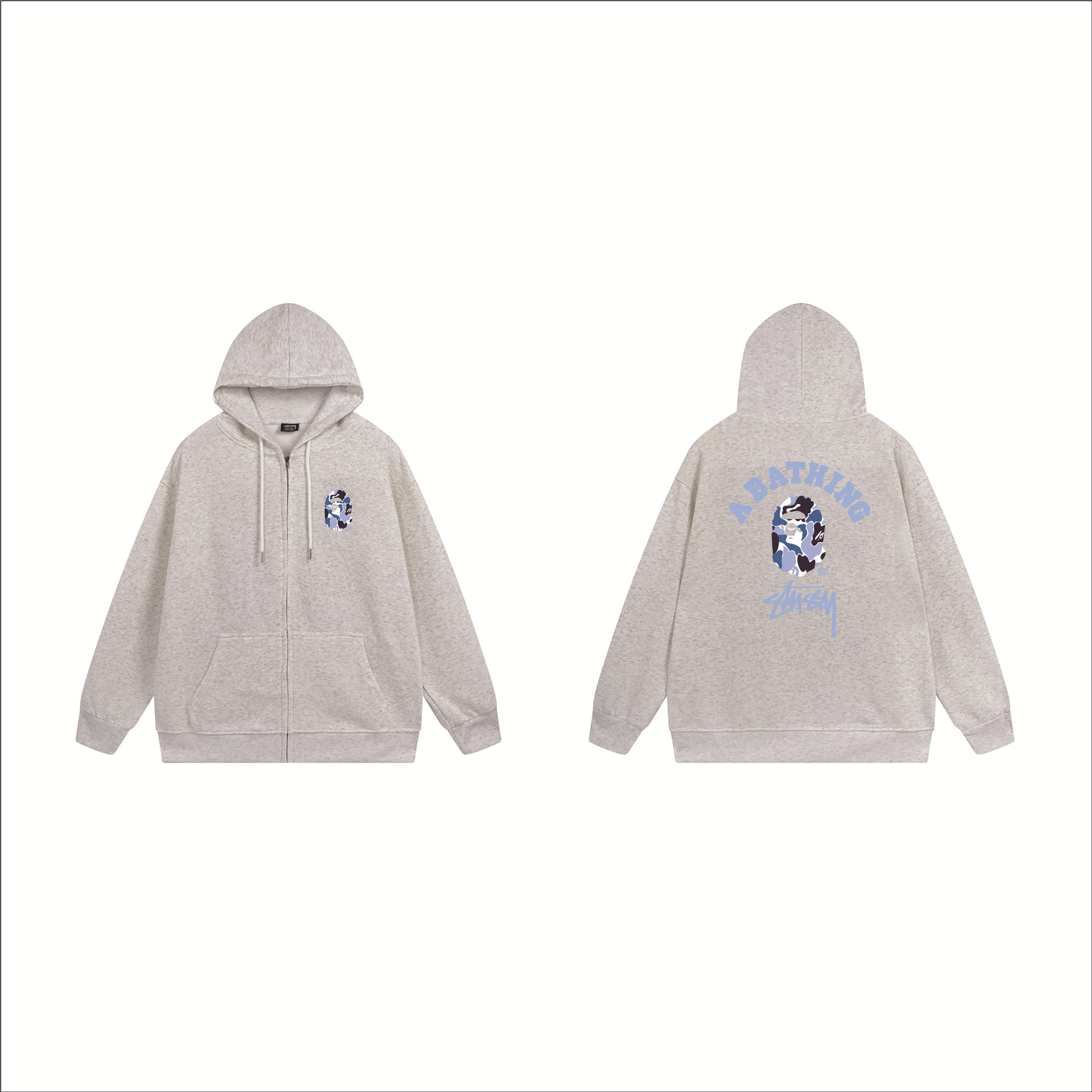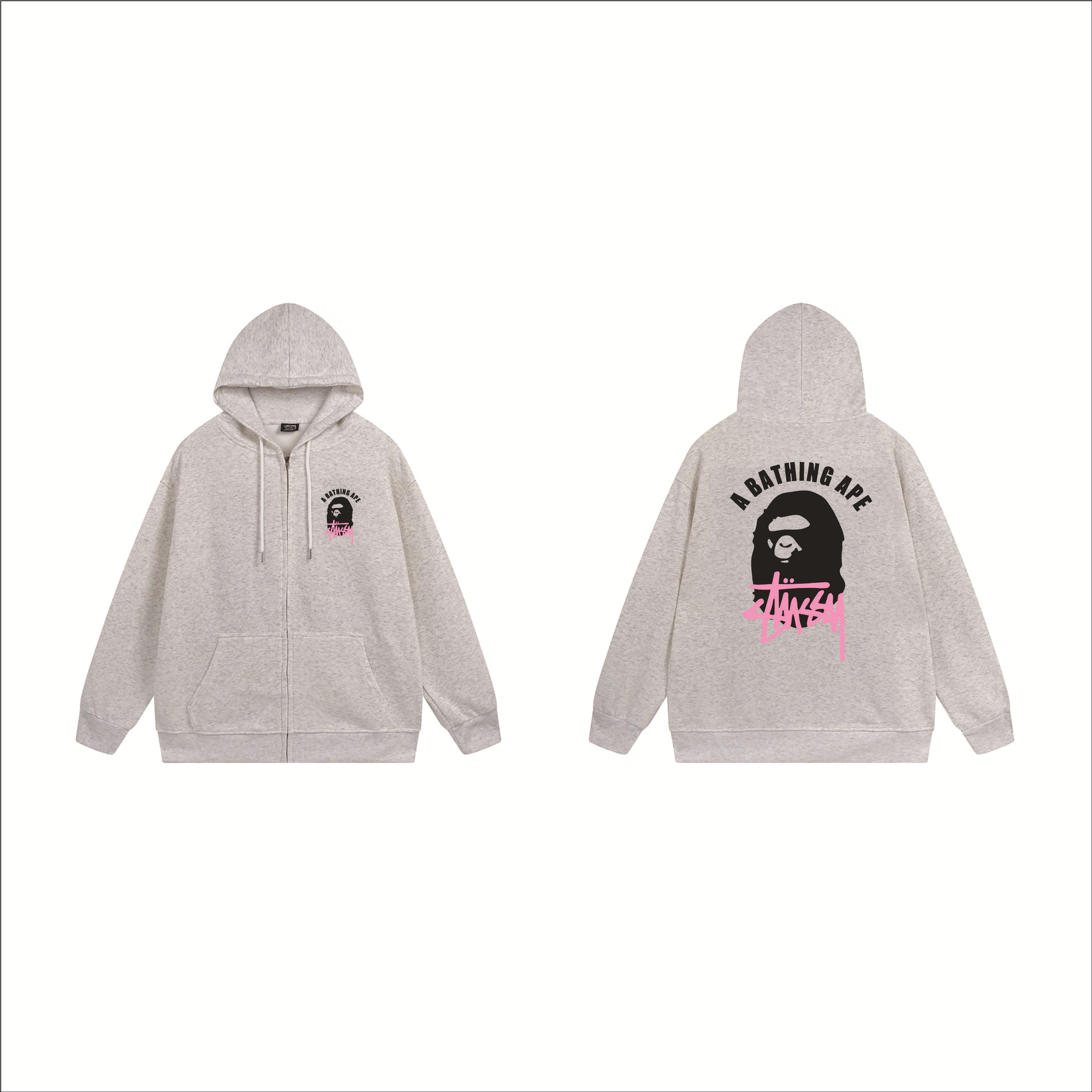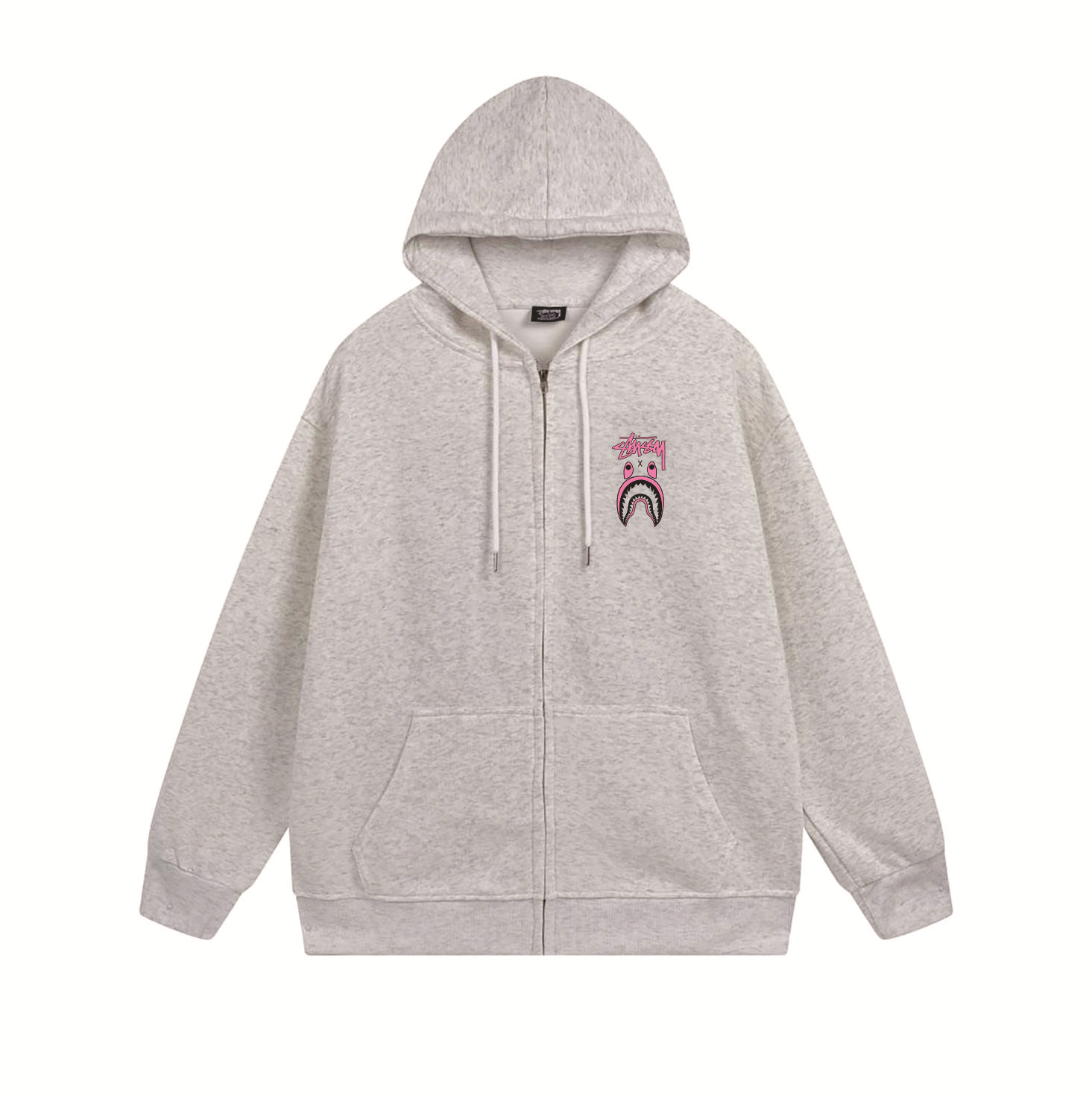 크로스보더 STU 스투자 브랜드 문자 패턴 프린트 블랙 8자 지퍼 후드 티셔츠 가을/겨울 남녀공용