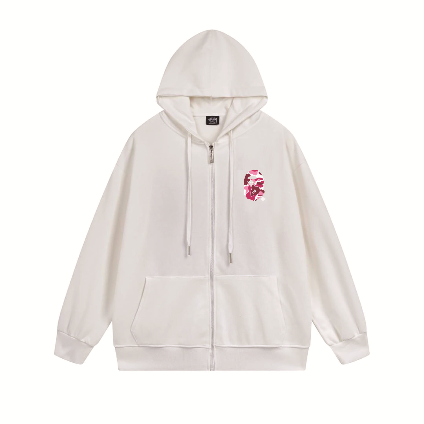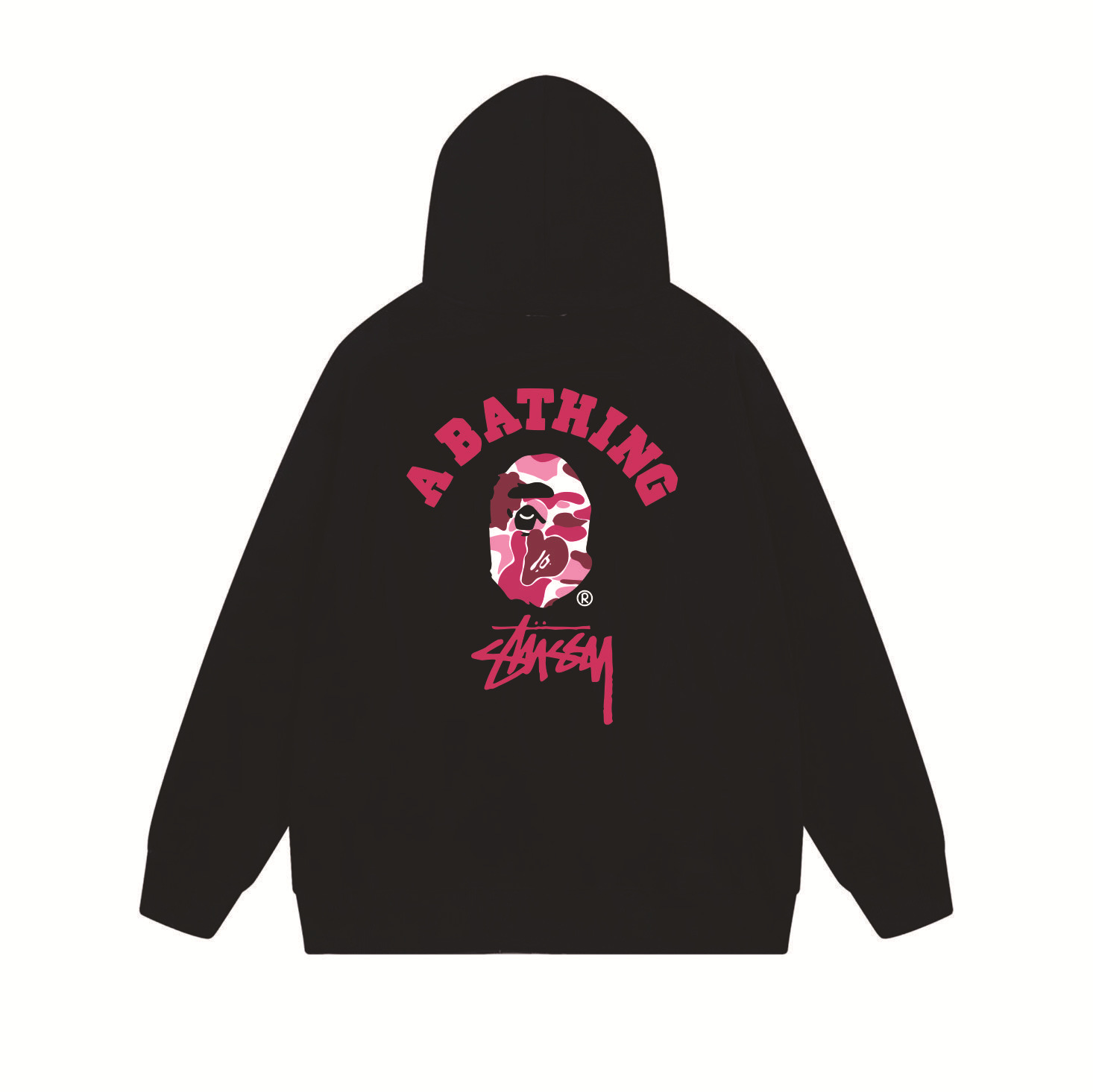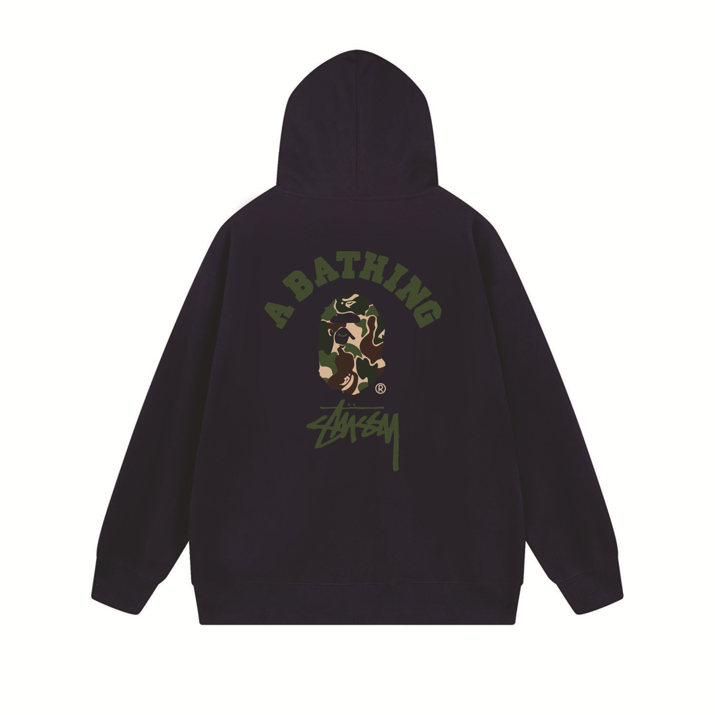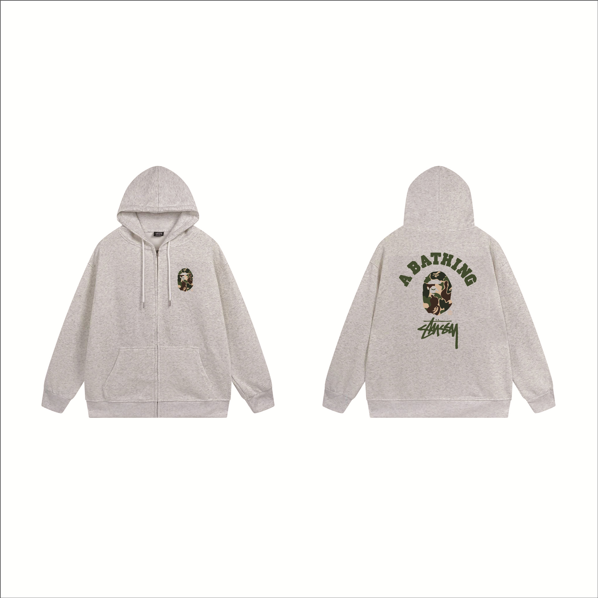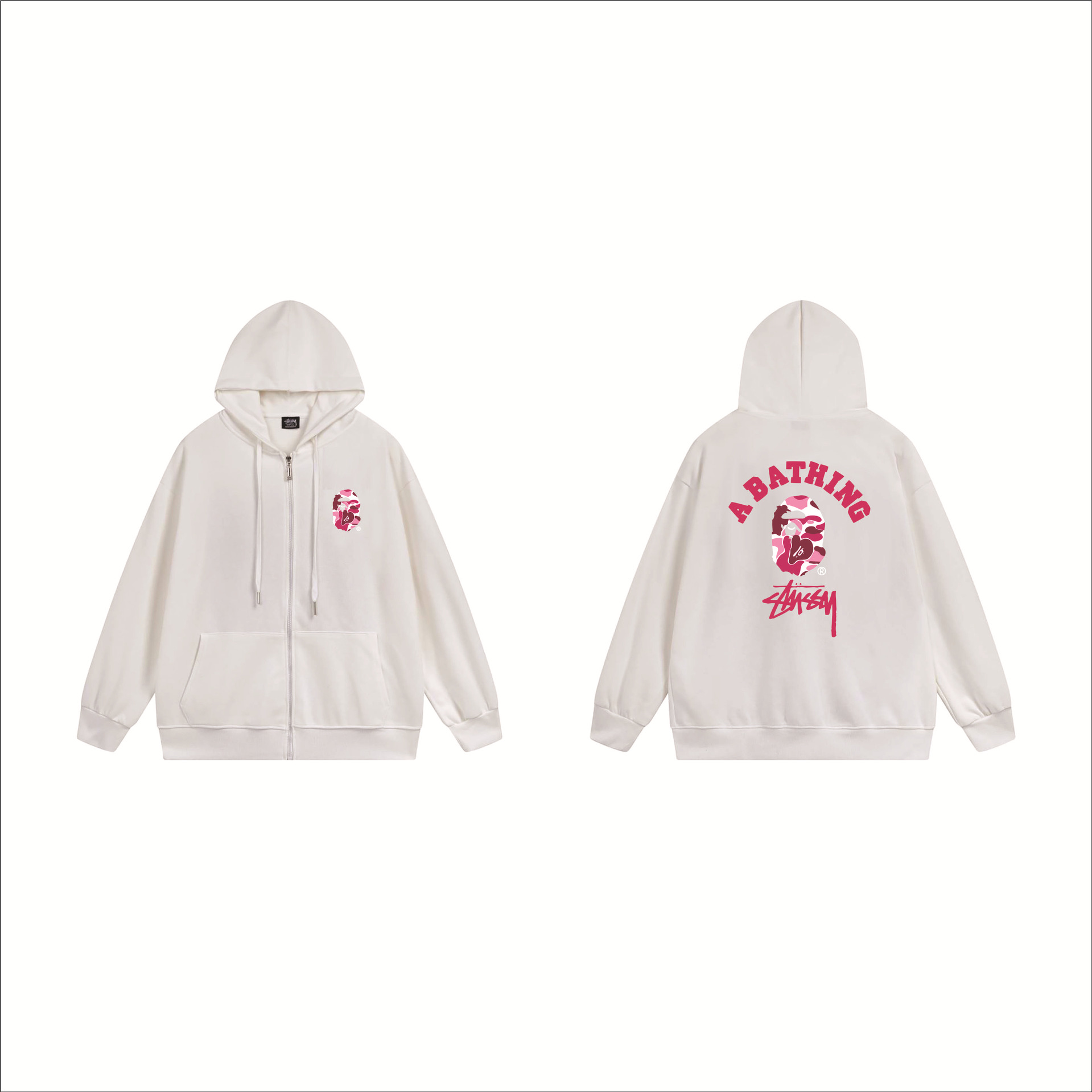 크로스보더 STU 스투자 브랜드 문자 패턴 프린트 블랙 8자 지퍼 후드 티셔츠 가을/겨울 남녀공용