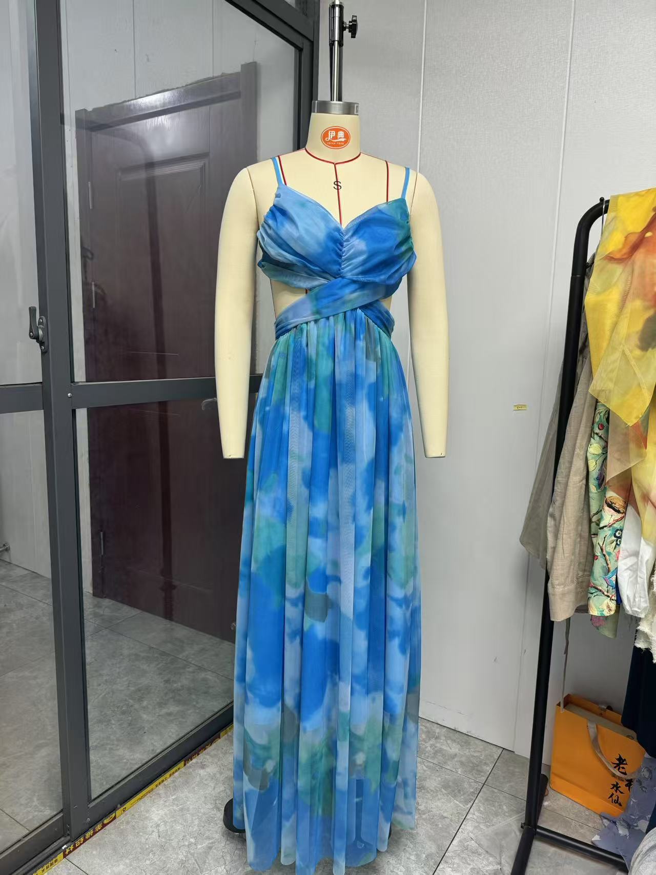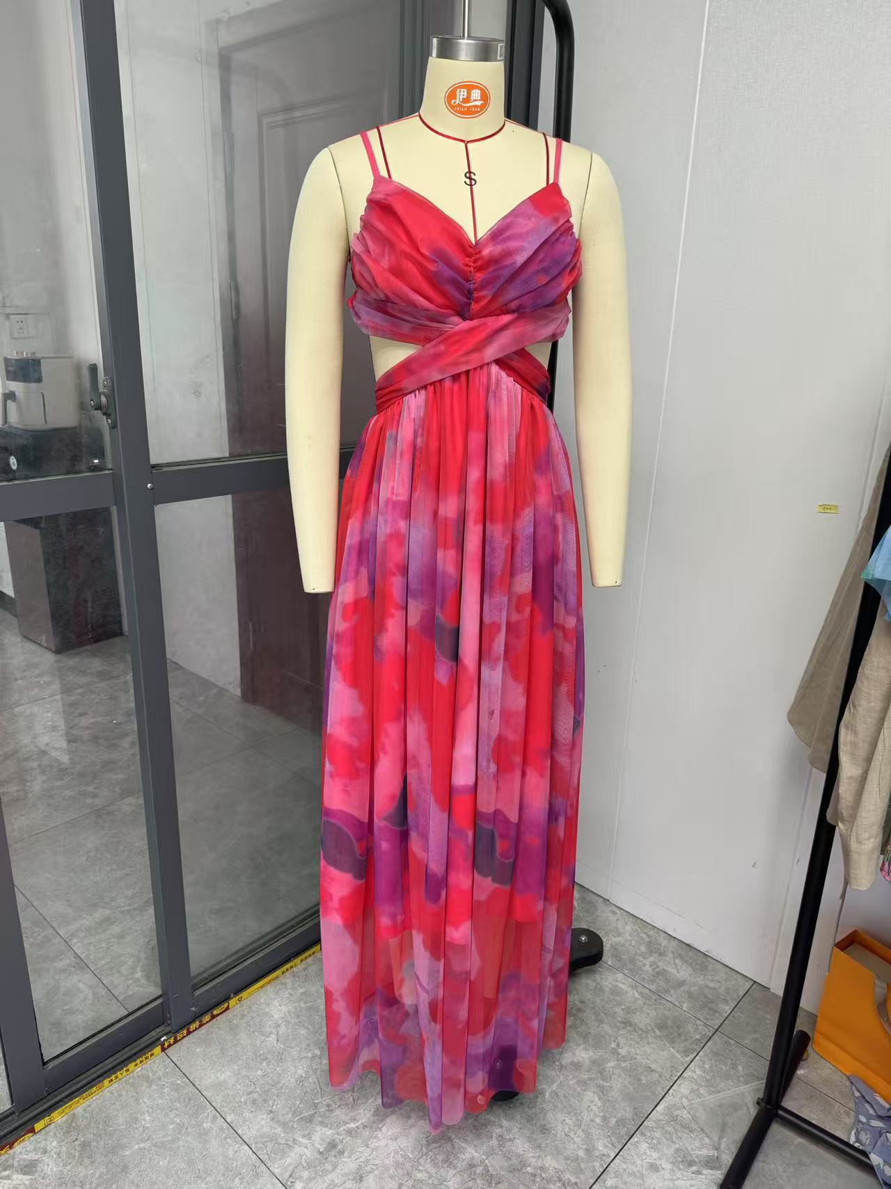 2025 국경 유럽 및 미국 봄과 여름 새로운 메쉬 인쇄 슬링 원피스 INS 휴가 레저 파티 원피스스토어 가기
