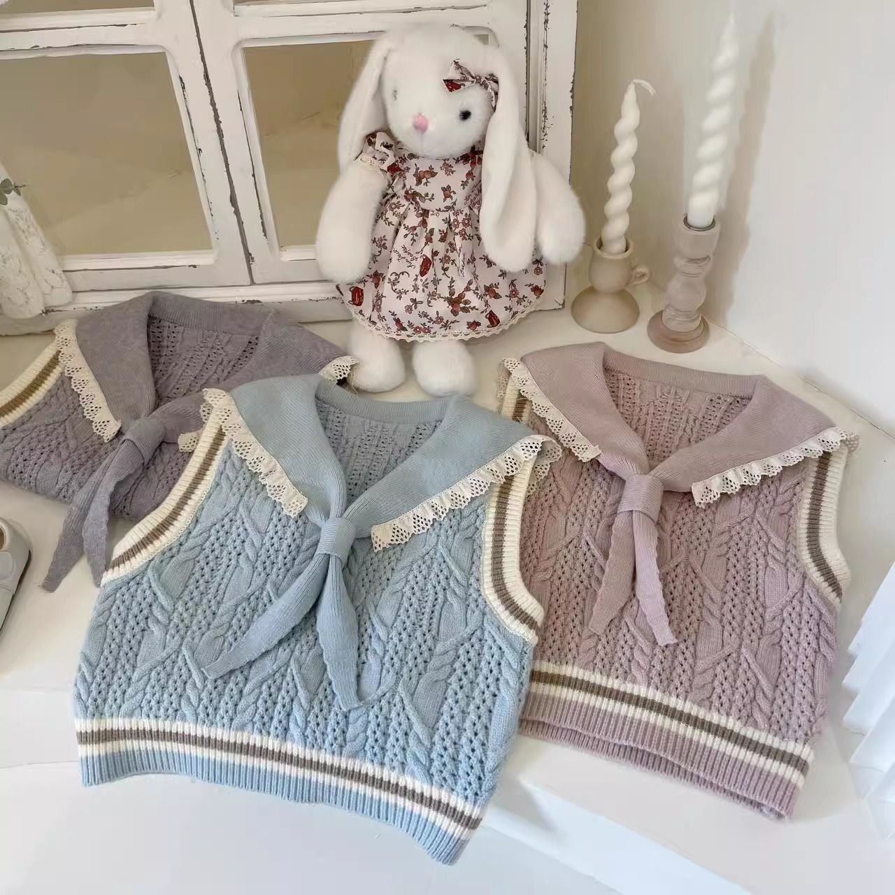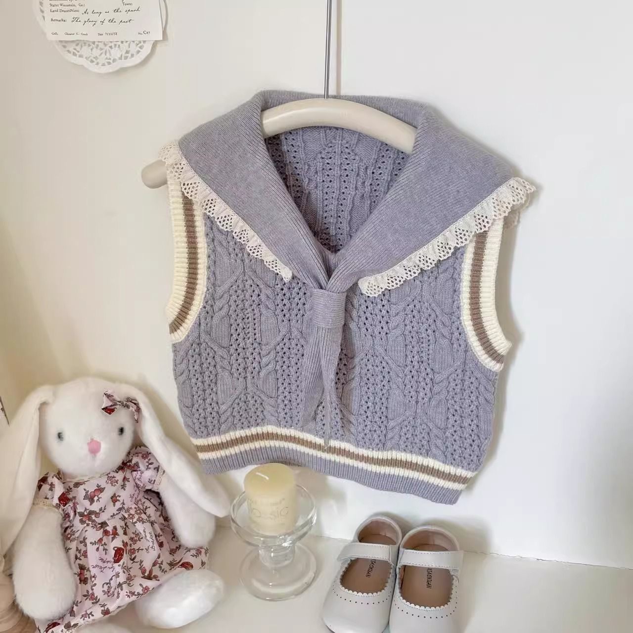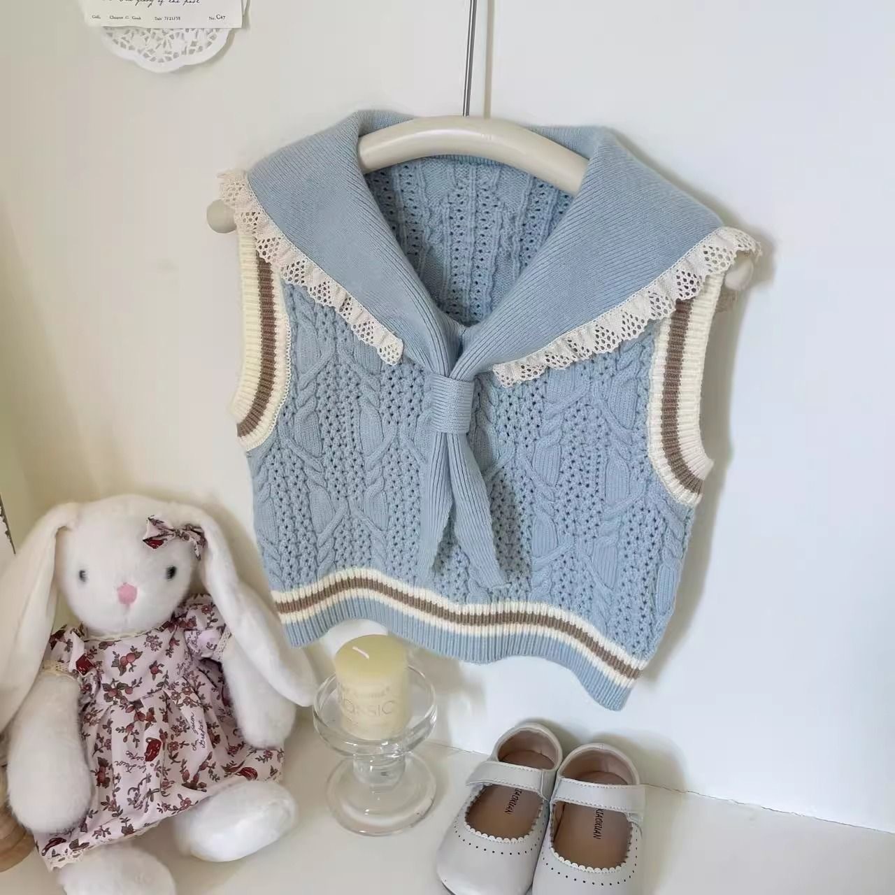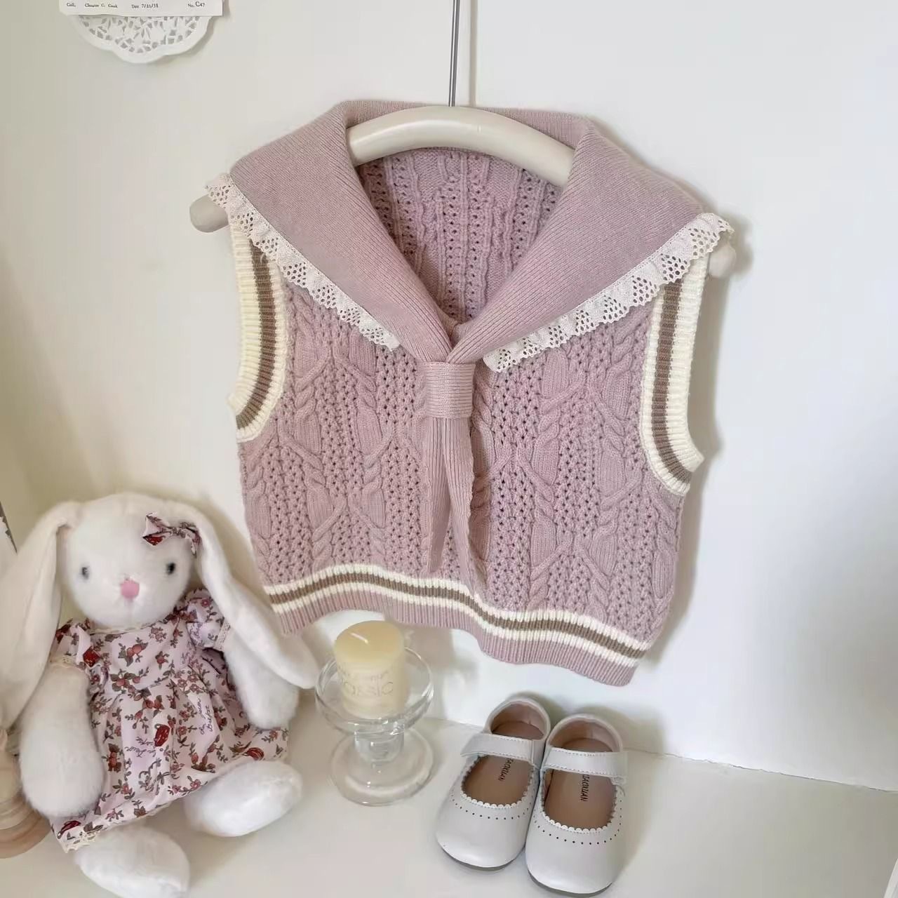 여자 유행 스웨터 조끼 2025 봄과 여름 새로운 아동 의류 아기 소녀 귀여운 니트 조끼 대학 스타일 양복 조끼스토어 가기