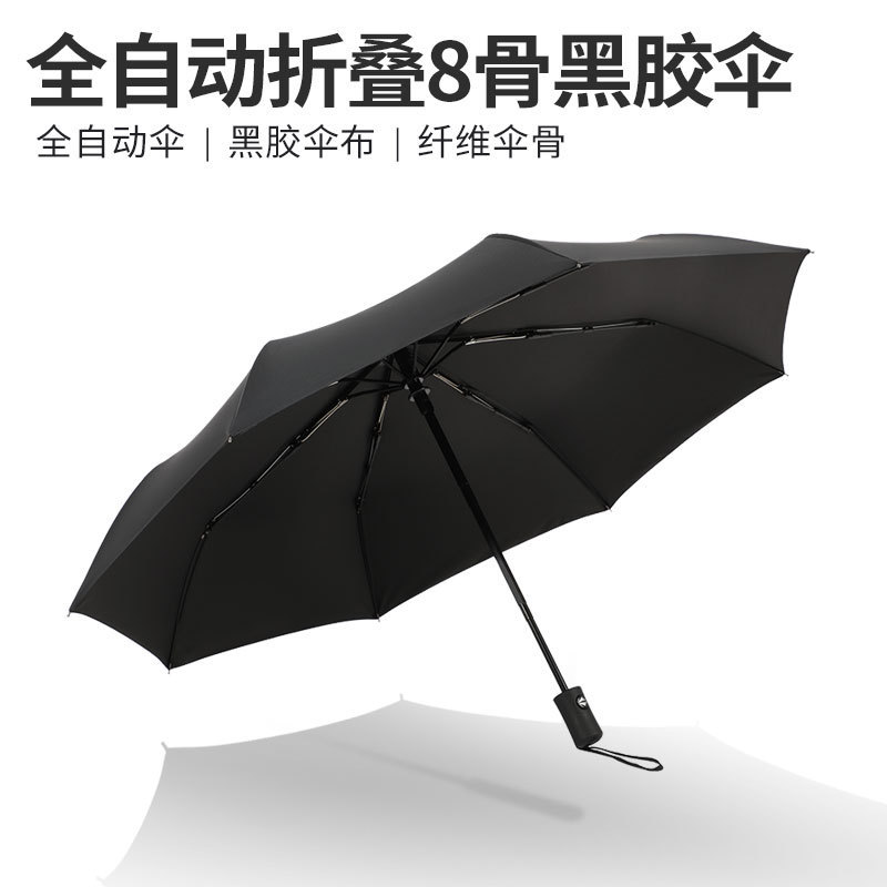 • 업그레이드된 자동 8본 검정색 플라스틱 우산 검정색