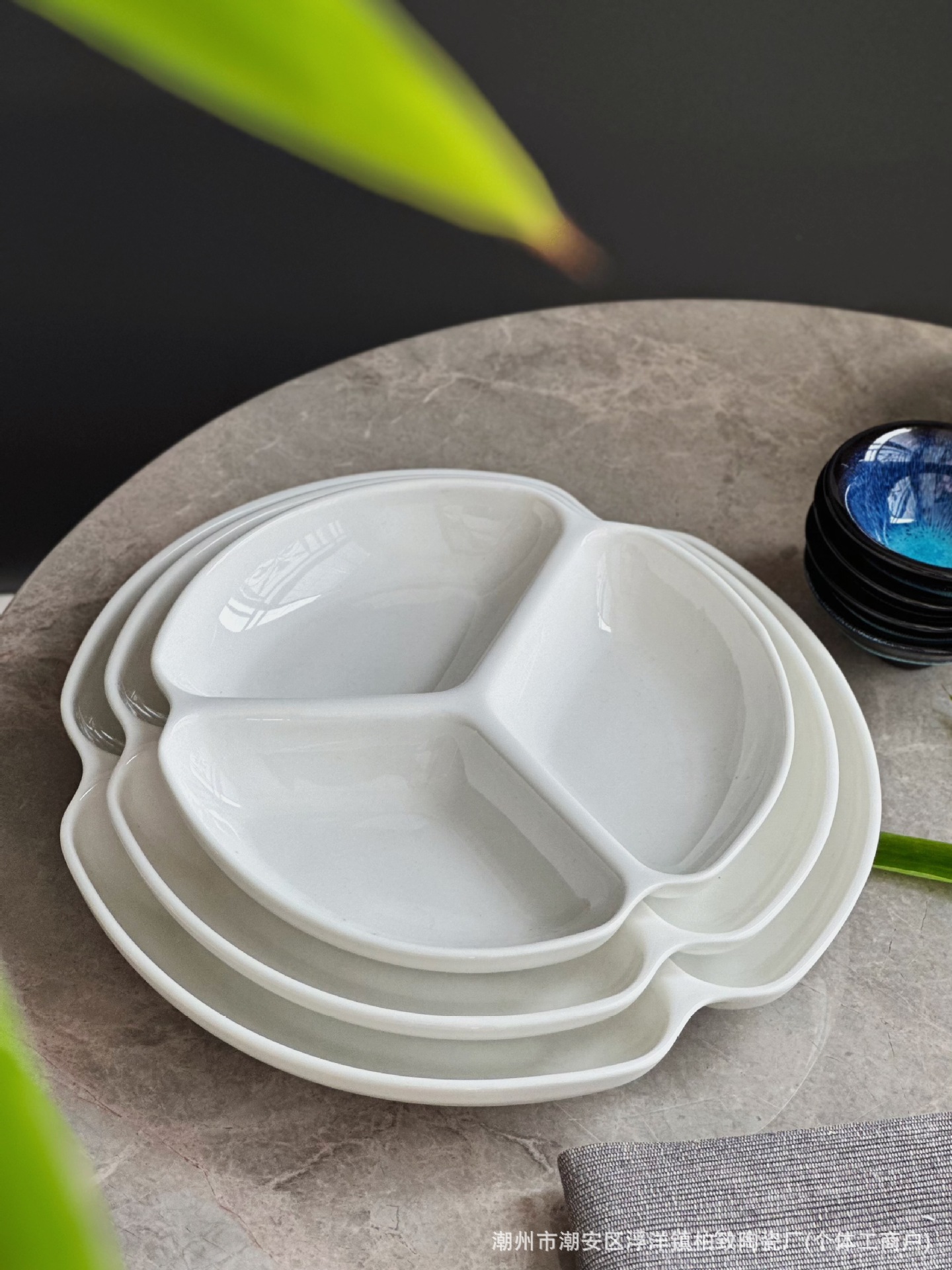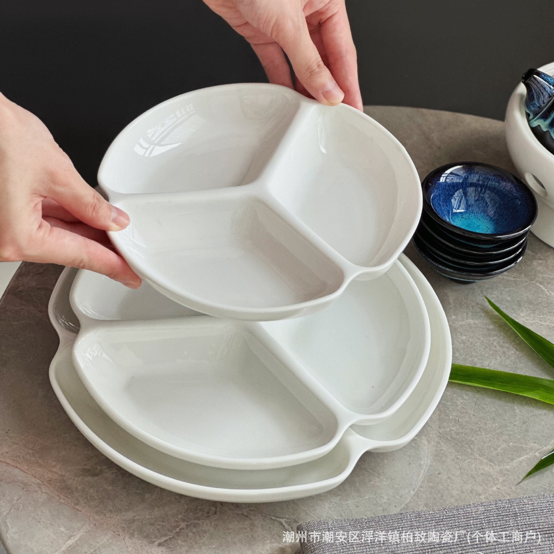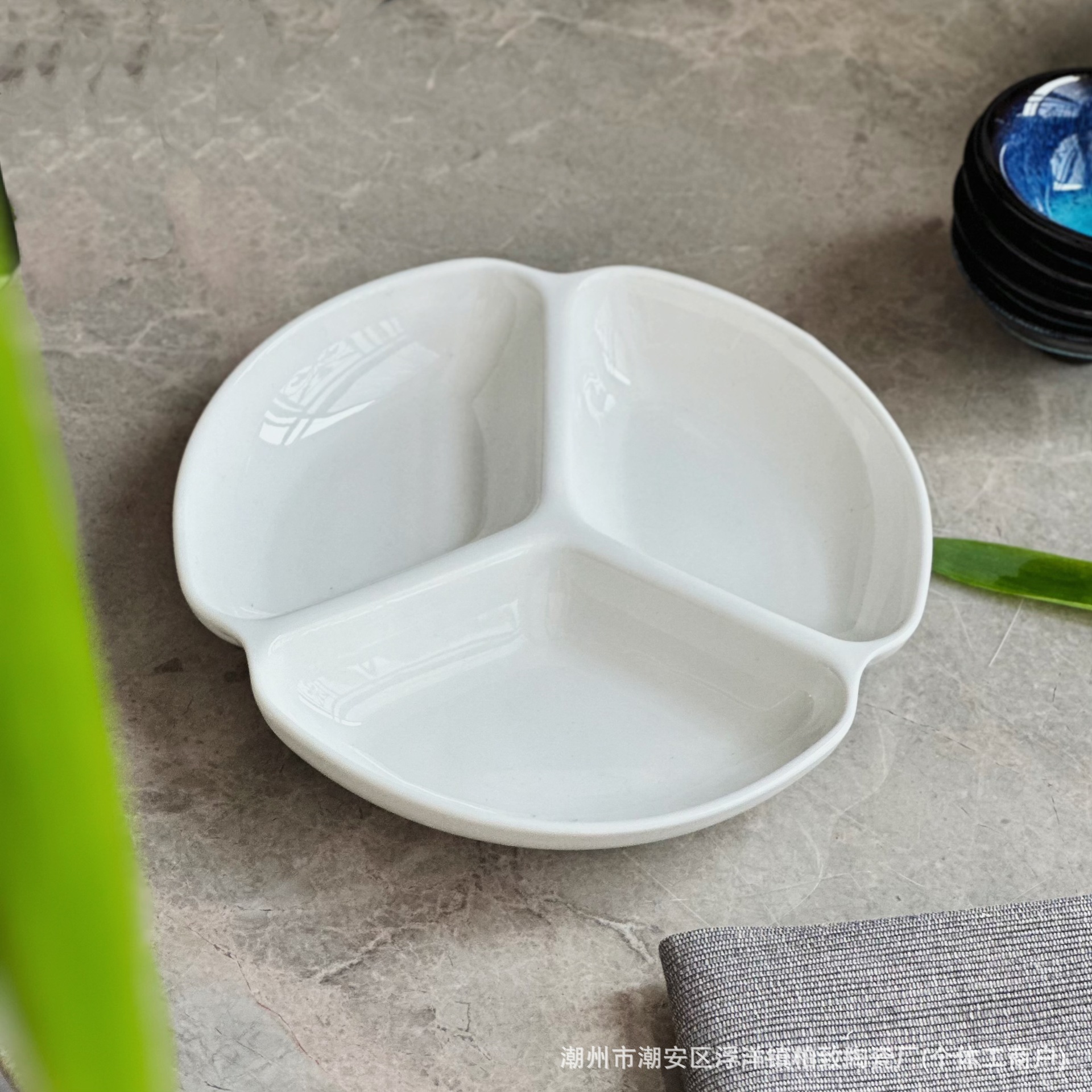 심플한 3칸 접시, 디저트 접시, 스낵 접시, 순백색 세라믹 호텔 특별 가정용 차가운 접시, 스낵 접시스토어 가기