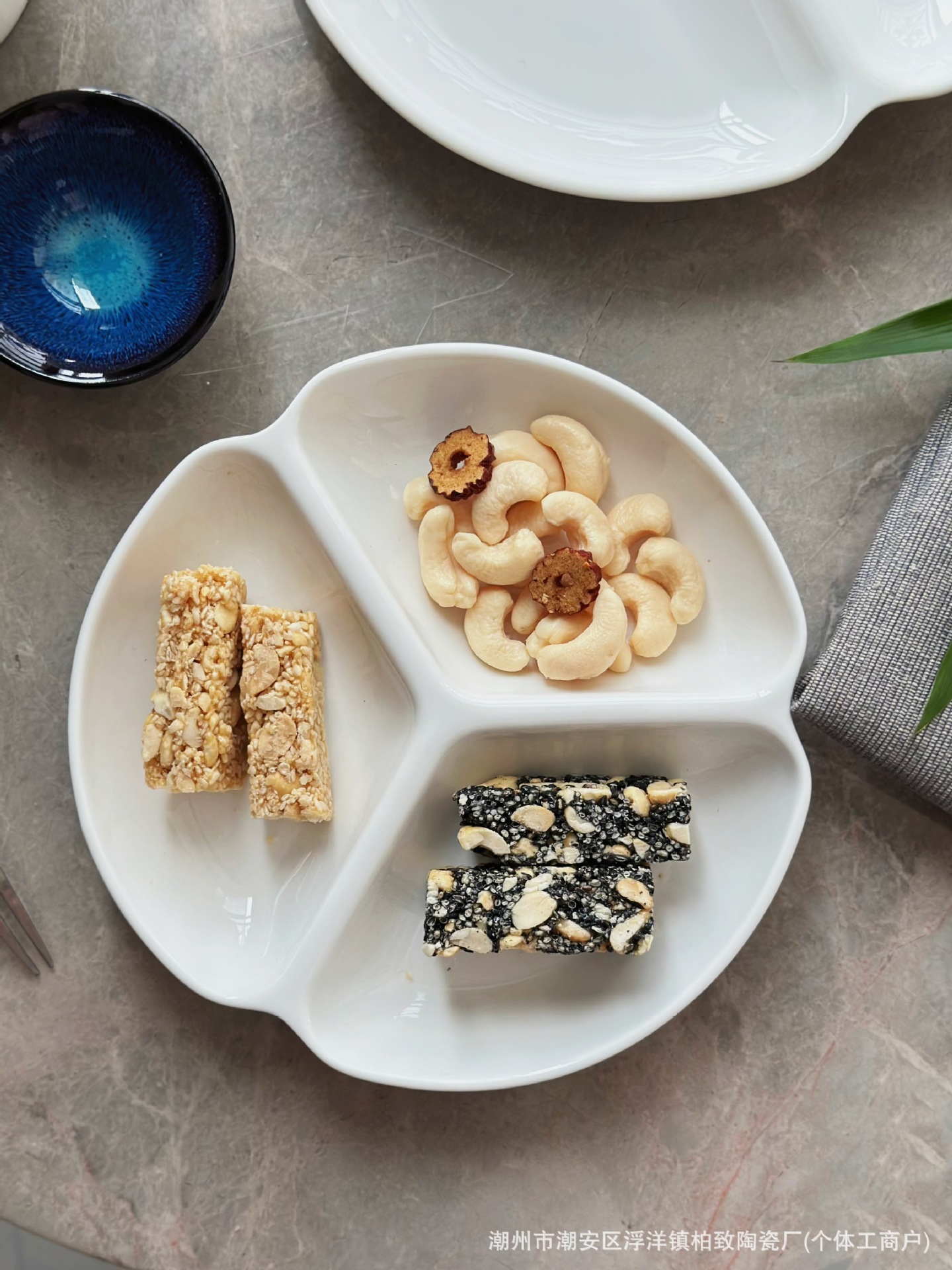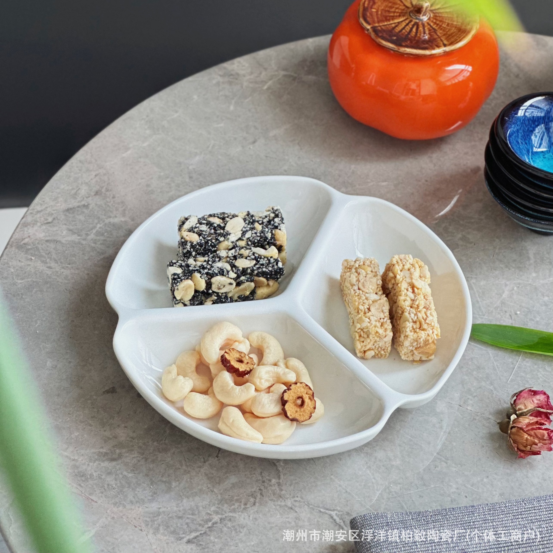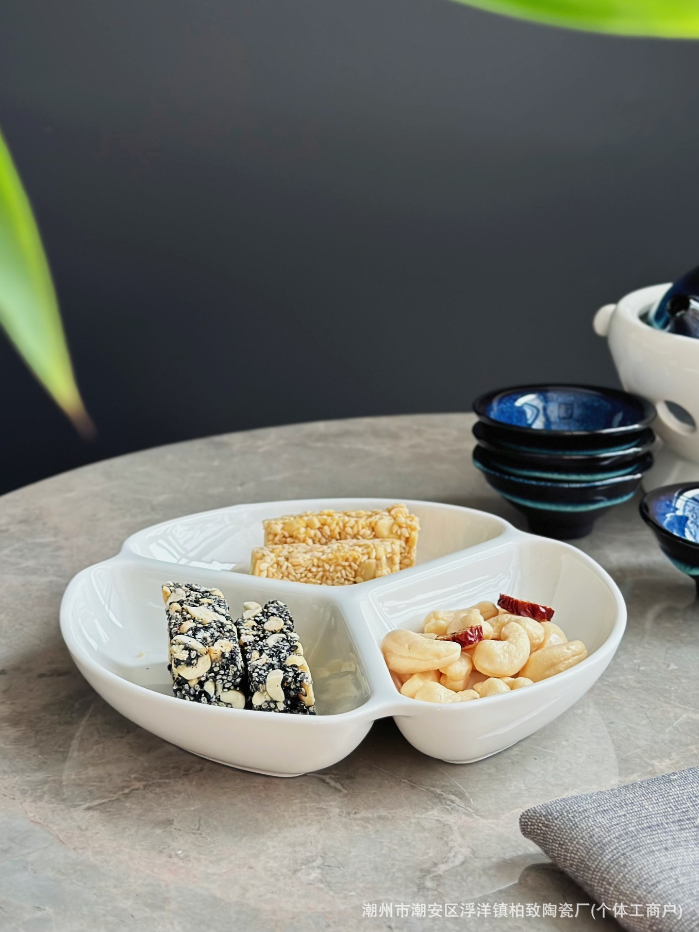 심플한 3칸 접시, 디저트 접시, 스낵 접시, 순백색 세라믹 호텔 특별 가정용 차가운 접시, 스낵 접시스토어 가기