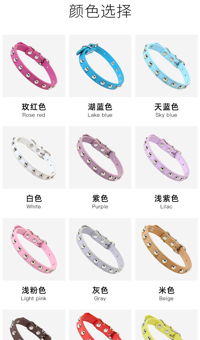 엄선된 애완동물 목걸이, 개 목걸이, 리벳, 개 목줄, 가죽 소형견 애완동물 목걸이 선택