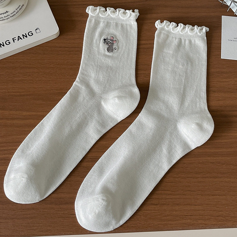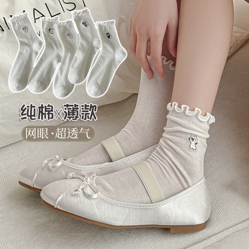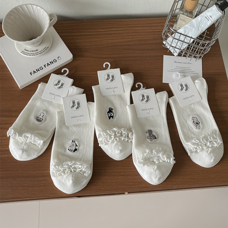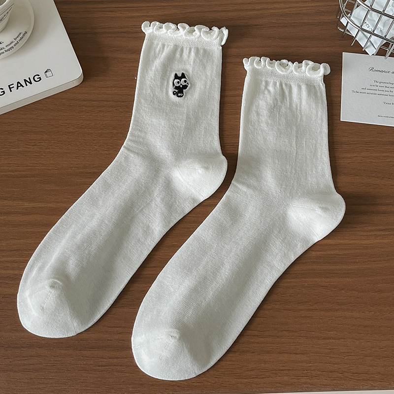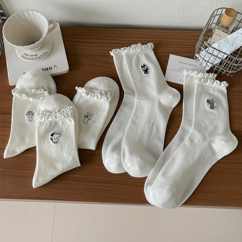 여성용 흰색 레이스 양말, 트렌디한 종아리 중간 양말, 봄, 가을 순면 양말, 여름용 메리 제인 가죽 신발스토어 가기