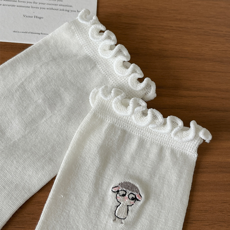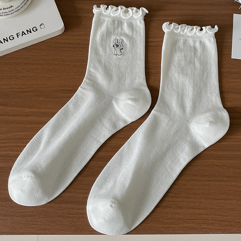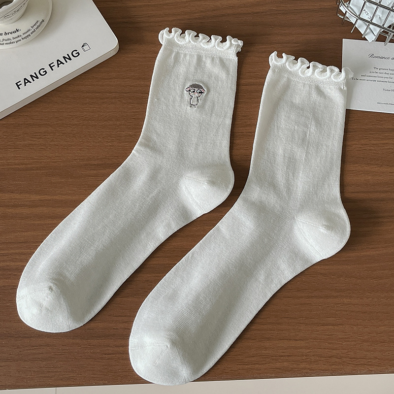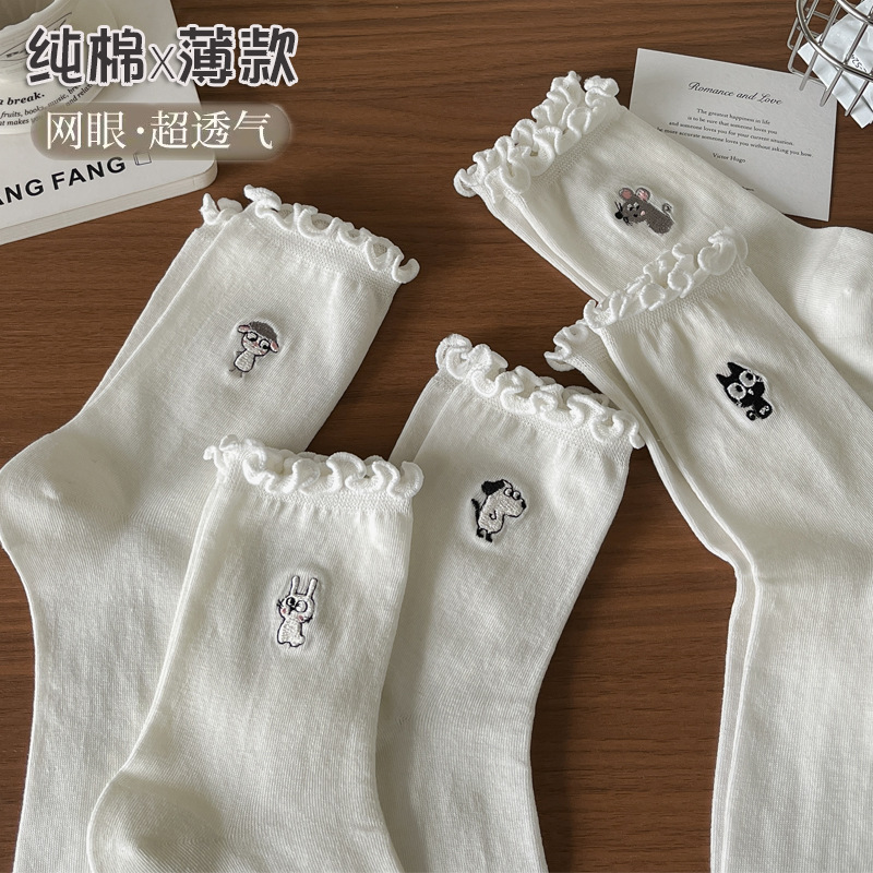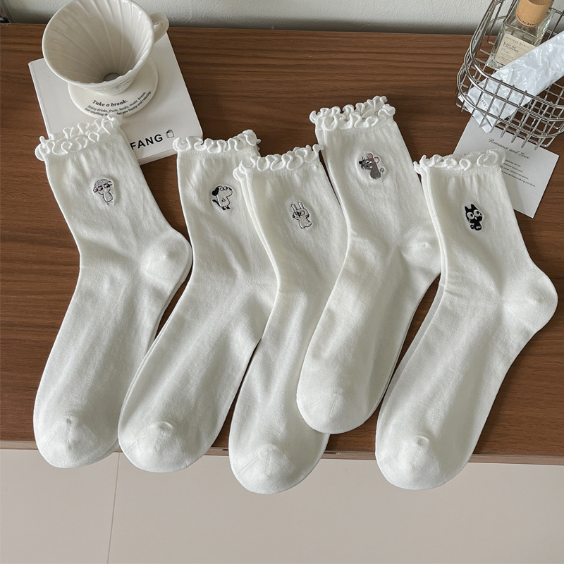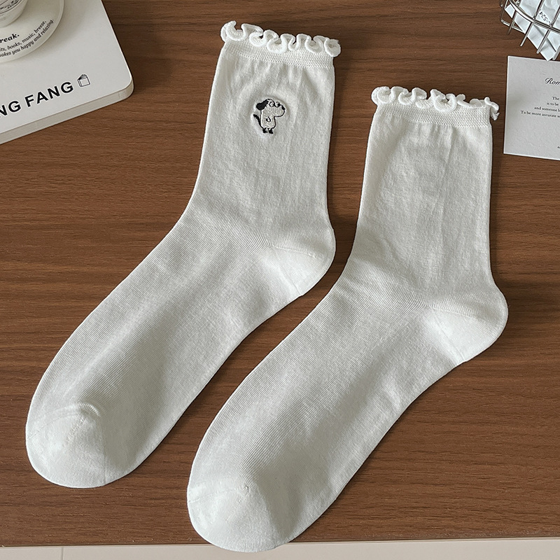 여성용 흰색 레이스 양말, 트렌디한 종아리 중간 양말, 봄, 가을 순면 양말, 여름용 메리 제인 가죽 신발스토어 가기