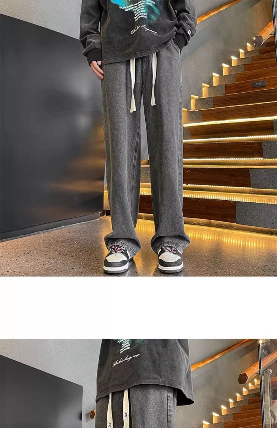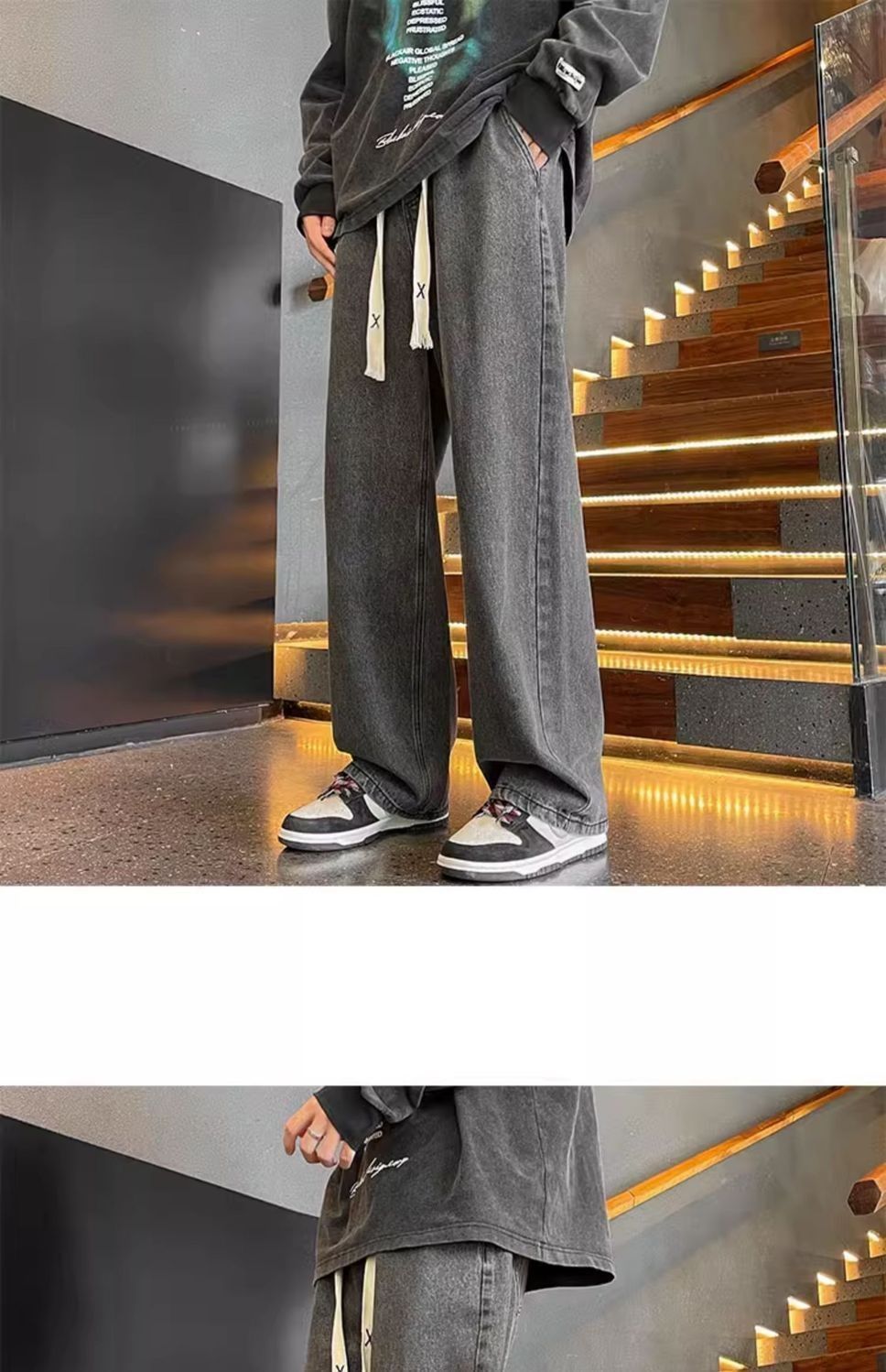 아메리칸 레트로 스트레이트 청바지 남성 2025 봄 신작 루즈 트렌디 브랜드 와이드 레그 바지 남성 캐주얼 바지스토어 가기
