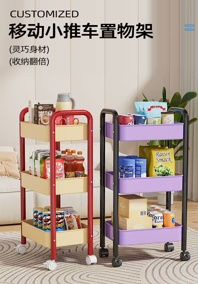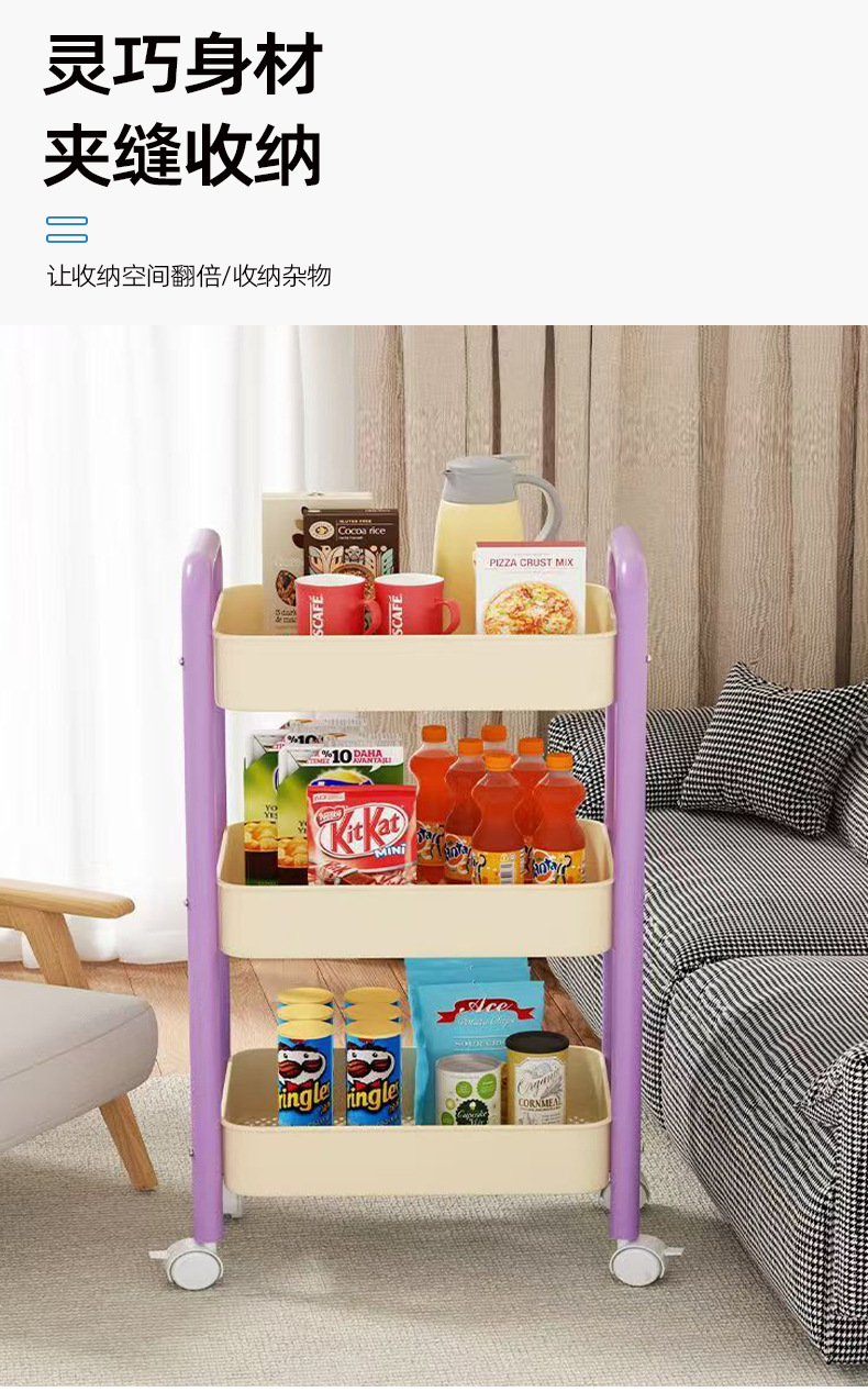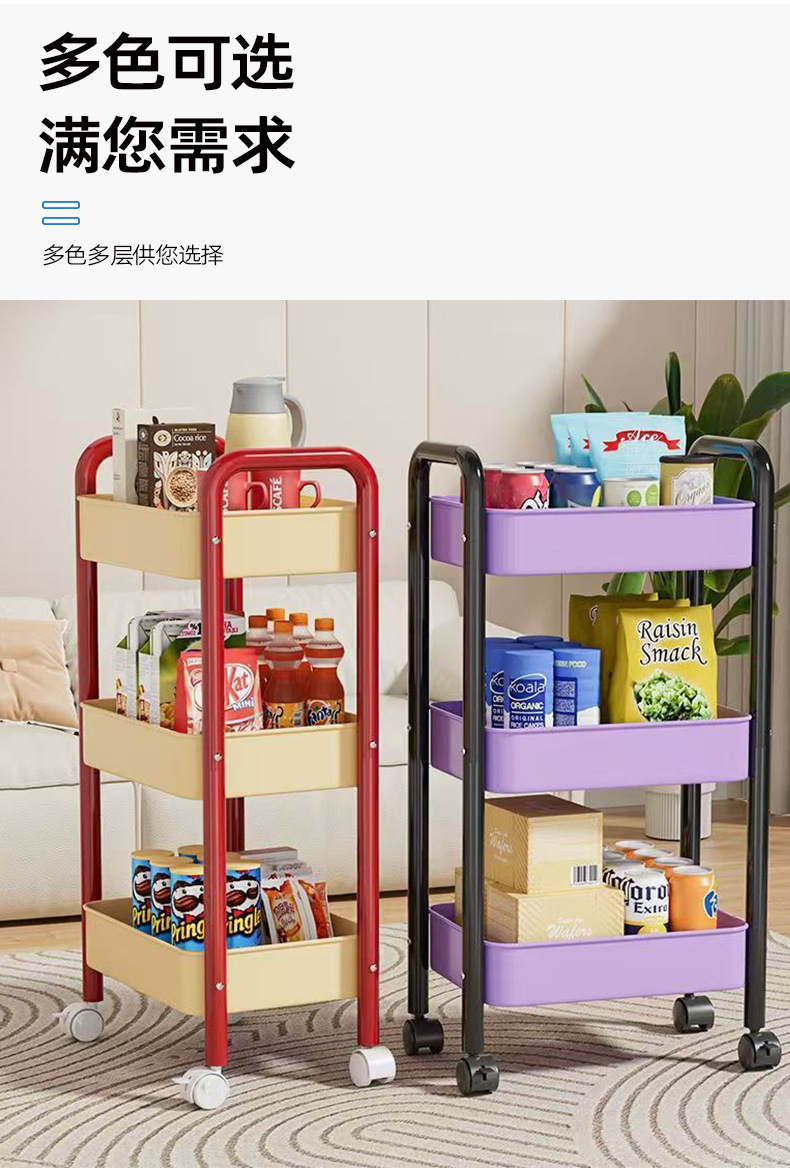 트롤리 스토리지 랙 거실 스낵 다층 스토리지 랙 욕실 욕실 다채로운 바퀴 달린 이동식 스토리지 랙