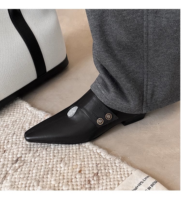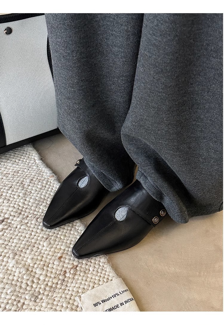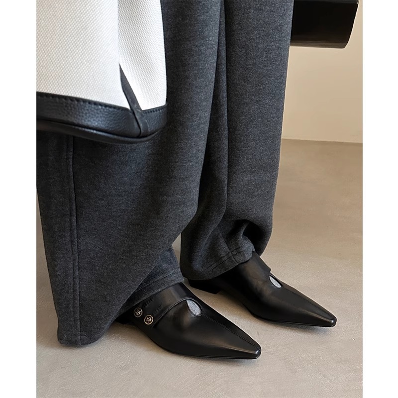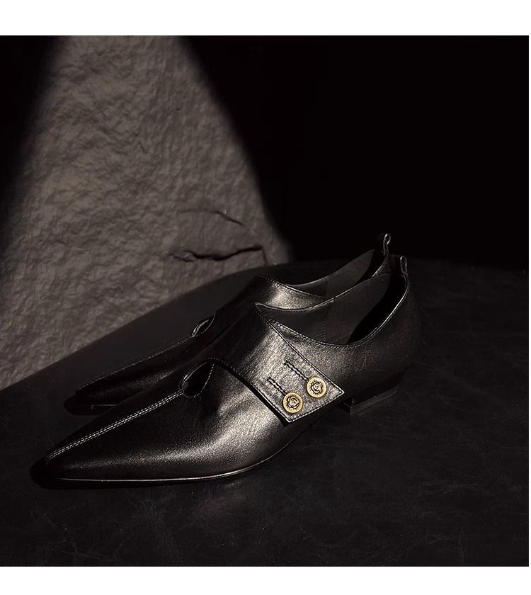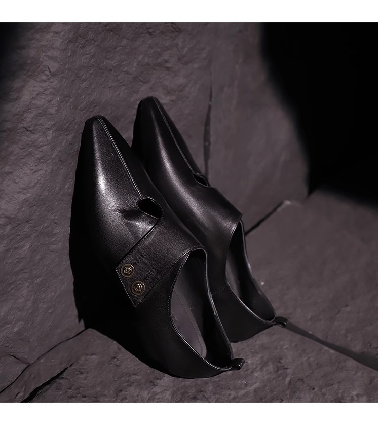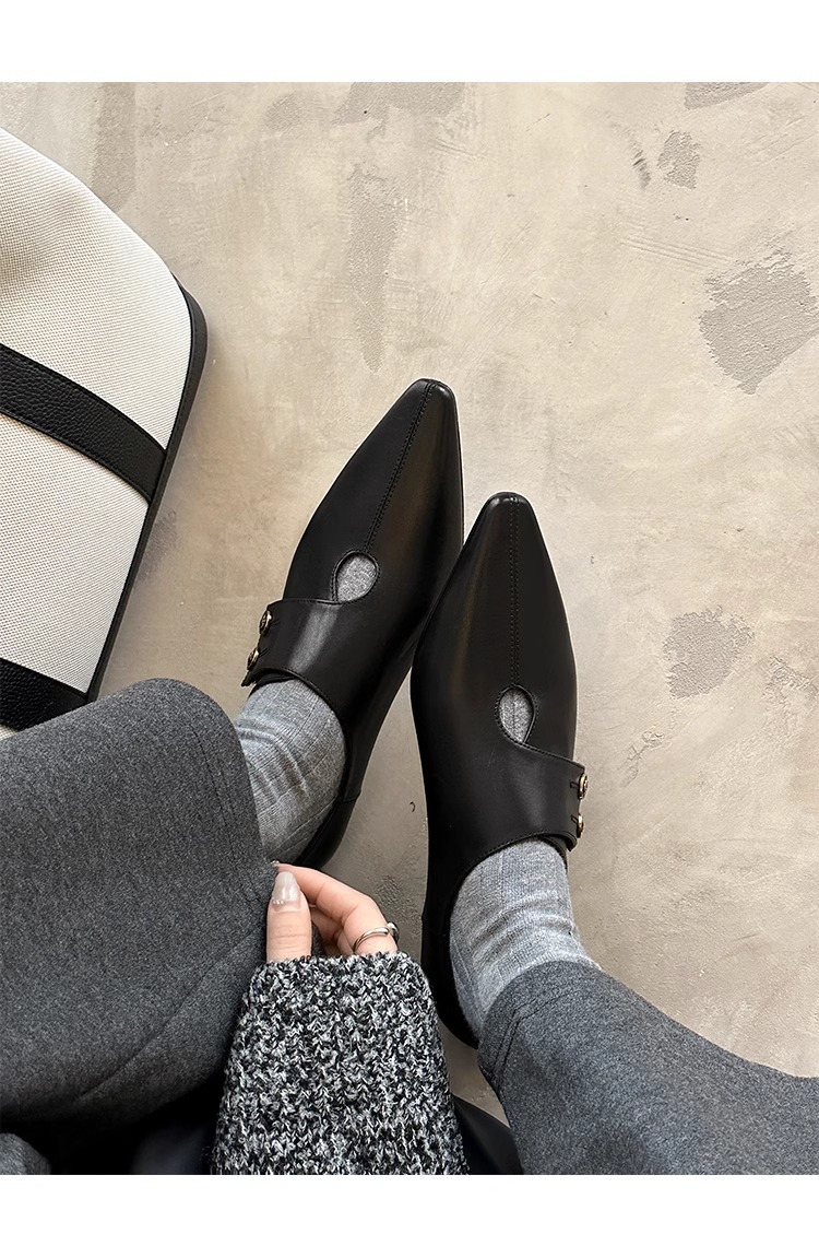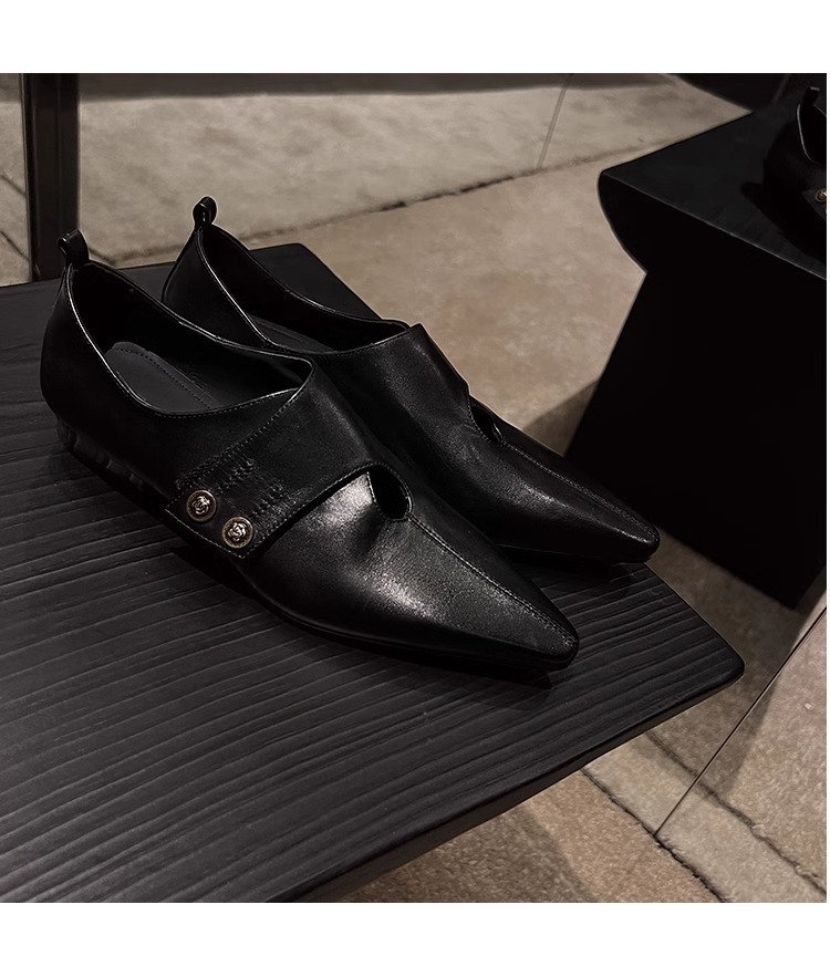 정품 가죽 틈새 디자인 하이 엔드 프랑스 스타일 블랙 뾰족한 발가락 작은 가죽 신발 빈 빈티지 로퍼 플랫 싱글 레이어 신발스토어 가기