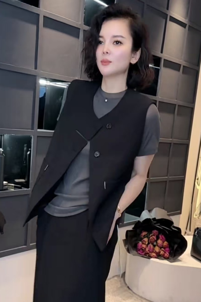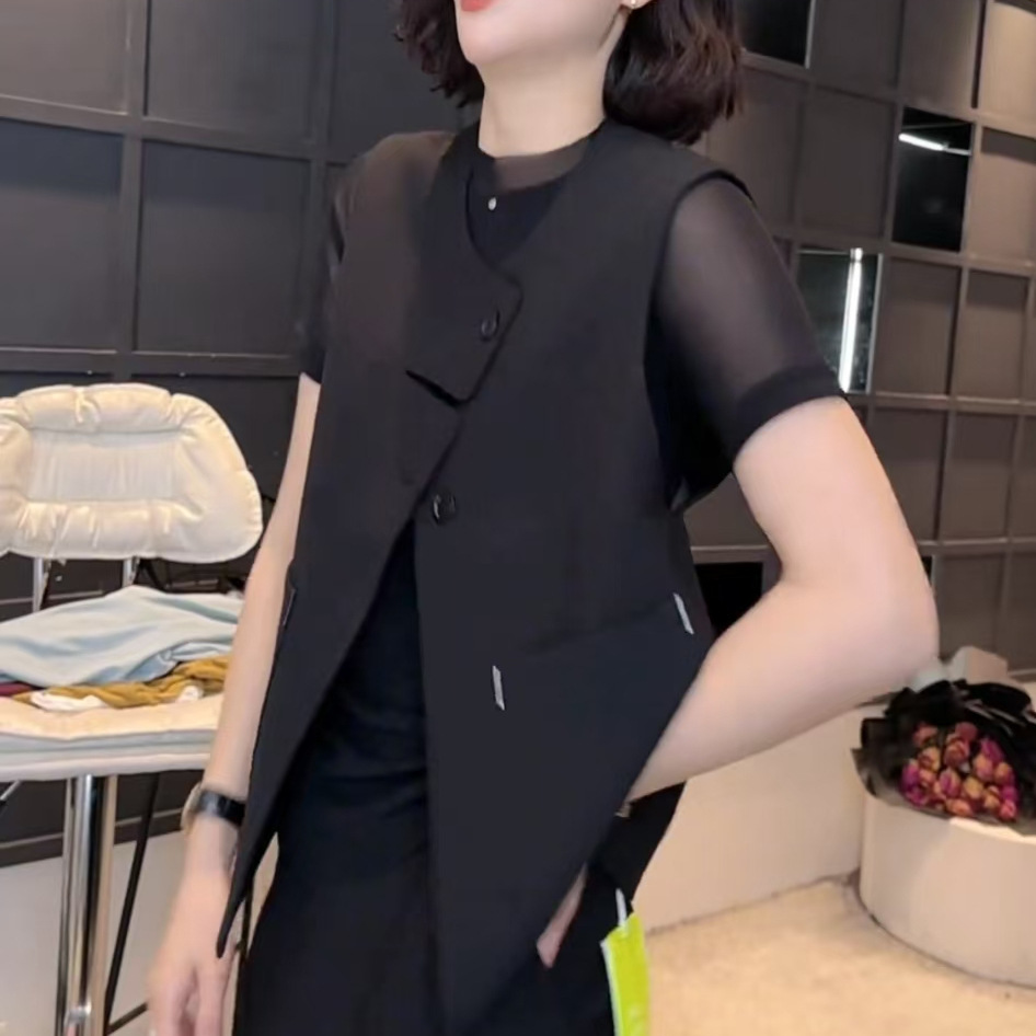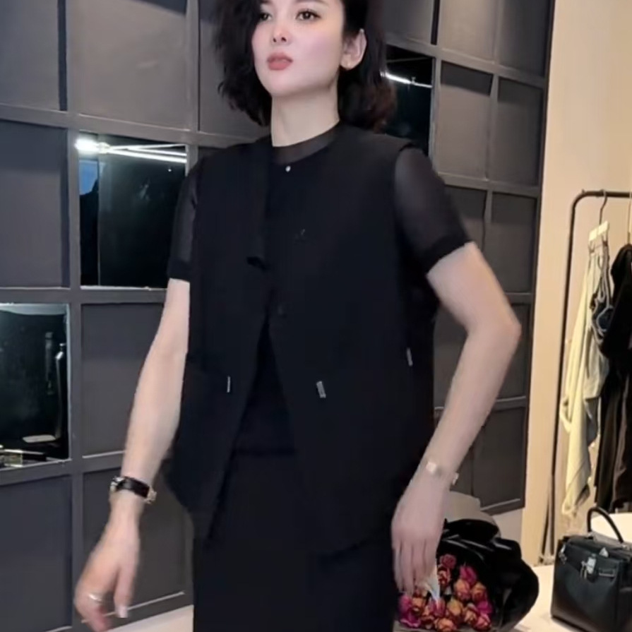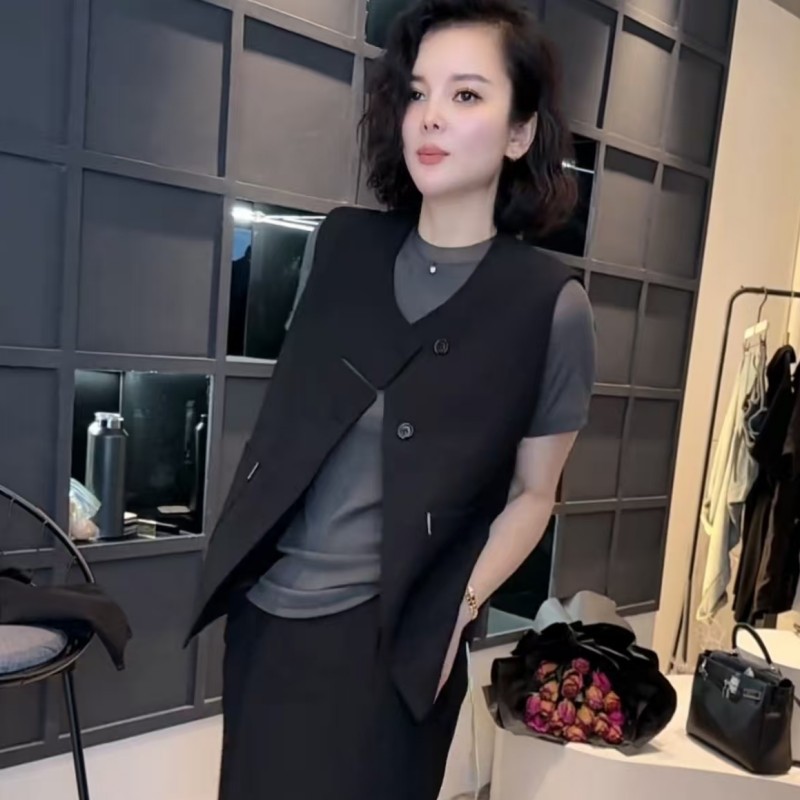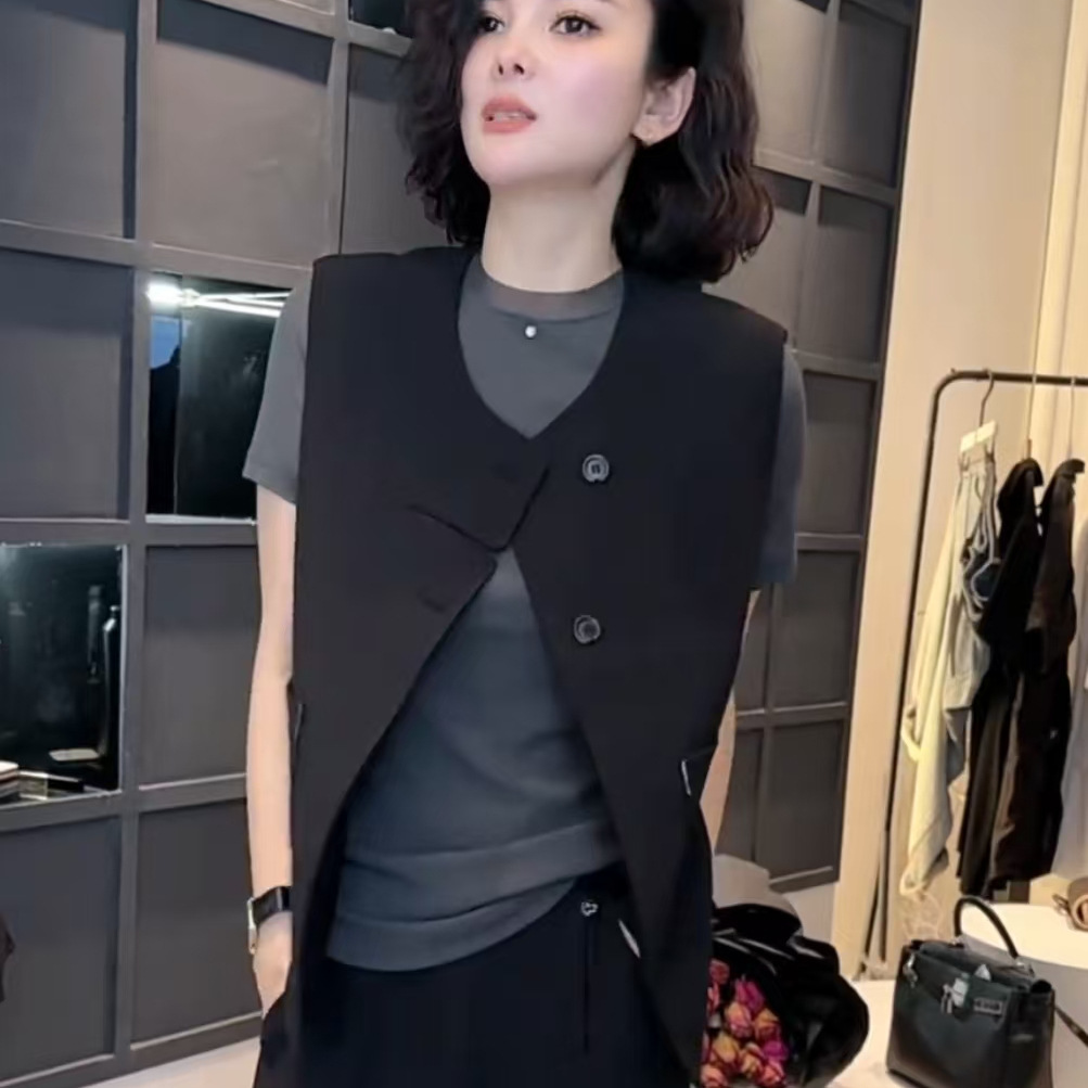 짧은 세트 조끼 여성의 2025 봄 새로운 디자인 센스 틈새 의상 쌓인 인터넷 축하 웨이스트 코트 조끼스토어 가기