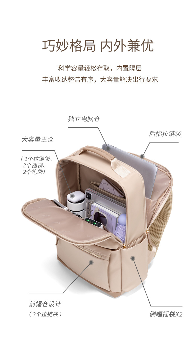 폴로 배낭 여성용 대용량 통근 배낭 14/ 15.6inch 컴퓨터 가방 경량 학생 학교 가방