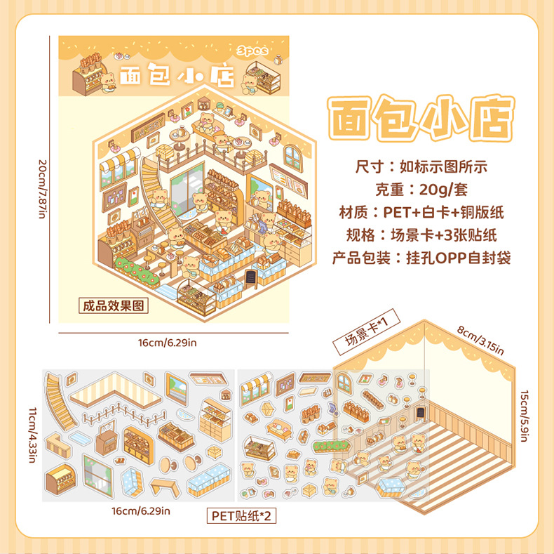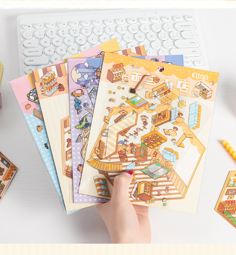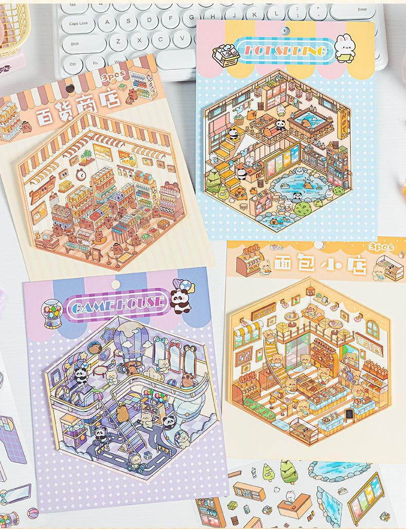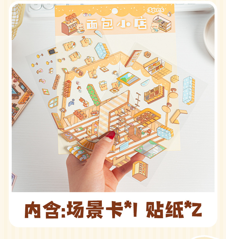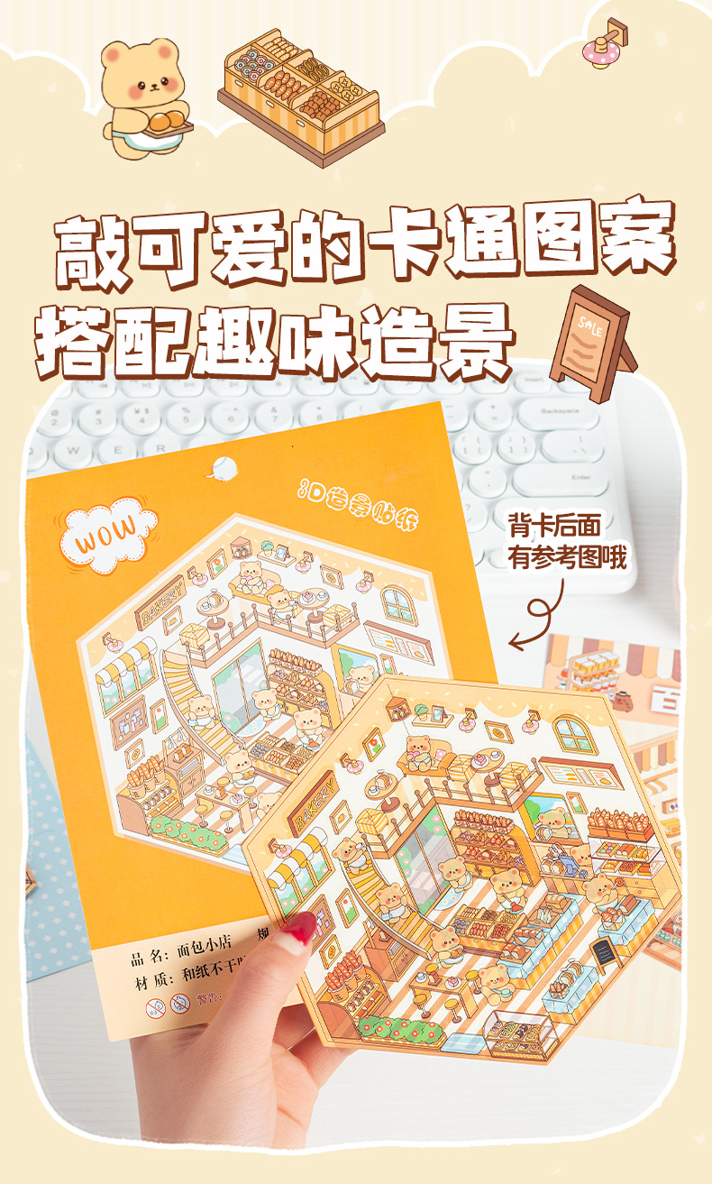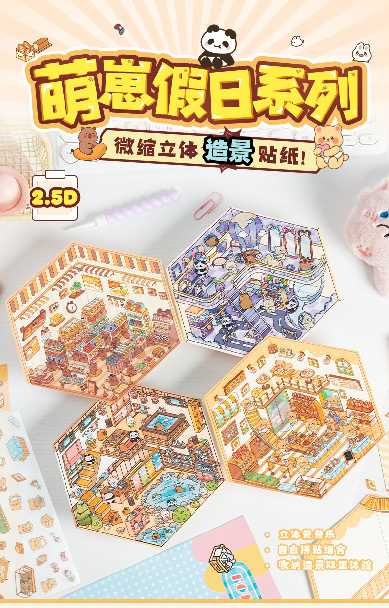 모에 새끼 휴일 3D 방수 애완 동물 스티커 만화 동물 마이크로 스케일 장면 스티커 어린이 교육 풍경 스티커스토어 가기