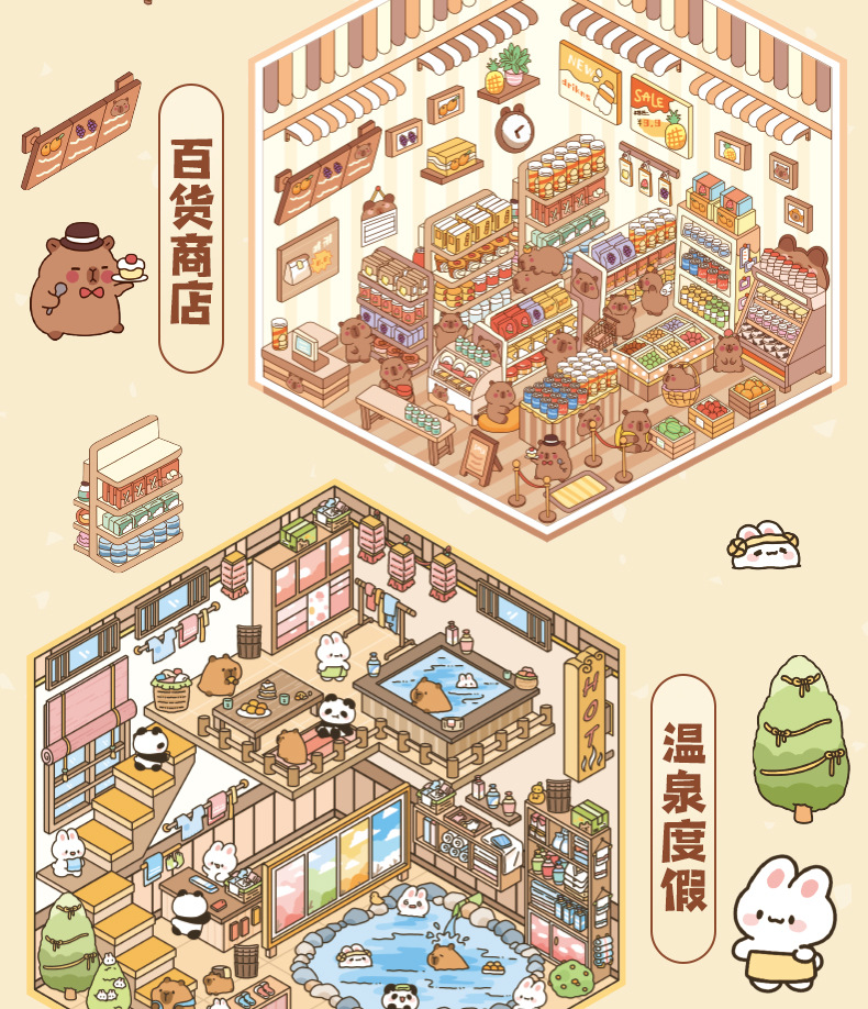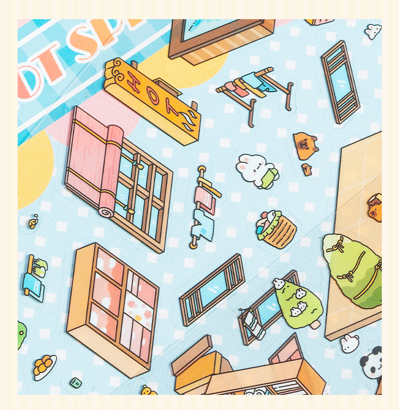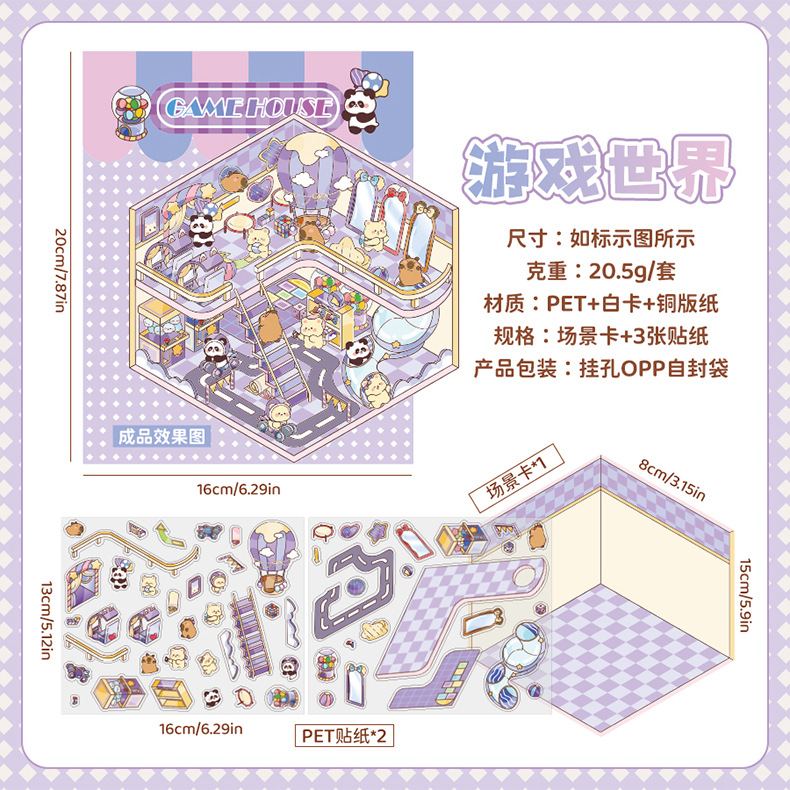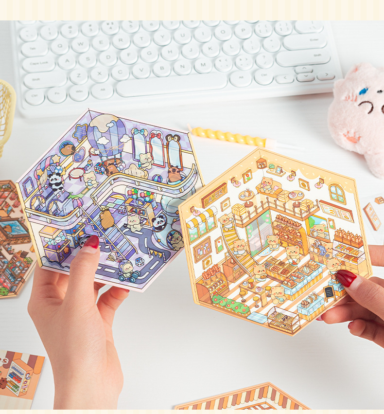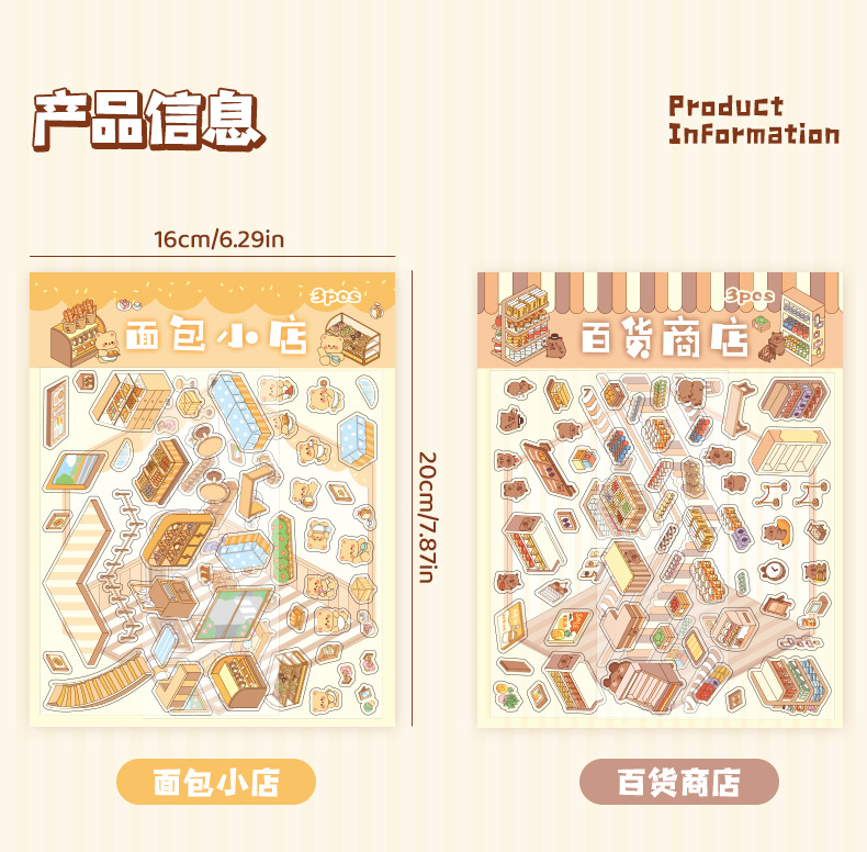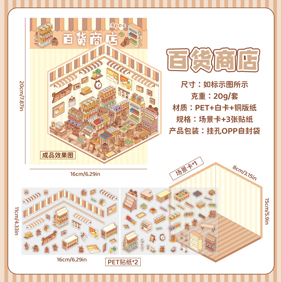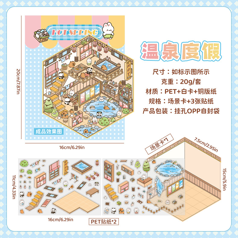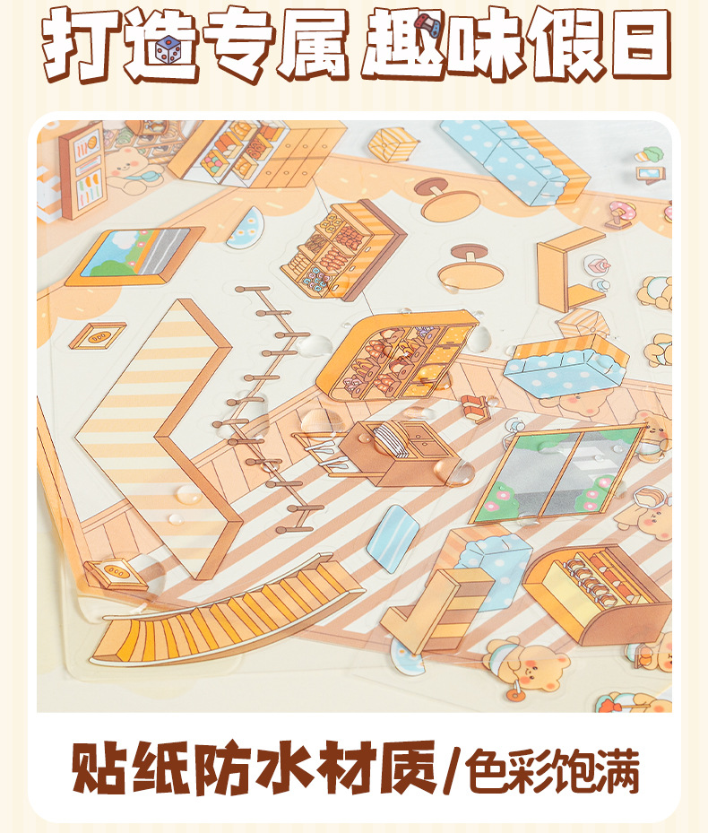 모에 새끼 휴일 3D 방수 애완 동물 스티커 만화 동물 마이크로 스케일 장면 스티커 어린이 교육 풍경 스티커스토어 가기