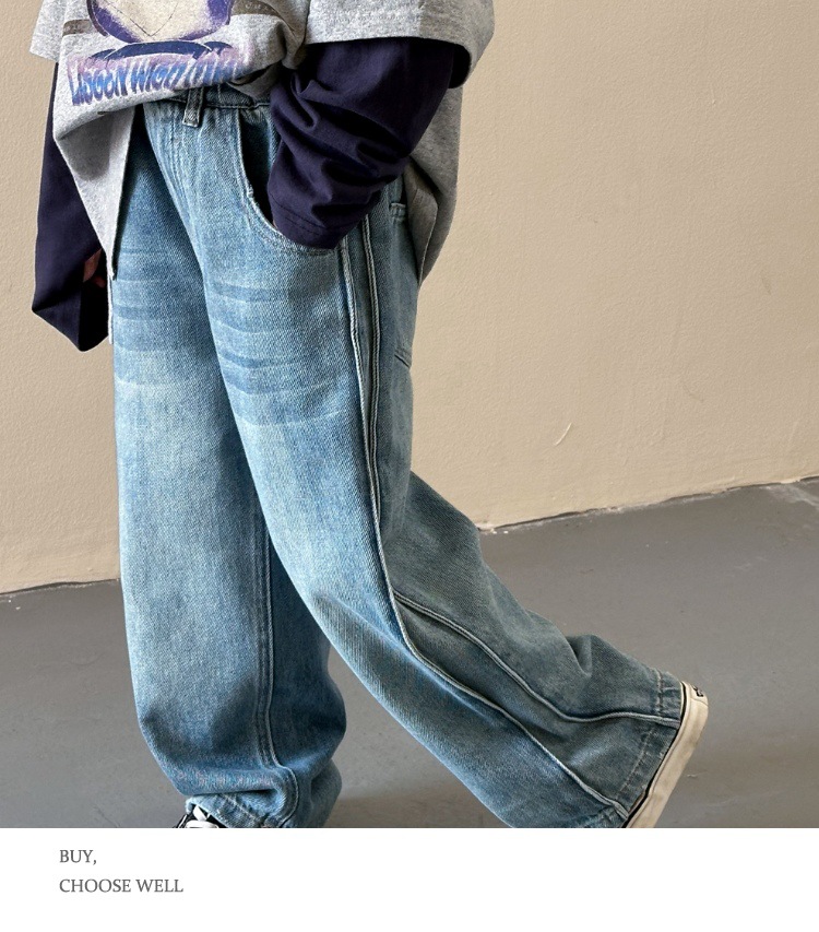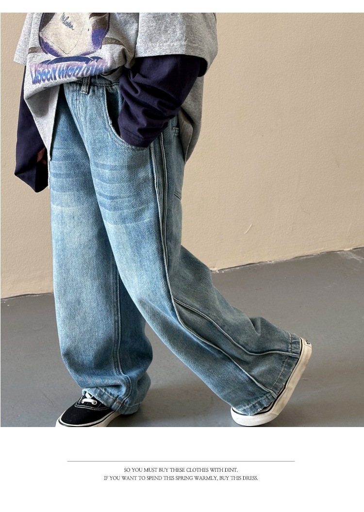 작은 붉은 물고기 소녀 청바지 2025 새로운 중학교 학생 캐주얼 봄 바지 아이들의 느슨한 스트레이트 유행 바지스토어 가기