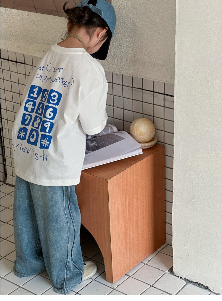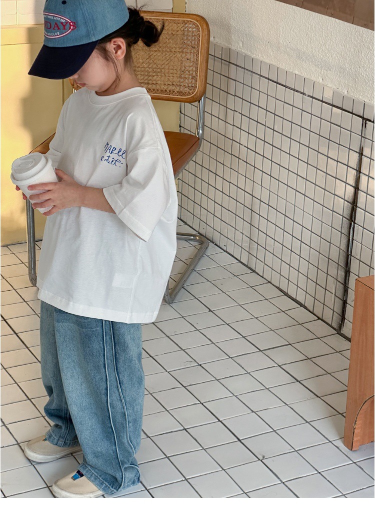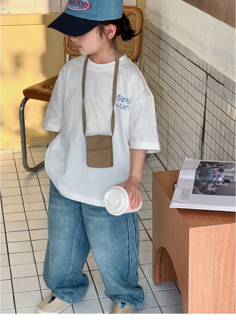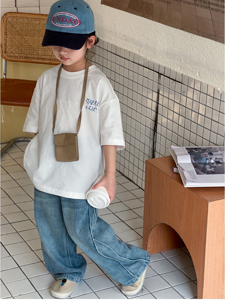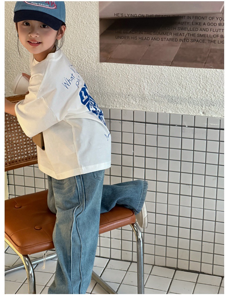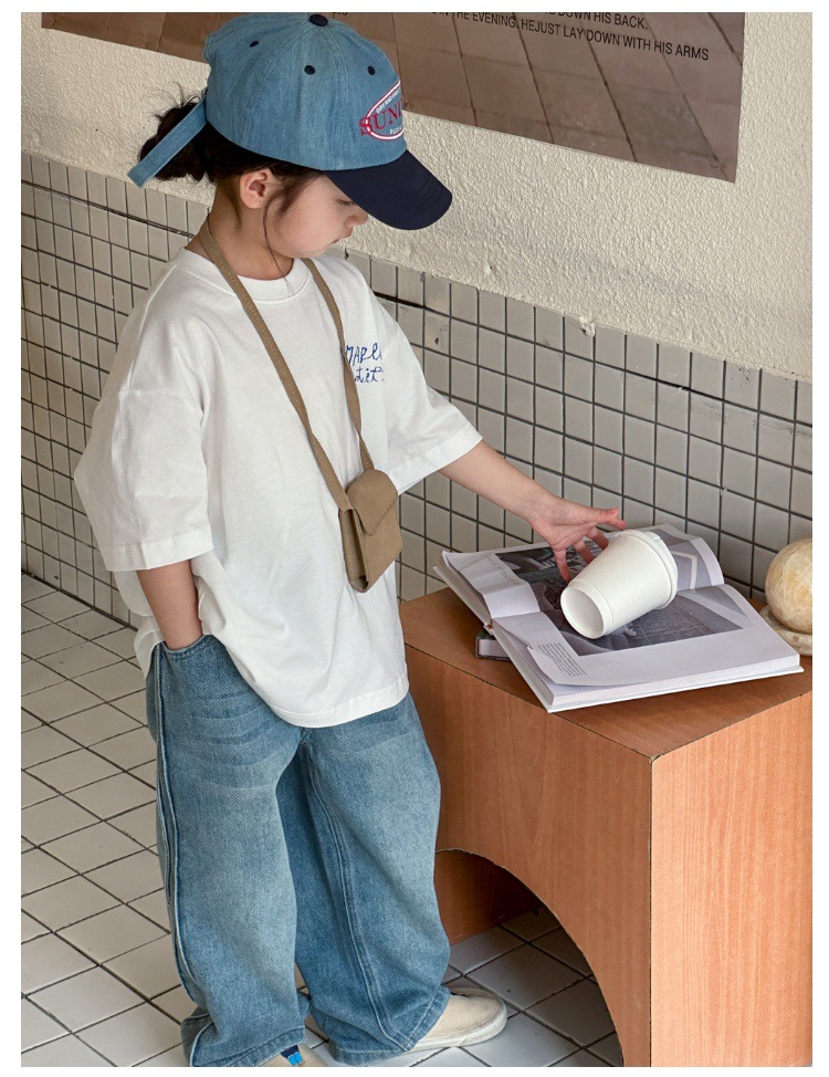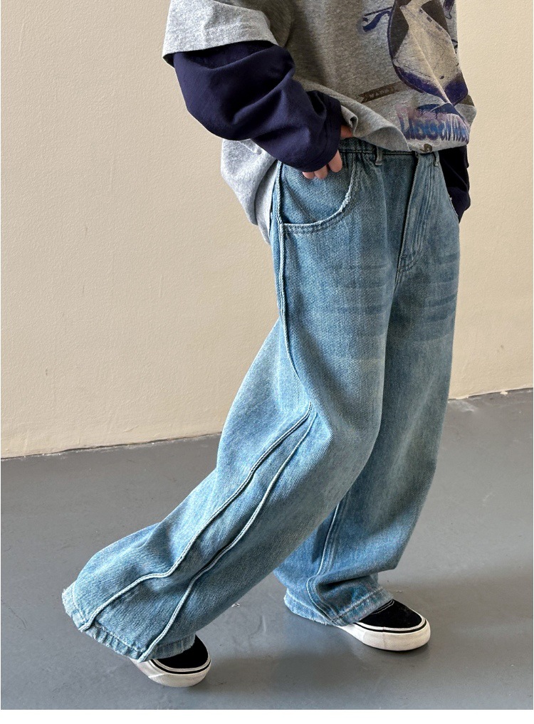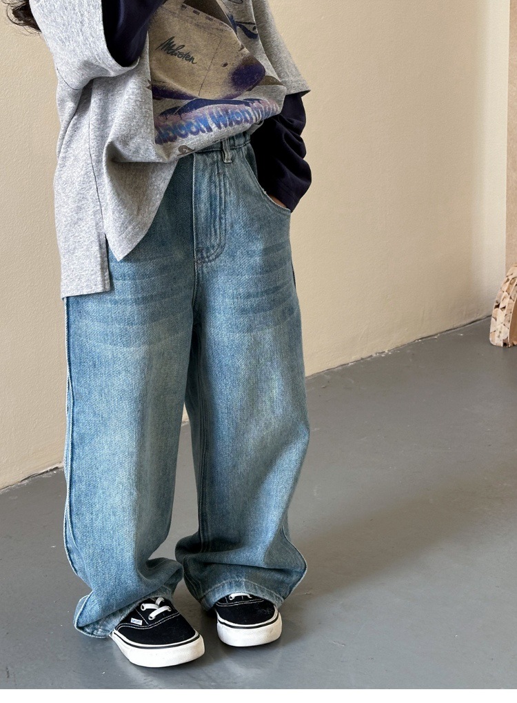 작은 붉은 물고기 소녀 청바지 2025 새로운 중학교 학생 캐주얼 봄 바지 아이들의 느슨한 스트레이트 유행 바지