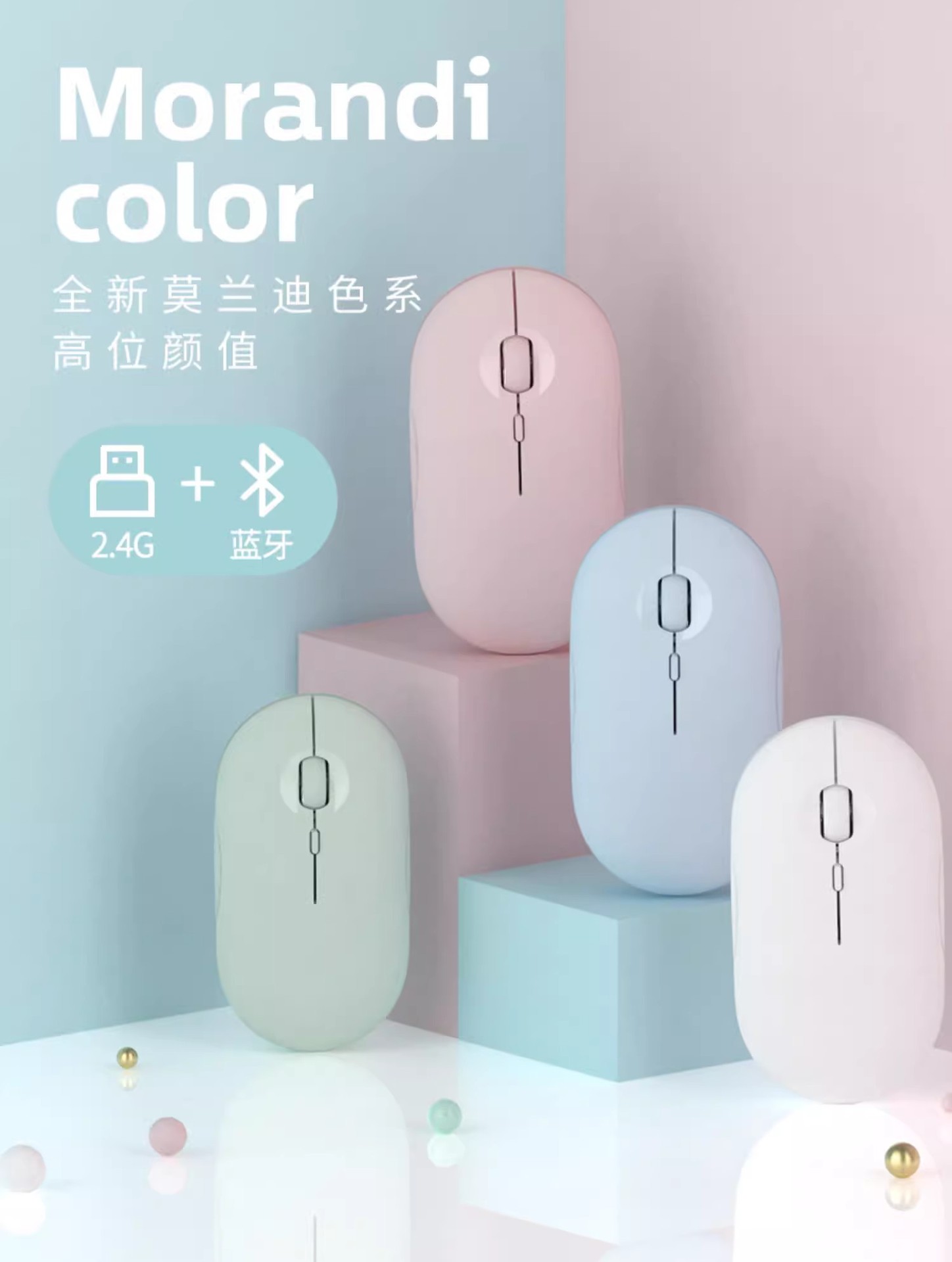 【모바일폰용】크로스보더 블루투스 무선 마우스, 무소음 듀얼 모드, Type-c 충전식, 광전식 무소음 버튼