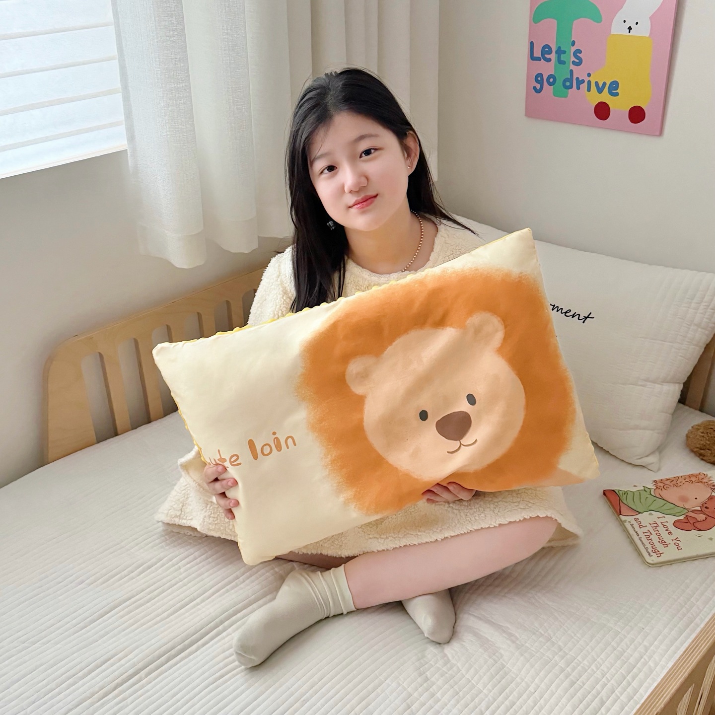 • 면 비니 베개-사자
