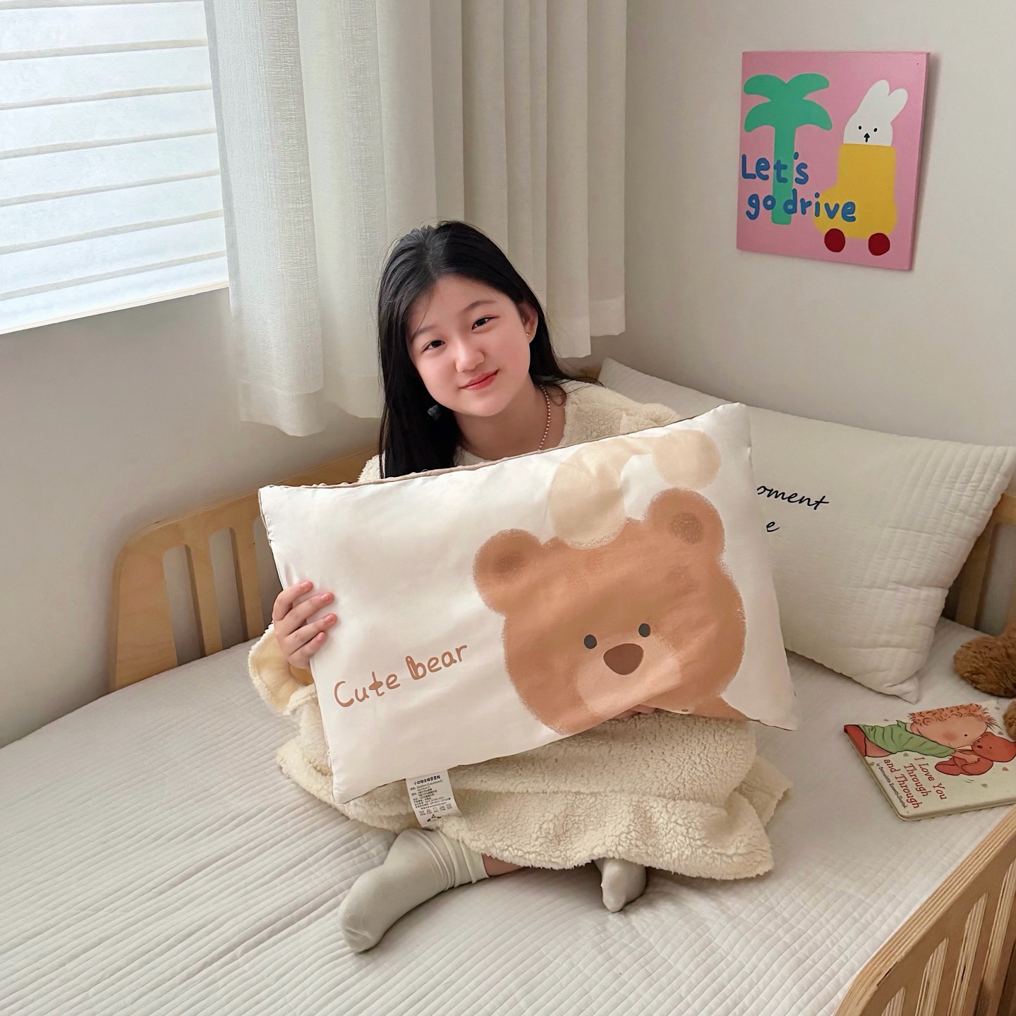 대형 만화 캐릭터 어린이용 순면 콩베개, 유치원생 낮잠베개, 탈부착 및 세탁 가능한 청소년 학생베개스토어 가기