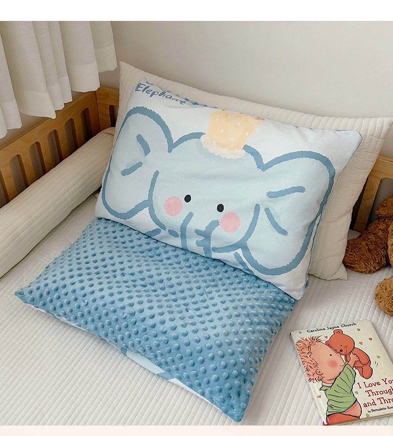 대형 만화 캐릭터 어린이용 순면 콩베개, 유치원생 낮잠베개, 탈부착 및 세탁 가능한 청소년 학생베개