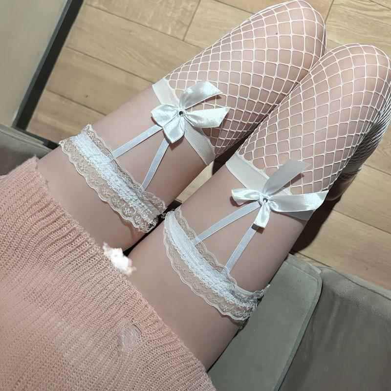 다리링 슬립스타킹, 섹시한 레드 엣지 블랙 실크 허벅지스타킹, 여성용 퓨어 러브 오버니스타킹, 레이스 화이트 리본스토어 가기