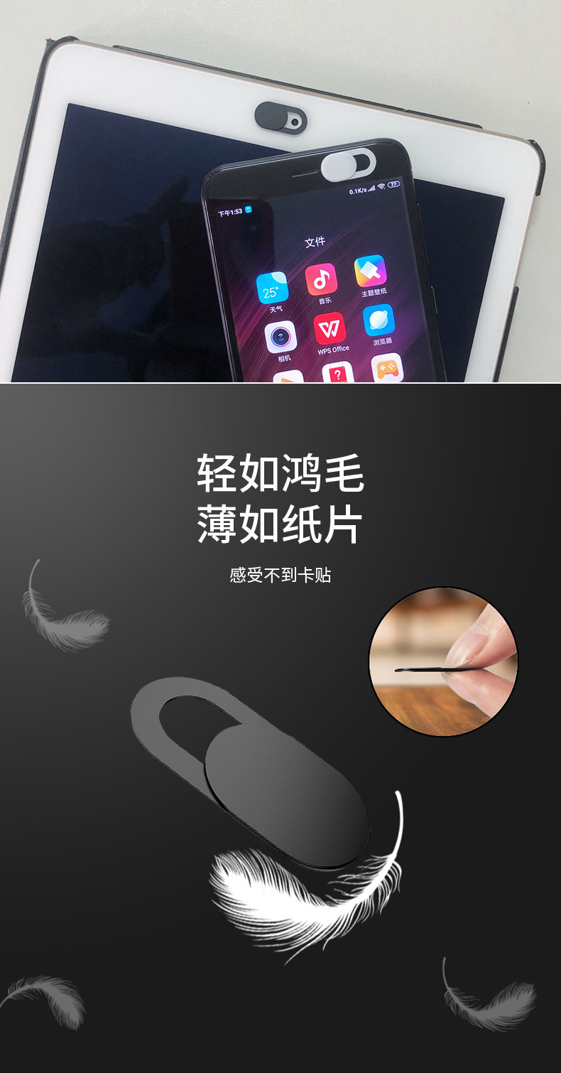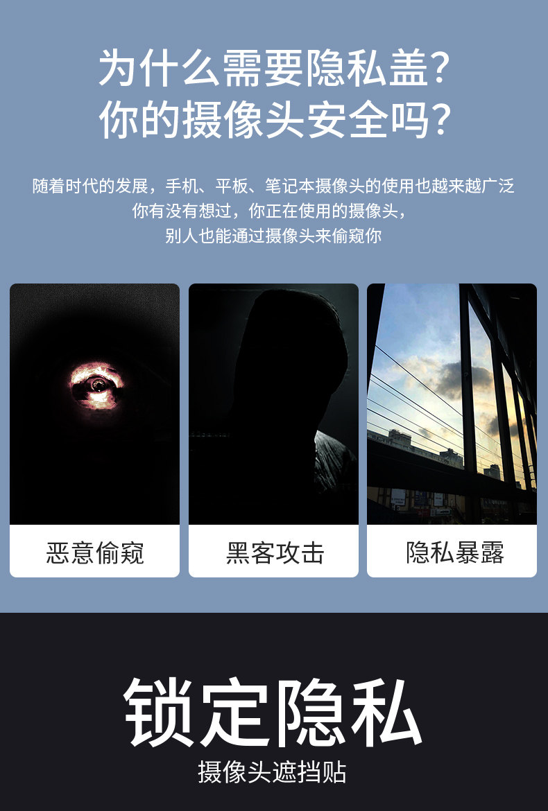 笔记本摄像头遮挡贴苹果华为手机平板电脑直播前置摄像头镜头盖防黑客偷窥监控保护隐私iPad网课保密贴纸轻薄