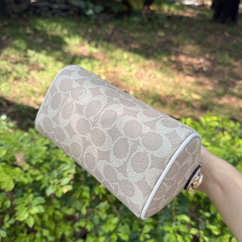 코코 C 2025 새로운 타닌 블루 보스턴 베개 가방 로완 18 클래식 올드 플라워 미니 숄더 언더암 가방