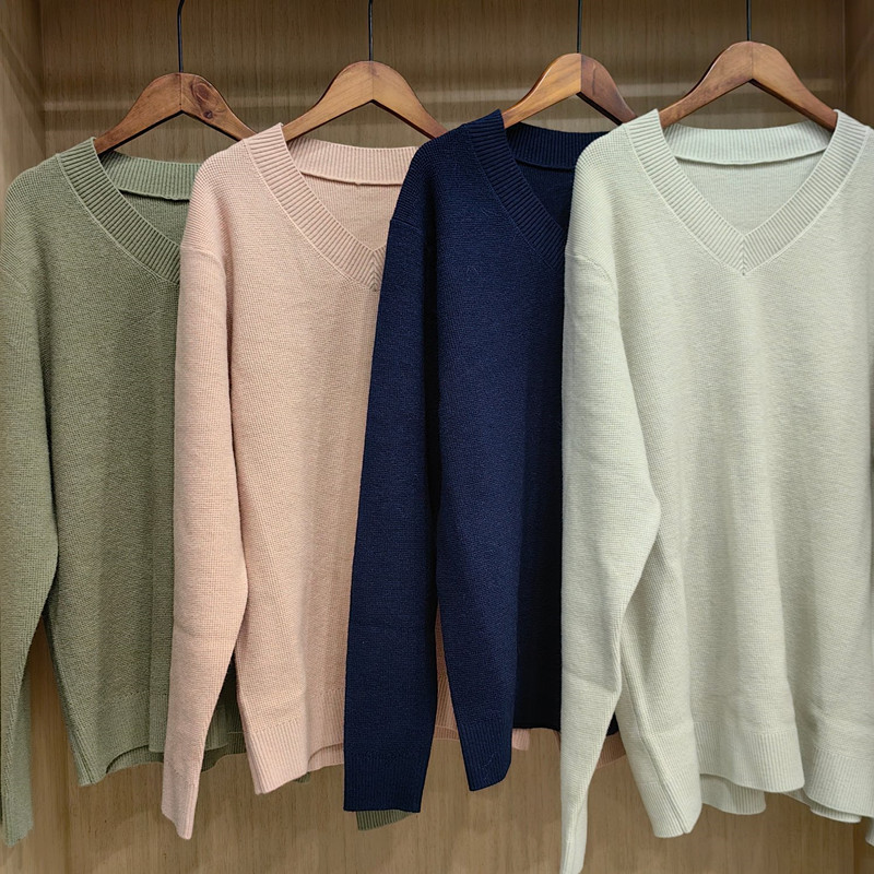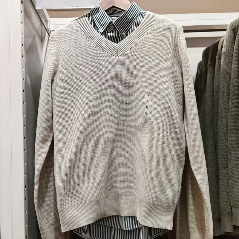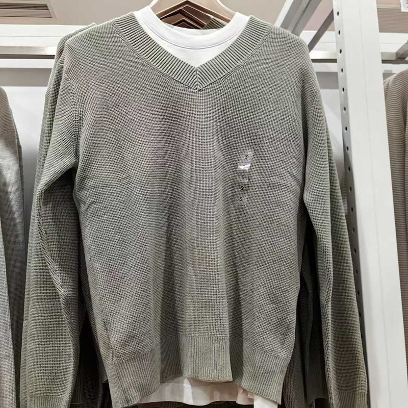 2025 봄 남성 및 여성 와플 브이넥 스웨터/커플 스타일 긴팔 캐주얼 스웨터 475295