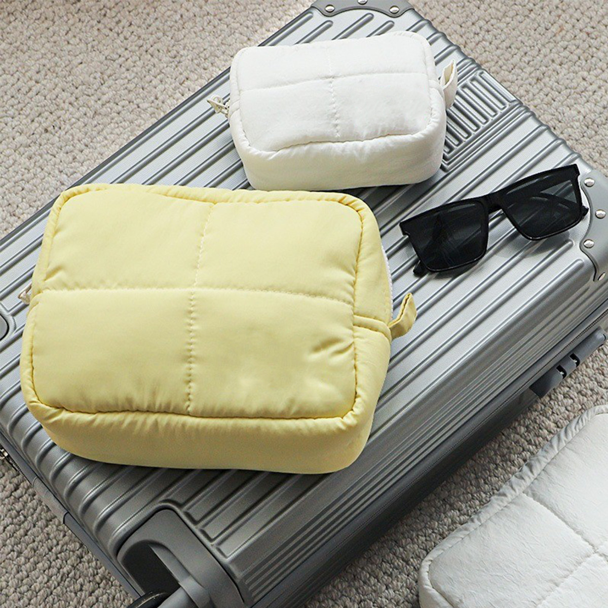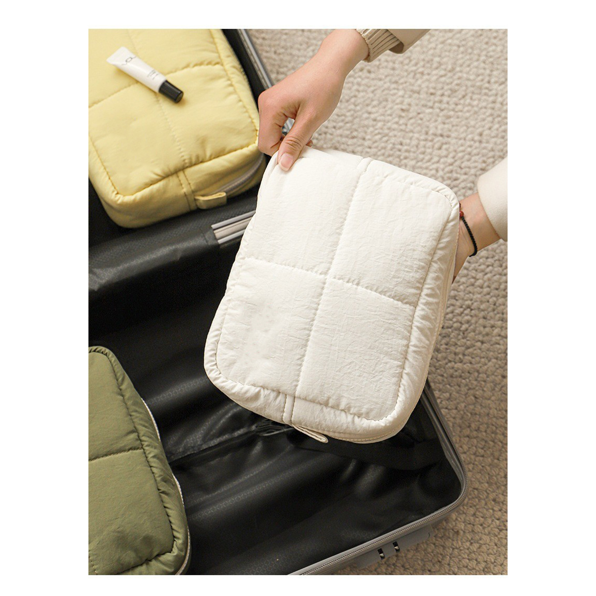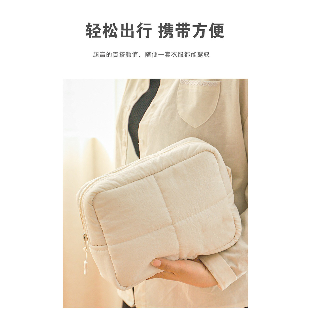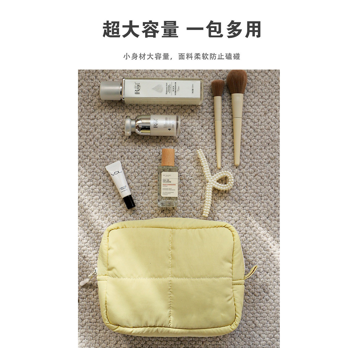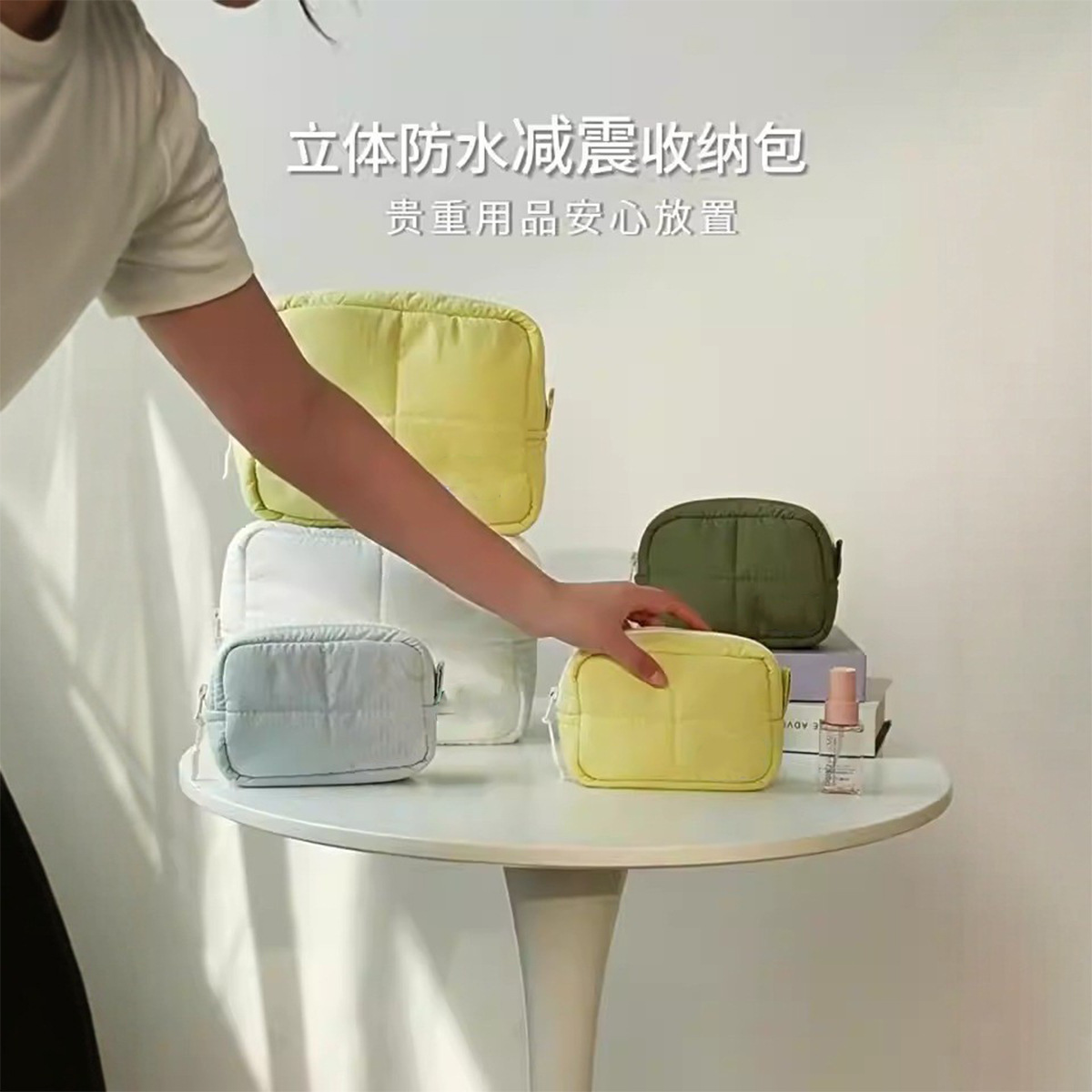 맞춤형 퀼팅 화장품 가방, 여성용 입체형, 무너지지 않는 대용량 방수 여행용 화장품 수납 가방, 작고 휴대 가능스토어 가기