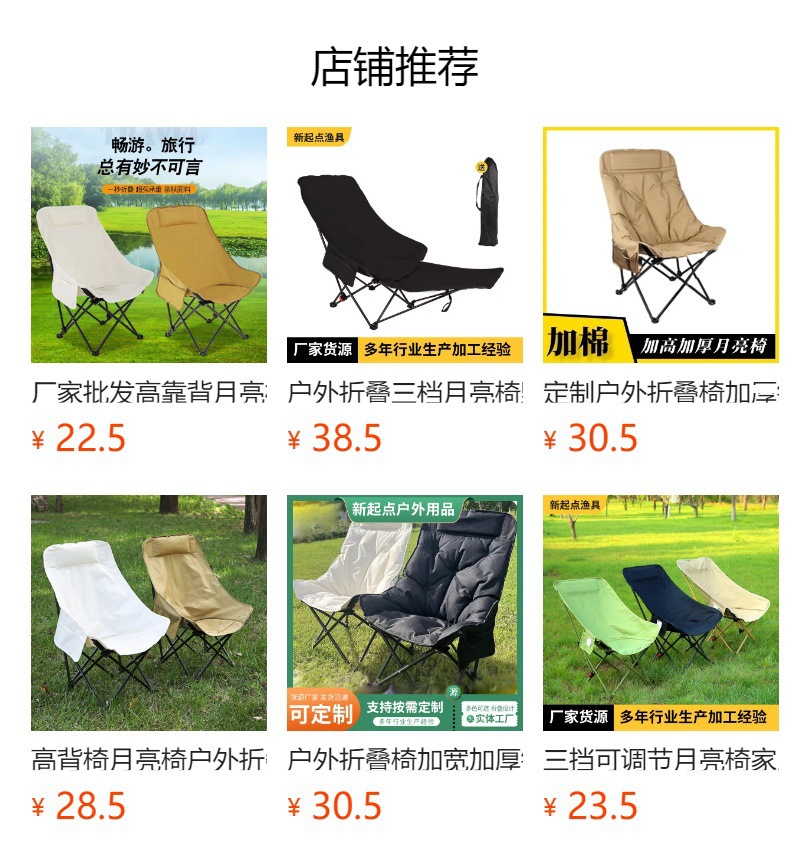 국경 간 3단 조절 가능한 달 의자, 편리한 안락 의자, 야외 캠핑 높은 등받이 접이식 의자, 낚시 의자 도매스토어 가기