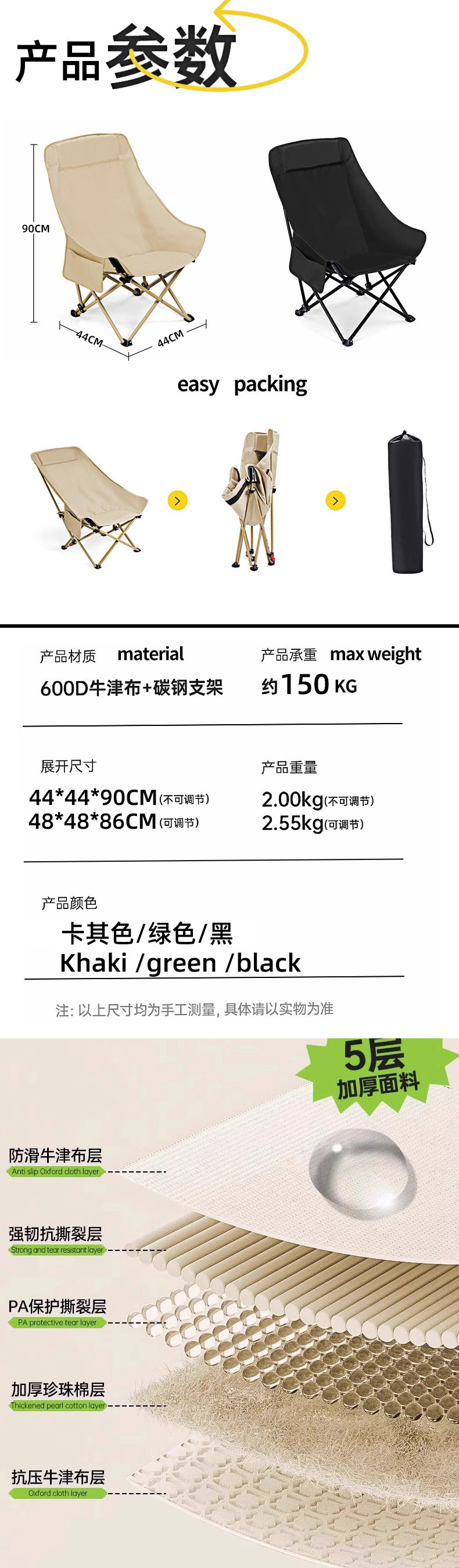 국경 간 3단 조절 가능한 달 의자, 편리한 안락 의자, 야외 캠핑 높은 등받이 접이식 의자, 낚시 의자 도매