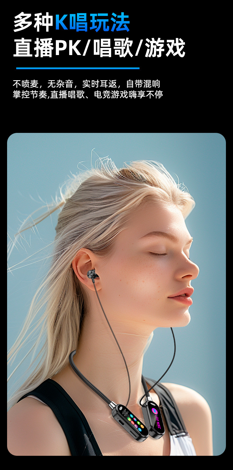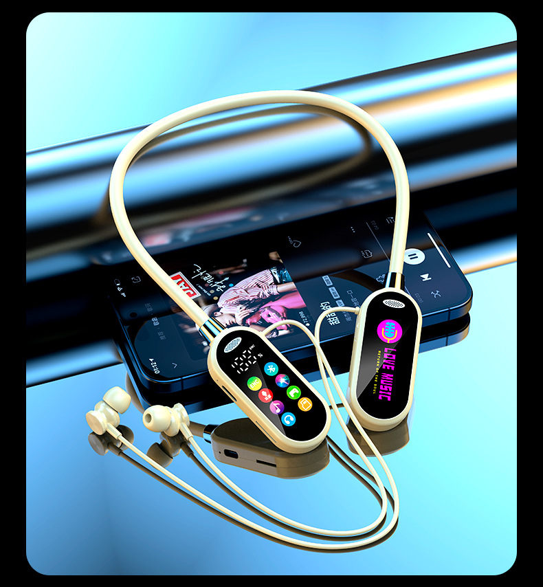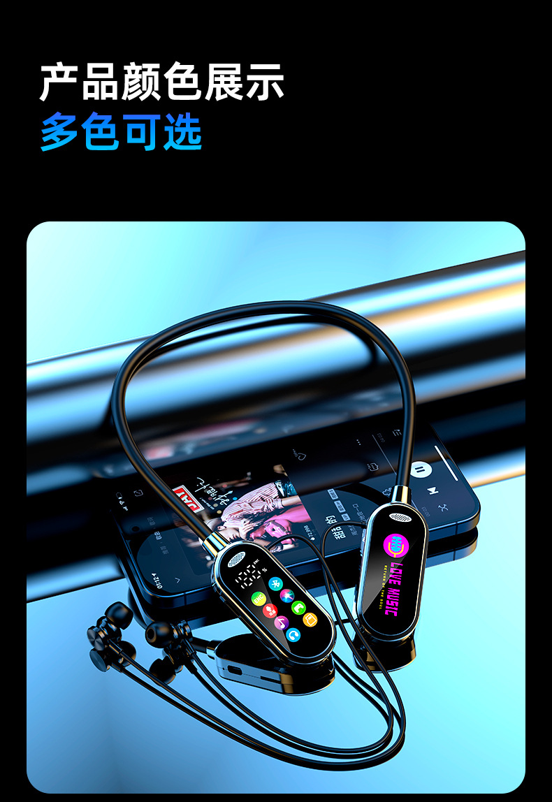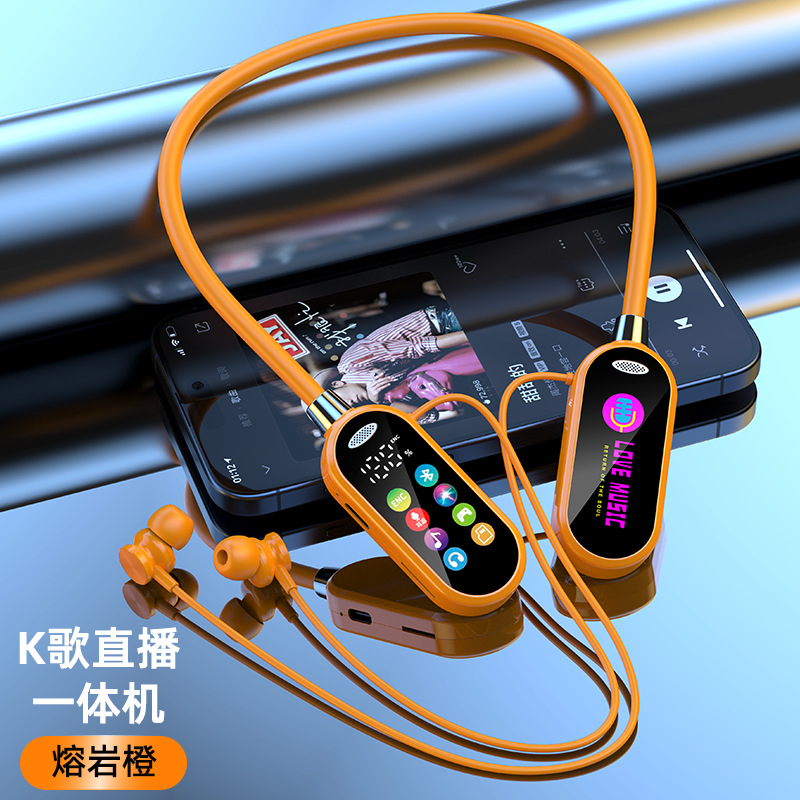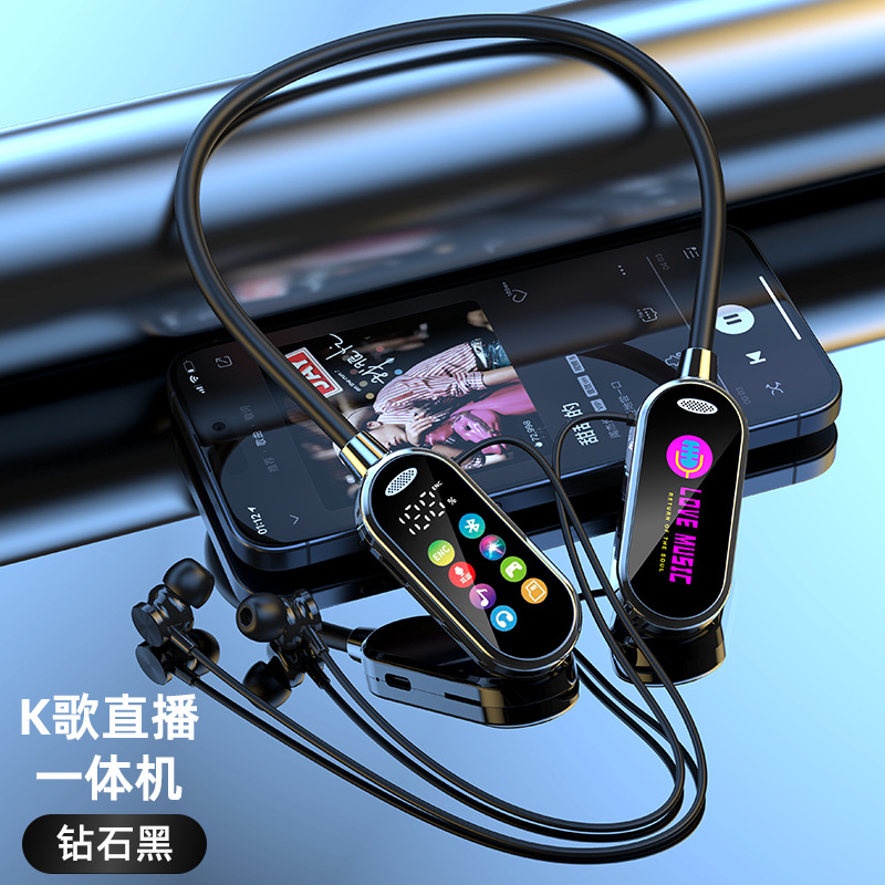 새로운 스타일의 노래방 노래 라이브 방송 컬러 스크린 목 장착형 무선 블루투스 헤드셋 목 장착형 소프트 보컬 슈퍼 긴 대기 시간
