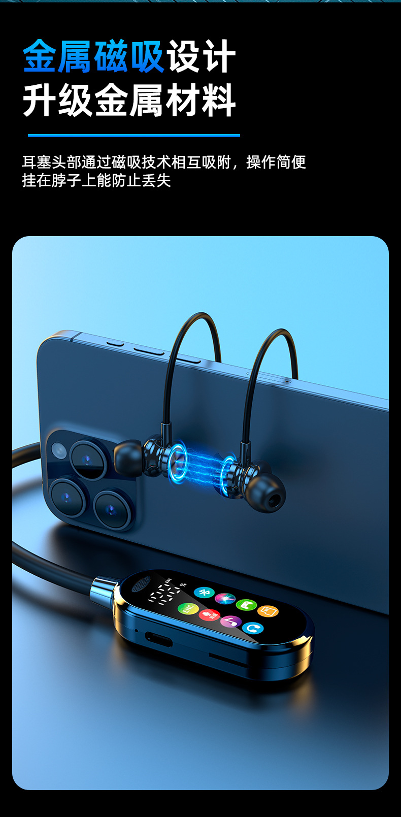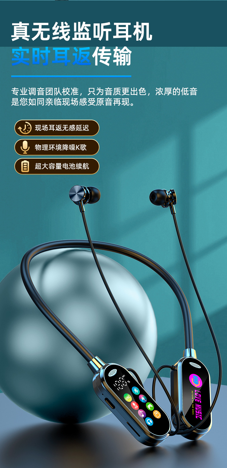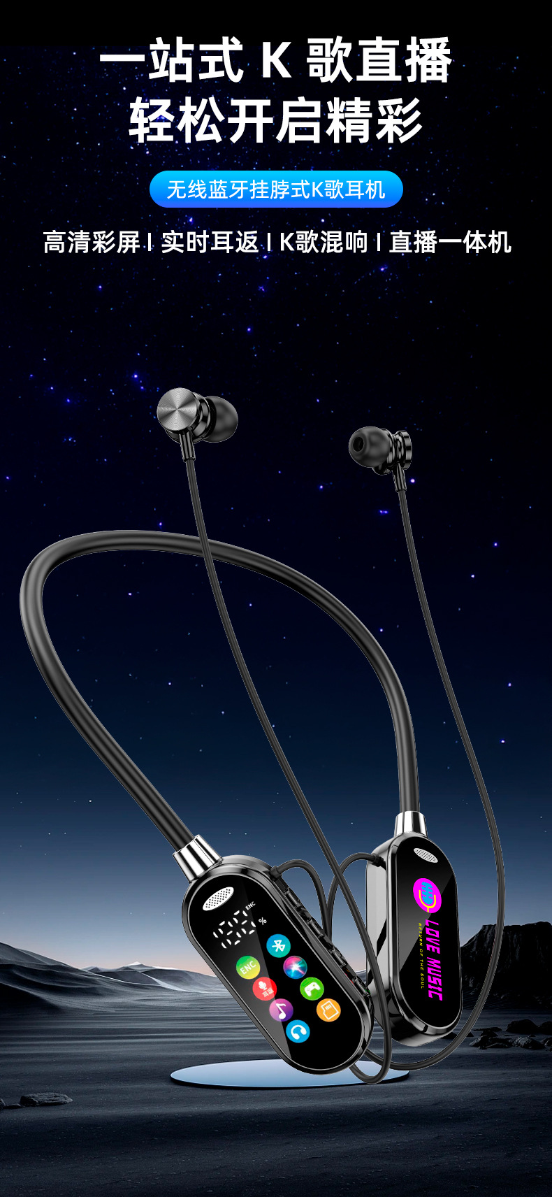 새로운 스타일의 노래방 노래 라이브 방송 컬러 스크린 목 장착형 무선 블루투스 헤드셋 목 장착형 소프트 보컬 슈퍼 긴 대기 시간
