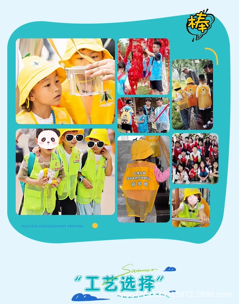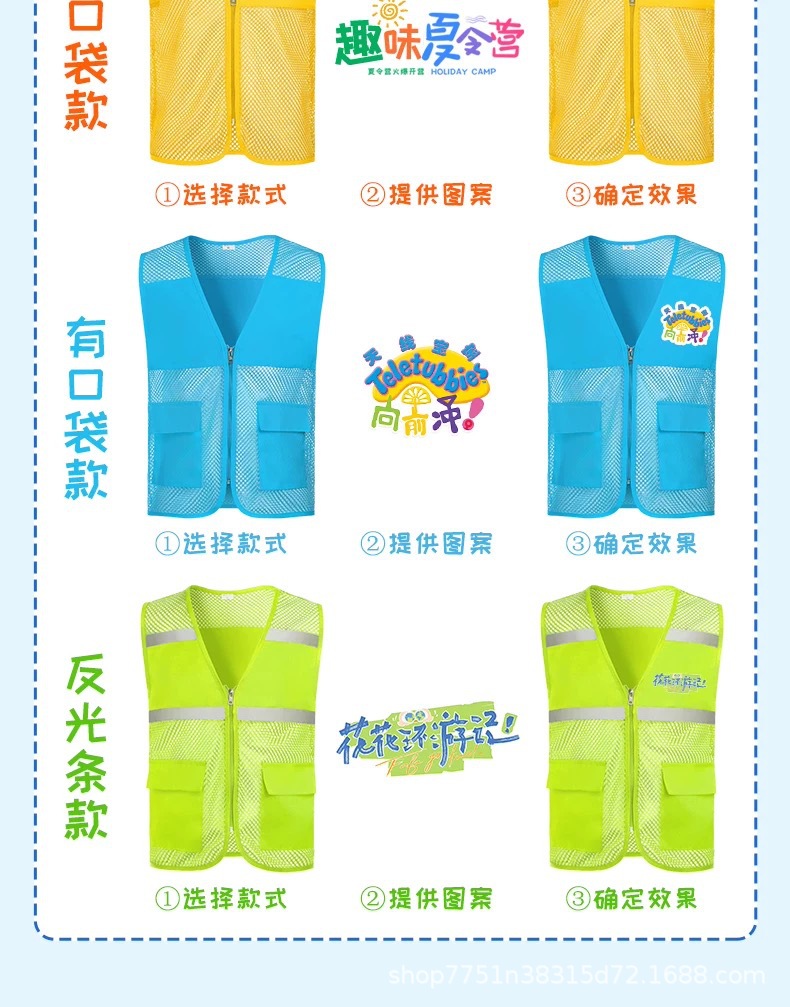 메시 어린이 조끼 맞춤 인쇄 로고 초등학교 여름 캠프 여행 연구 활동 조끼 관리 작업복