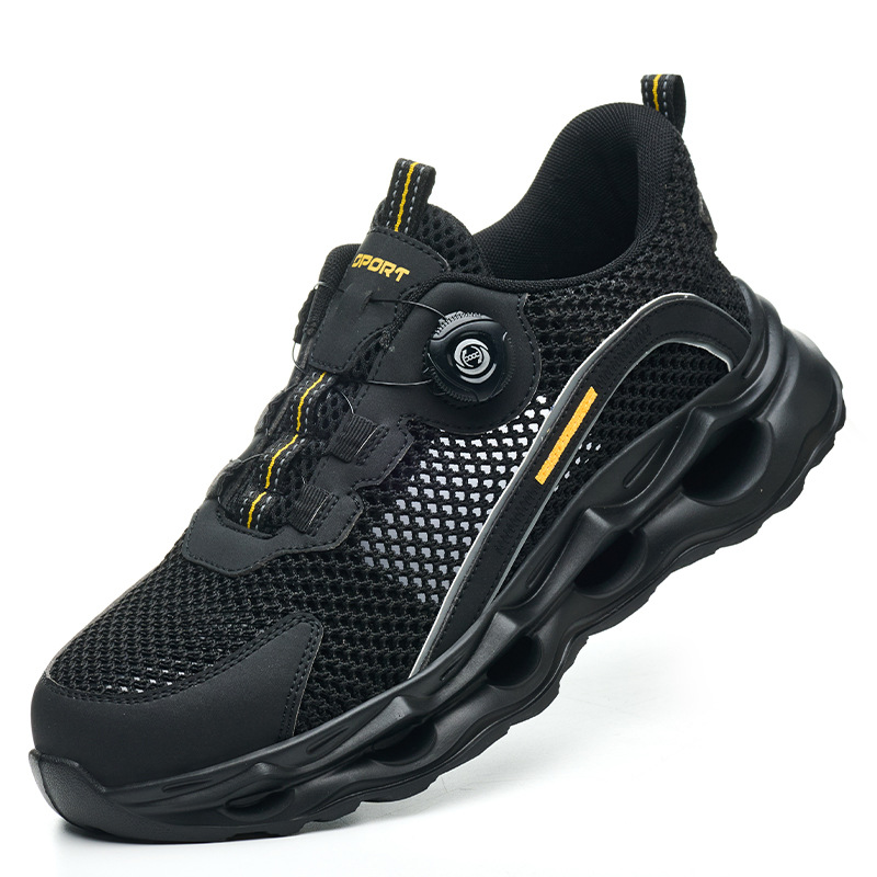 초경량 연약한 여름 통기성 안전 신발 남성용 경량 국경 버튼 레이스 업 보호 신발 유행 충격 쿠션 작업 신발스토어 가기