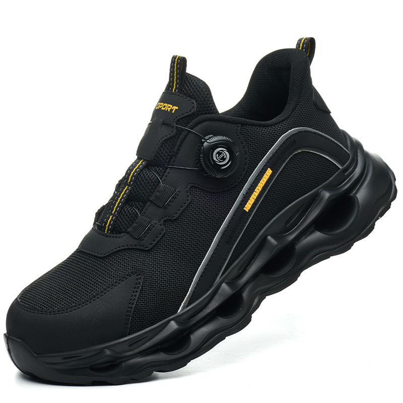 초경량 연약한 여름 통기성 안전 신발 남성용 경량 국경 버튼 레이스 업 보호 신발 유행 충격 쿠션 작업 신발
