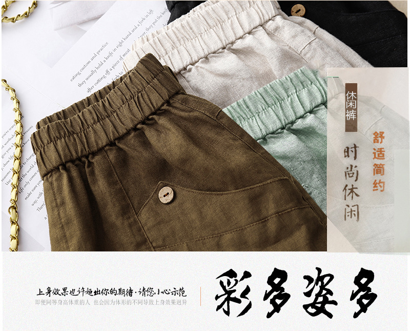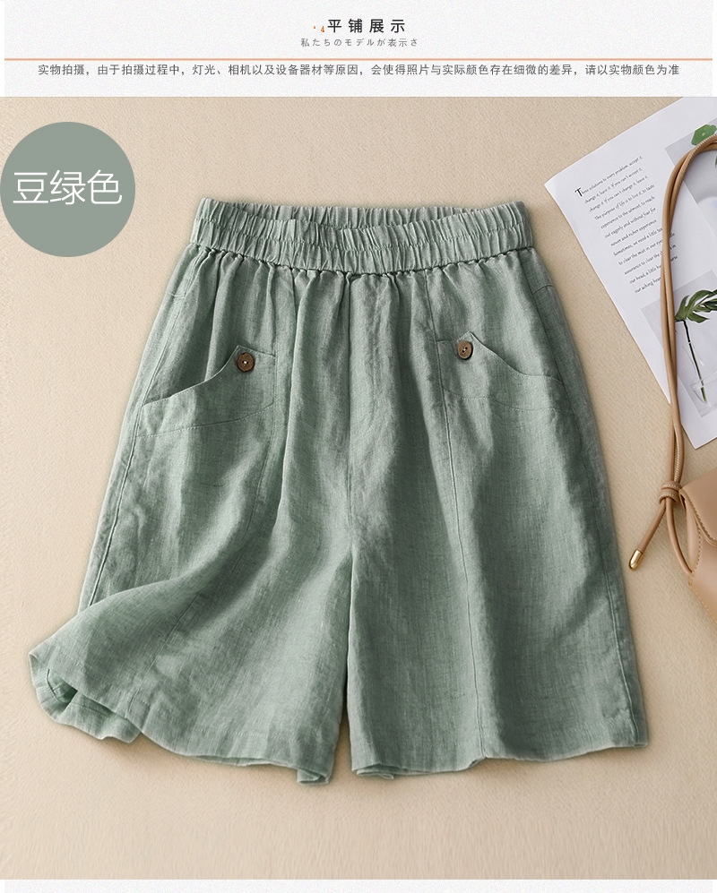 2025년 신상 하이엔드 린넨 반바지 여성 여름 신축성 있는 허리 A라인 와이드 팬츠 루즈 슬리밍 캐주얼 반바지스토어 가기