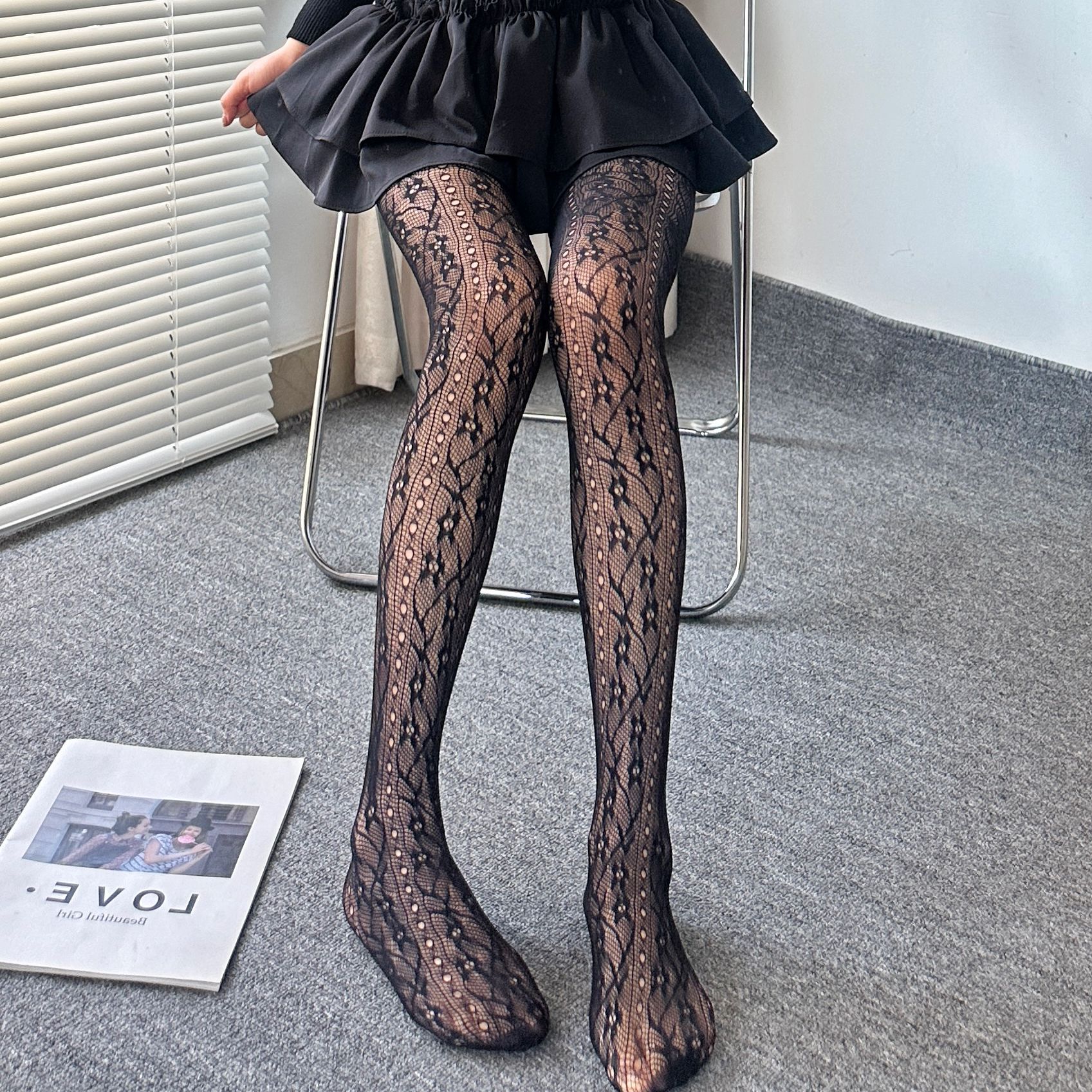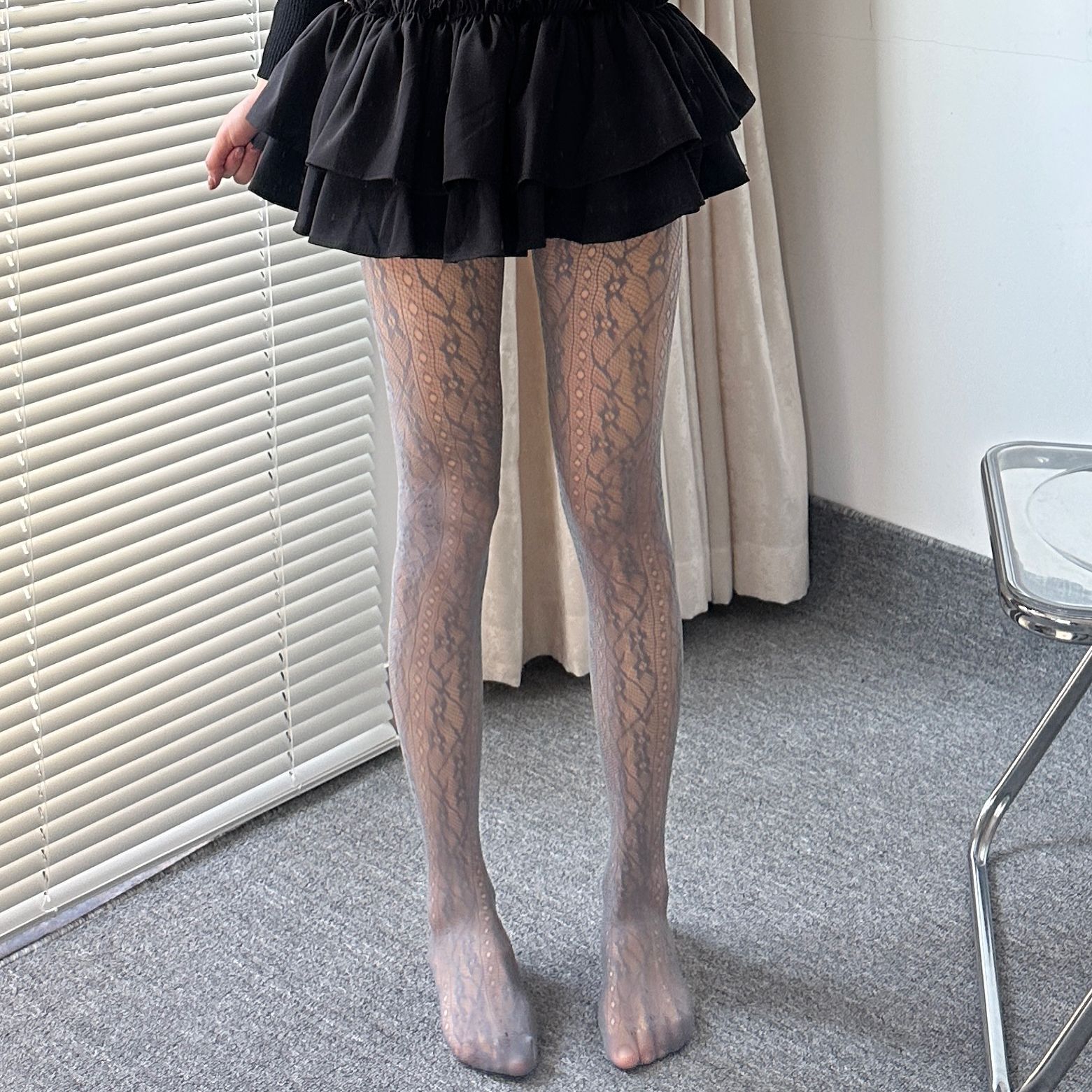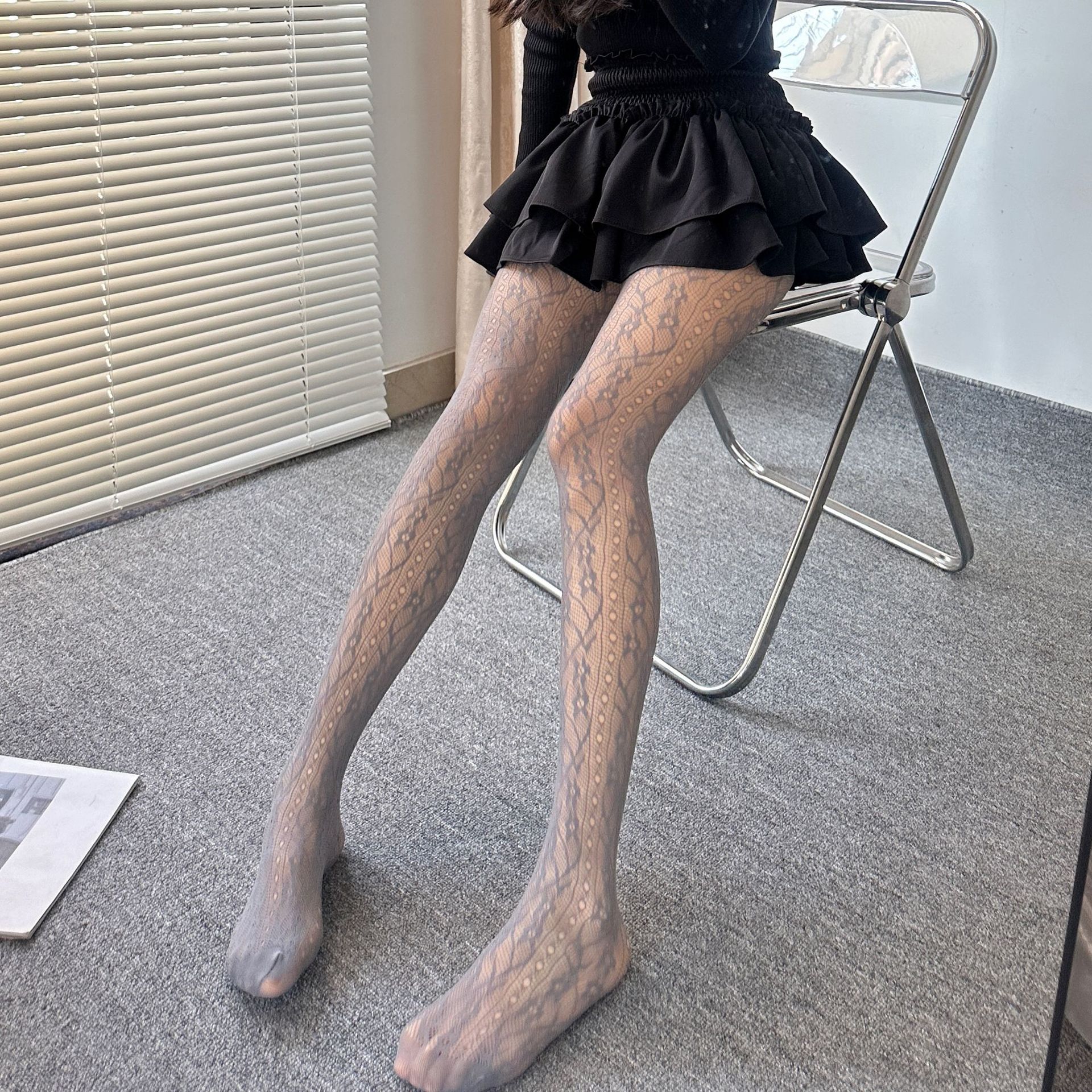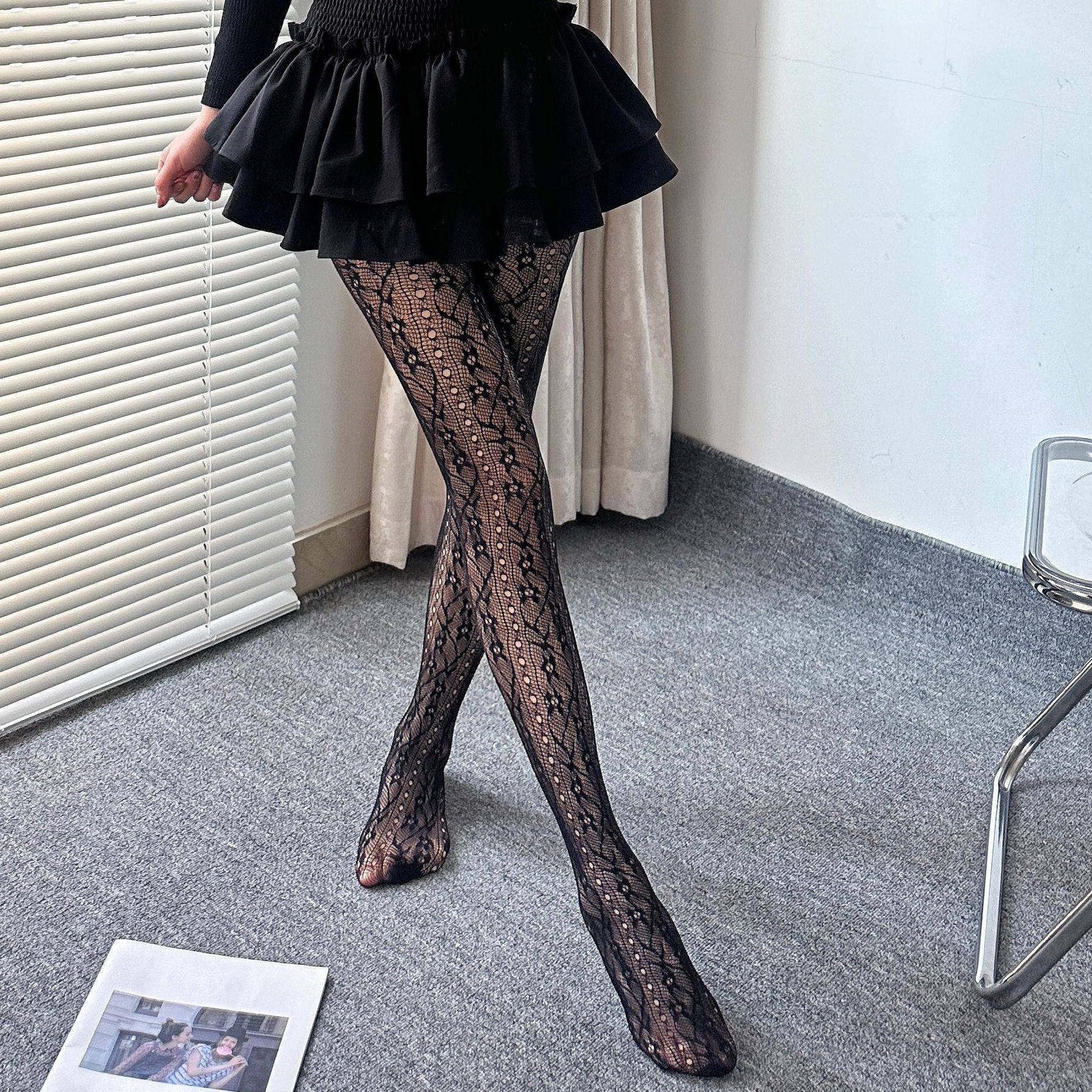2025 봄과 여름 우아한 복고풍 꽃 덩굴 수직 패턴 중공 뜨거운 소녀 꽃 스타킹 자카드 Fishnet 팬티 스타킹 여성용
