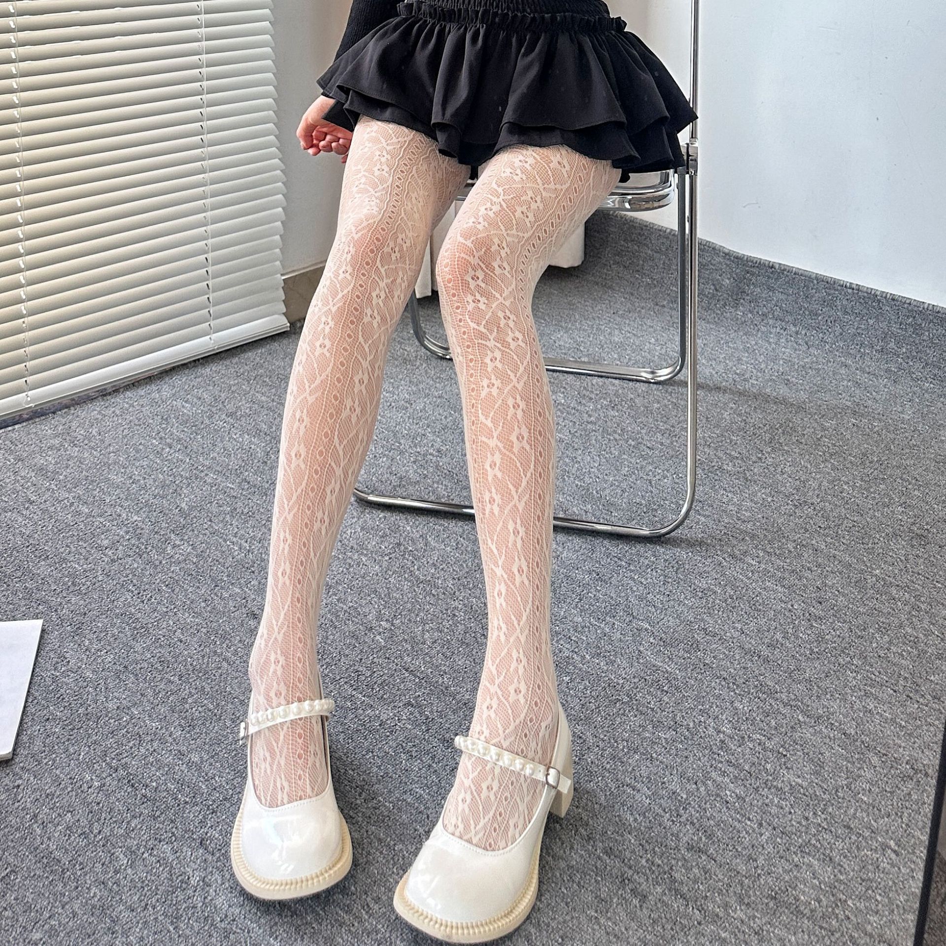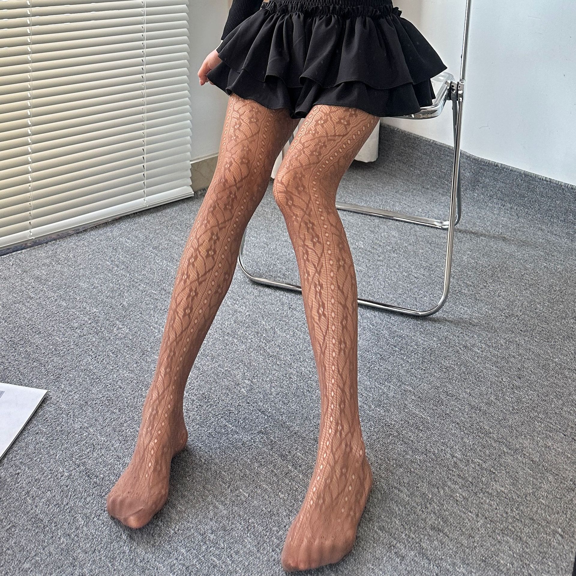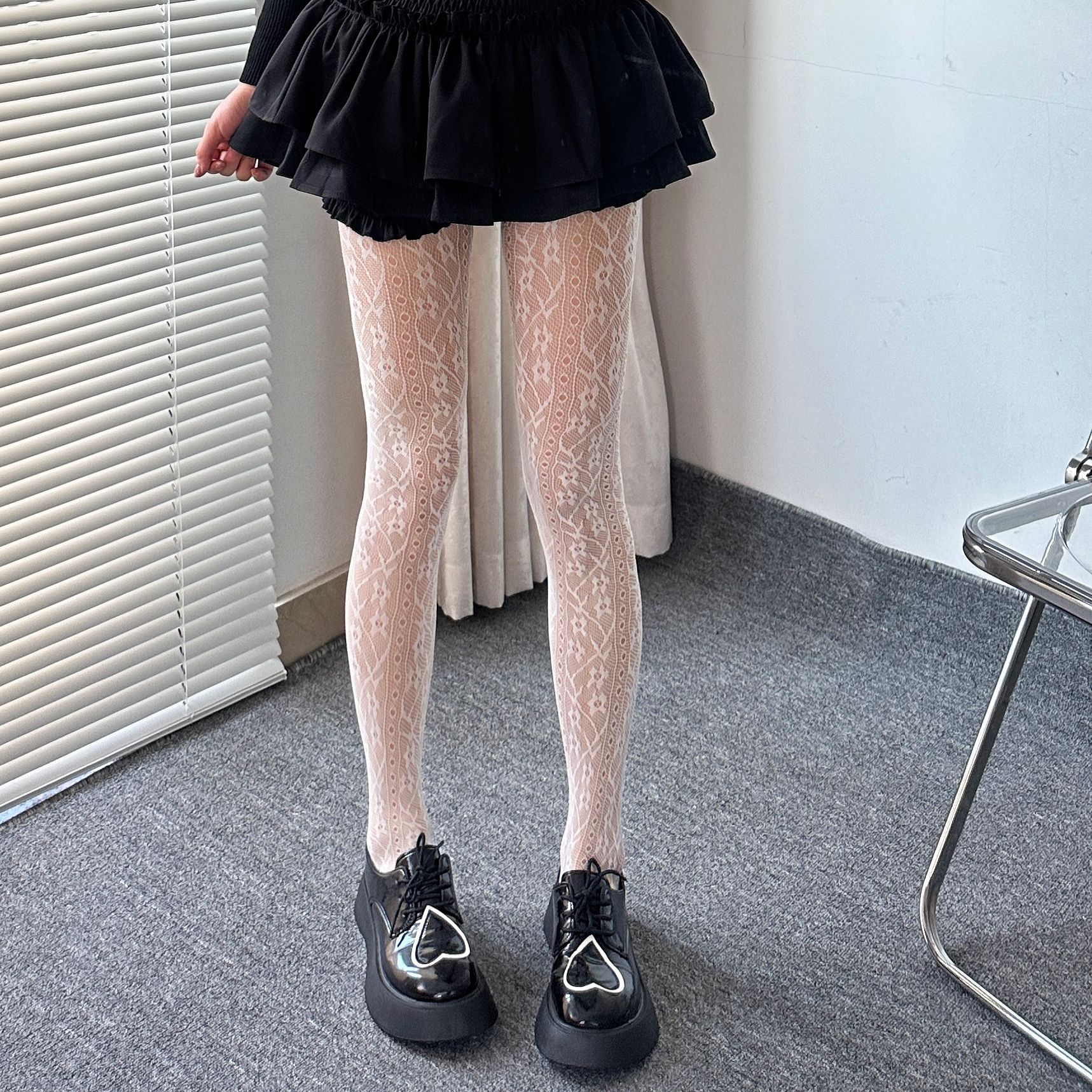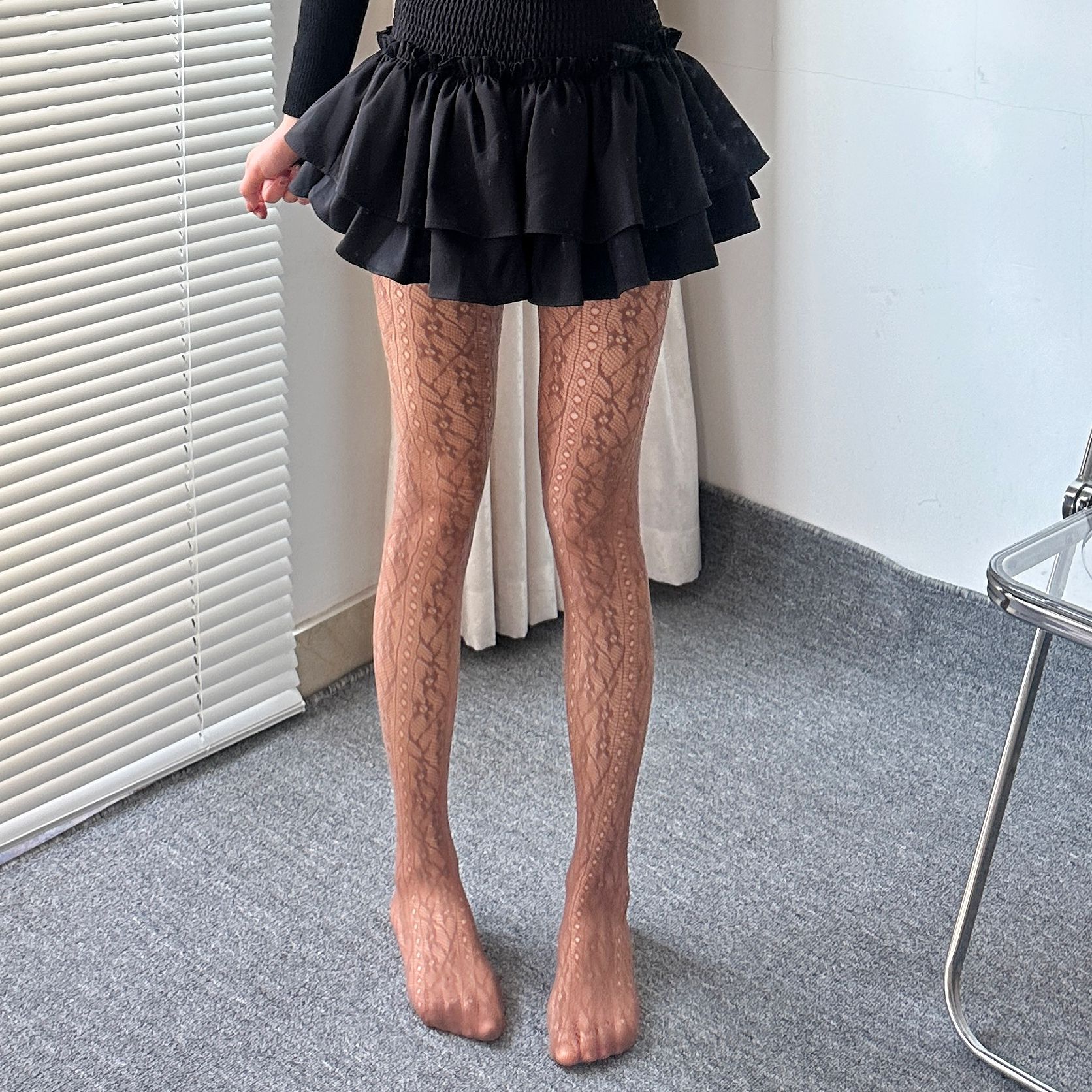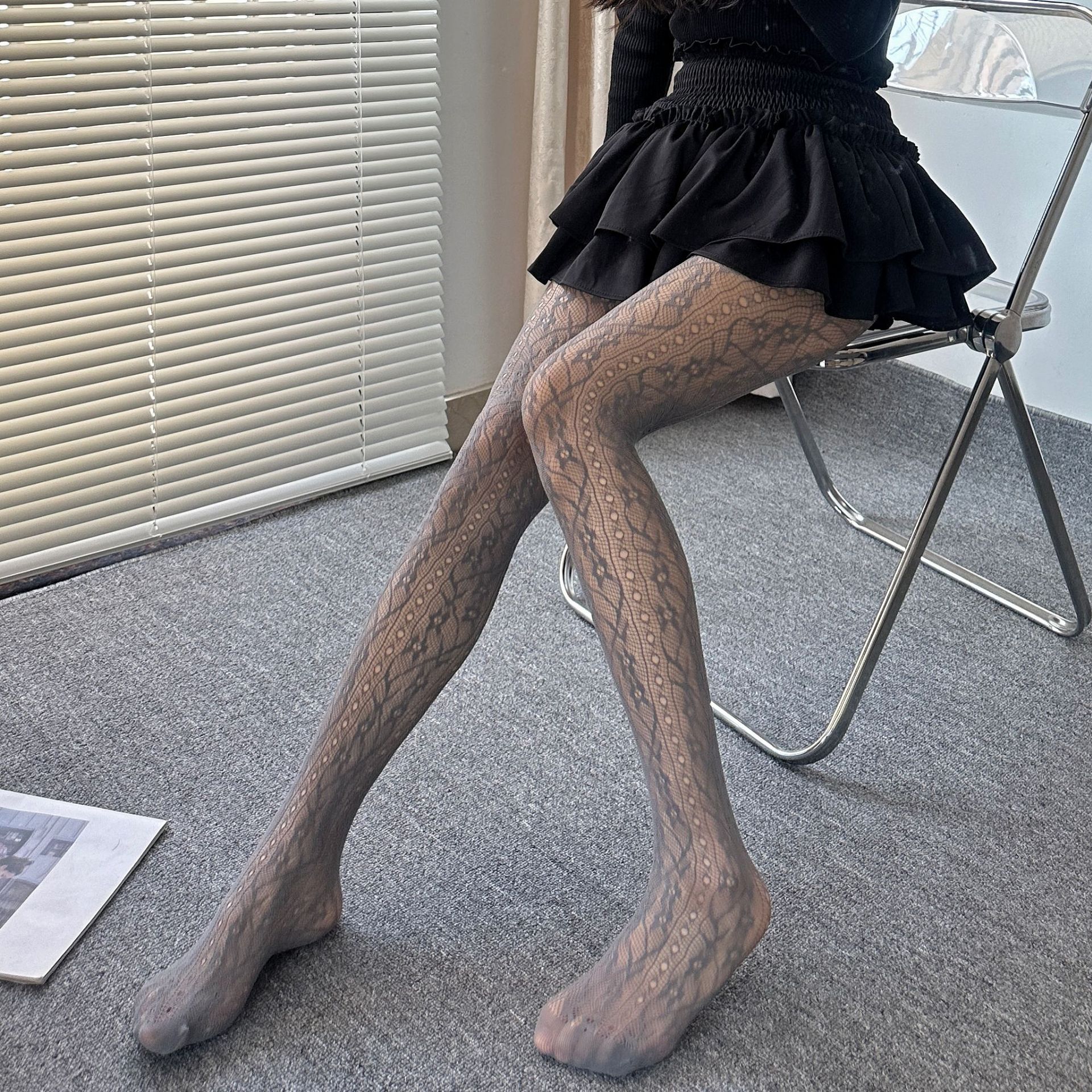 2025 봄과 여름 우아한 복고풍 꽃 덩굴 수직 패턴 중공 뜨거운 소녀 꽃 스타킹 자카드 Fishnet 팬티 스타킹 여성용