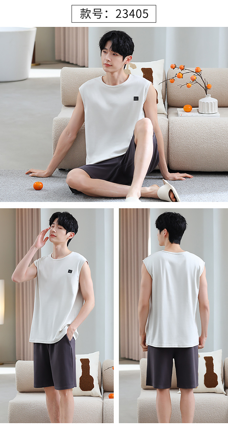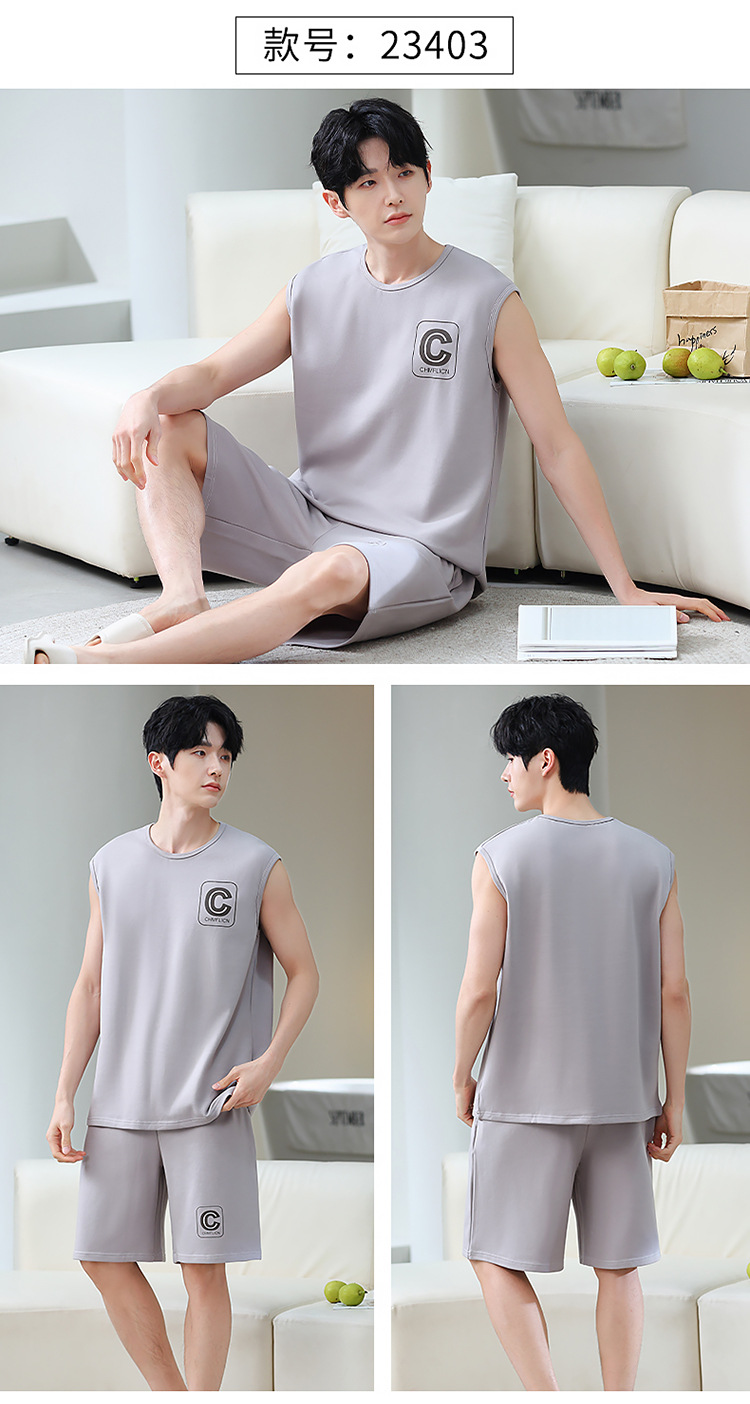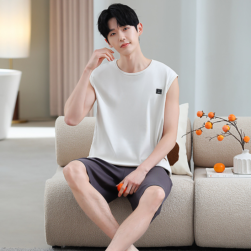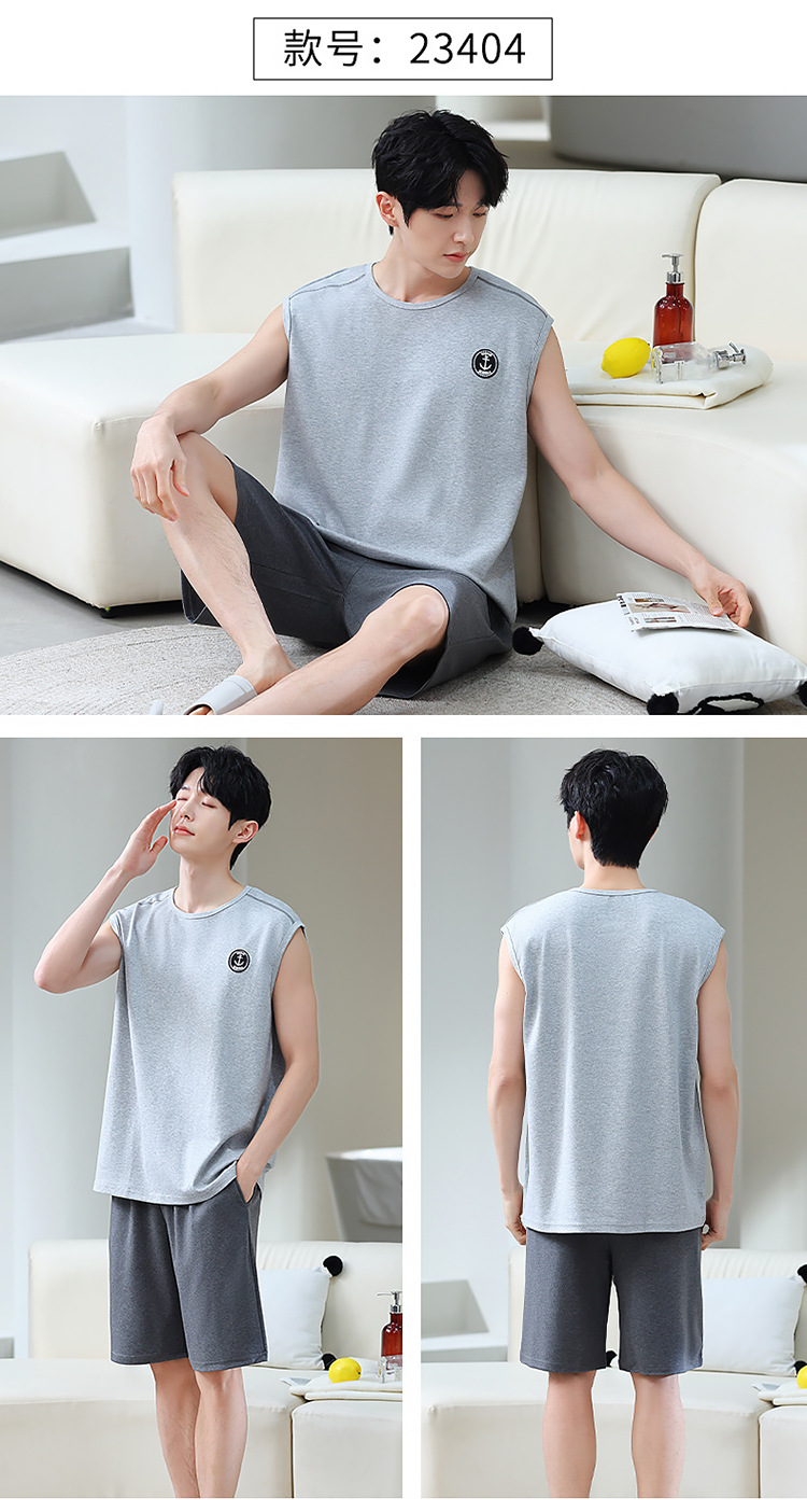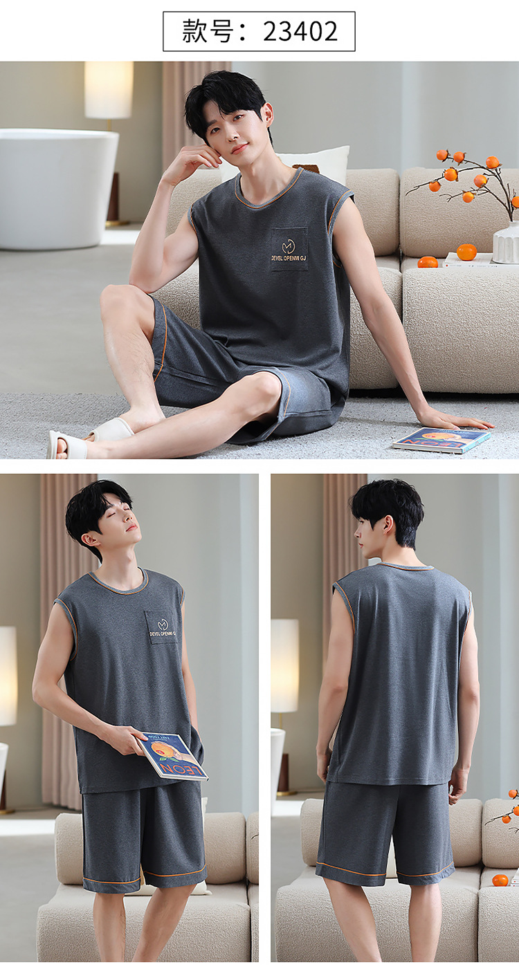 100% 면 잠옷 남성 여름 얇은 조끼 플러스 사이즈 청소년 격자 무늬 반바지 정장 홈웨어 겉옷