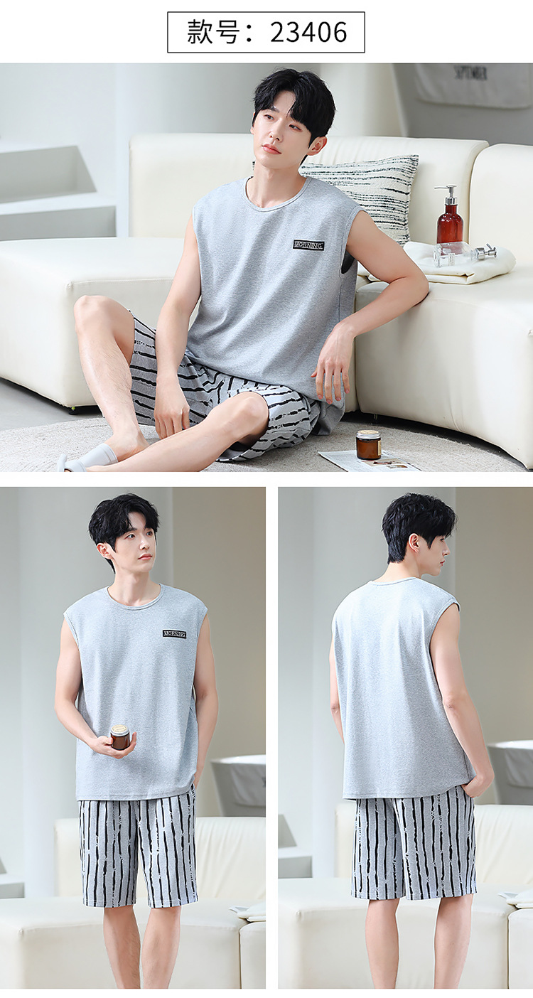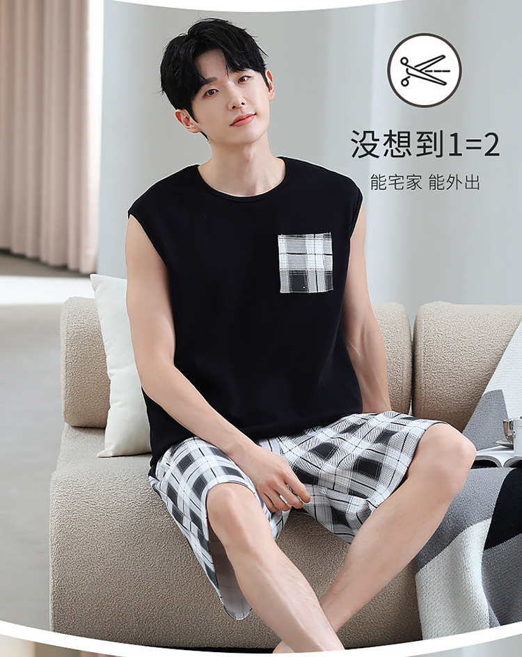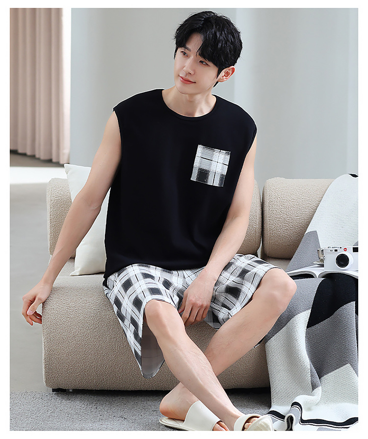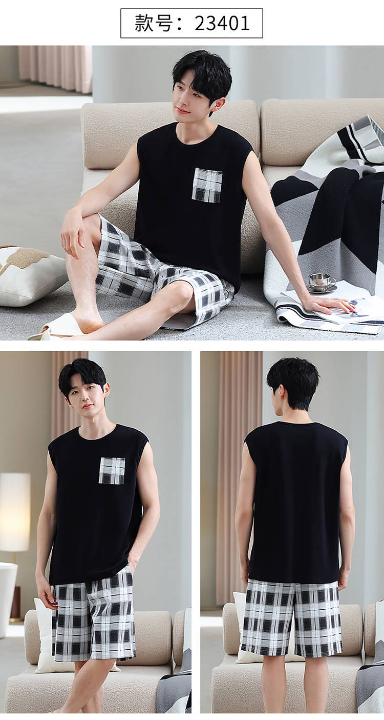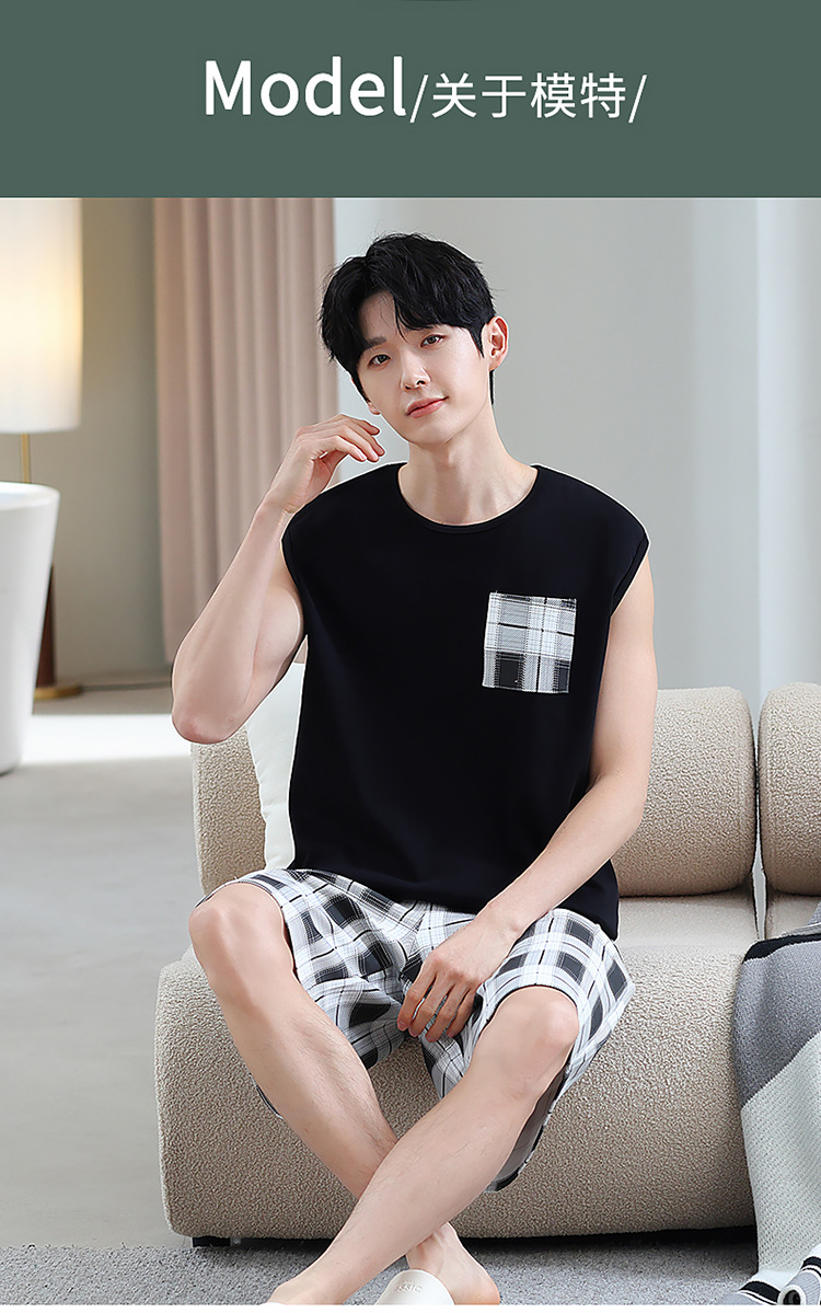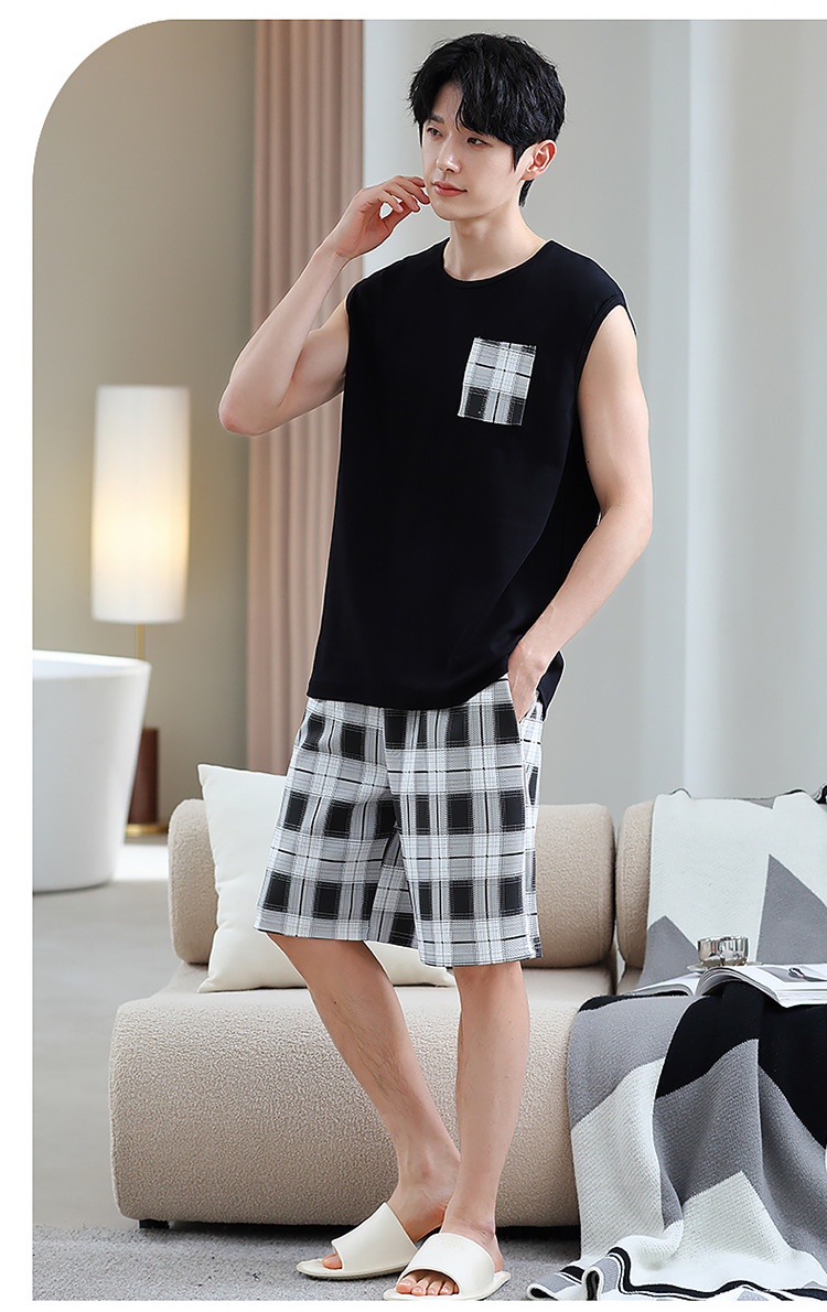 100% 면 잠옷 남성 여름 얇은 조끼 플러스 사이즈 청소년 격자 무늬 반바지 정장 홈웨어 겉옷스토어 가기