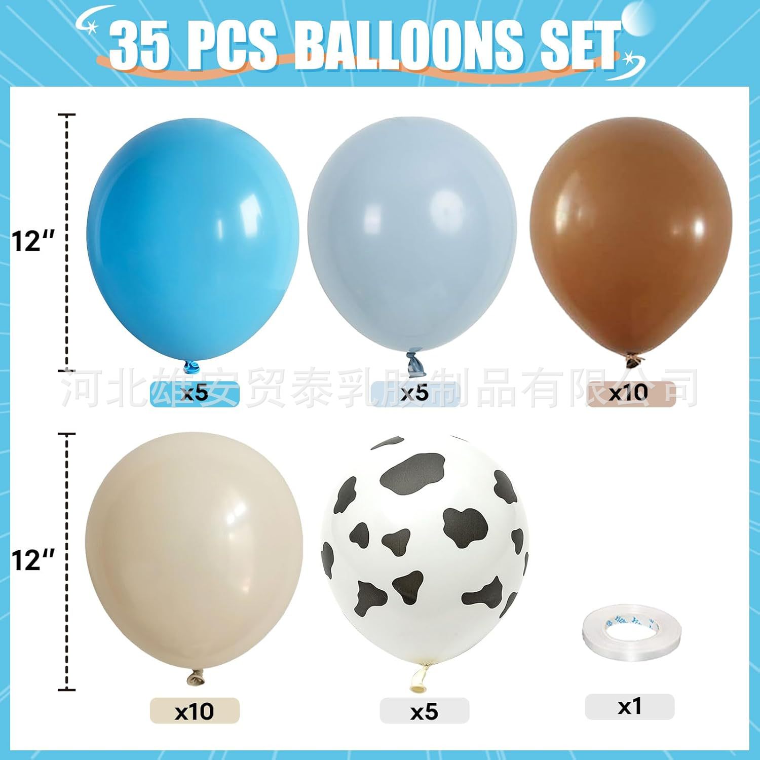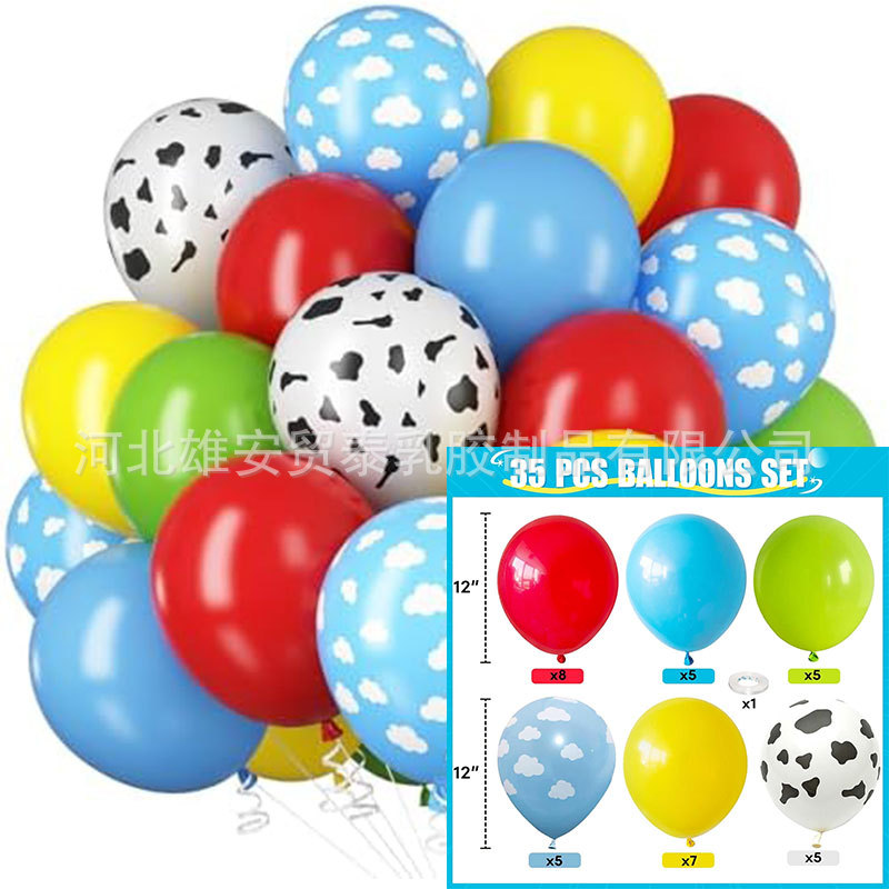 아마존 풍선 세트 12 인치 35pcs 우유 패턴 테마 풍선 장식 생일 파티 장면 레이아웃스토어 가기