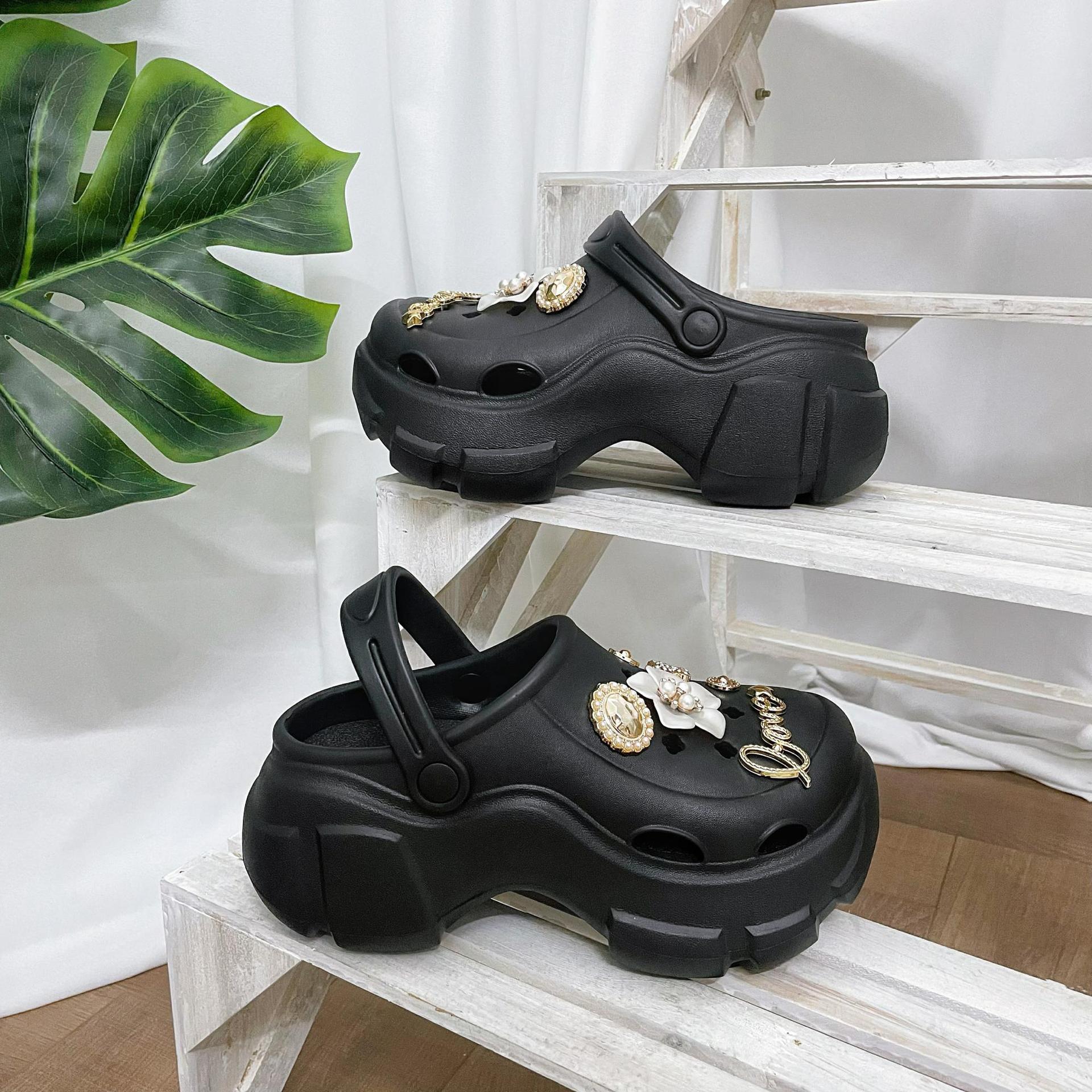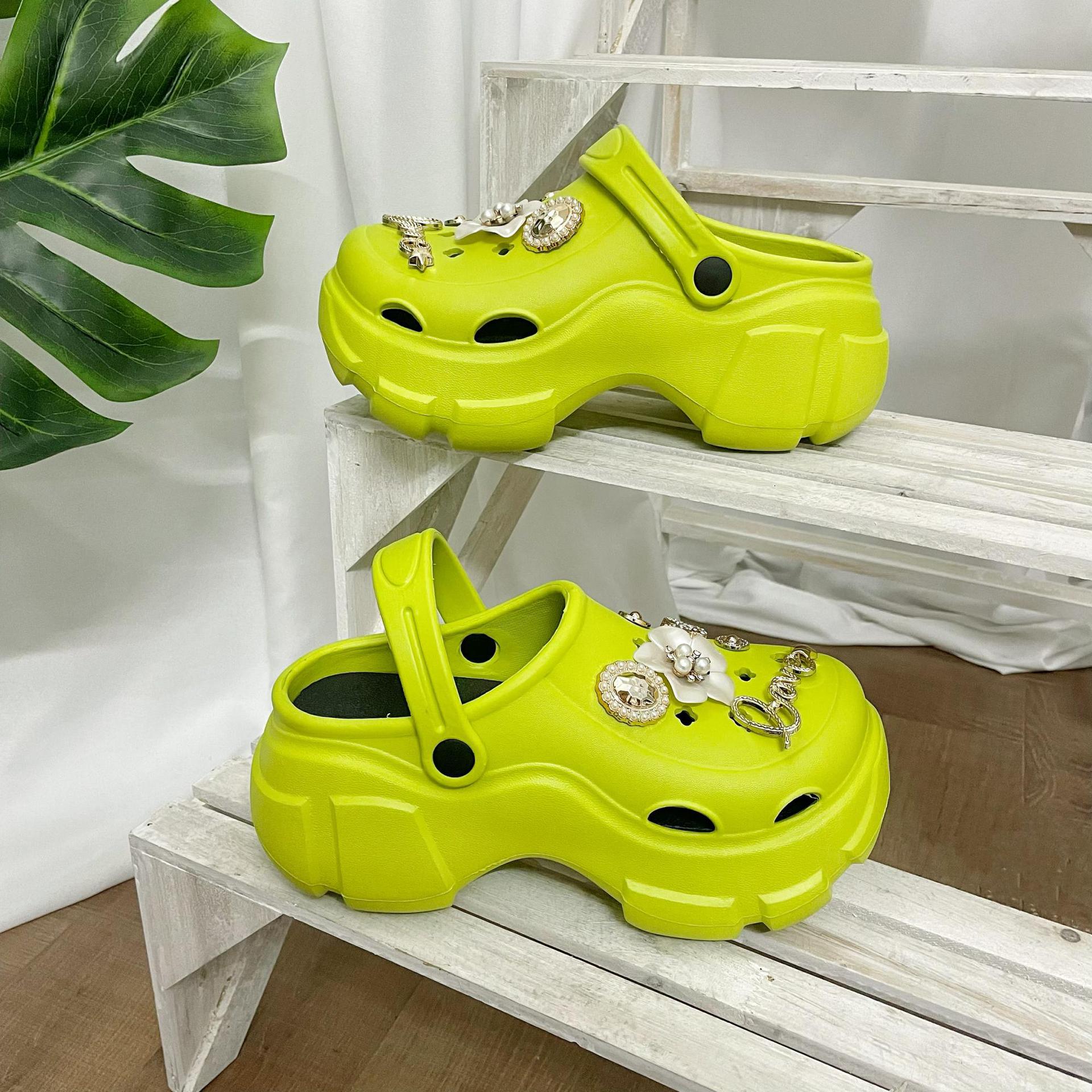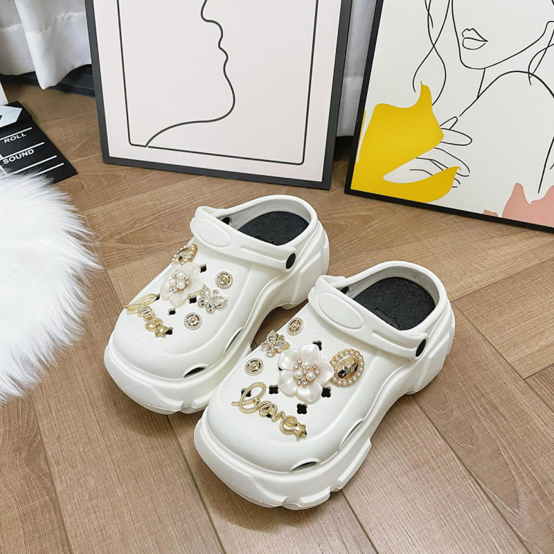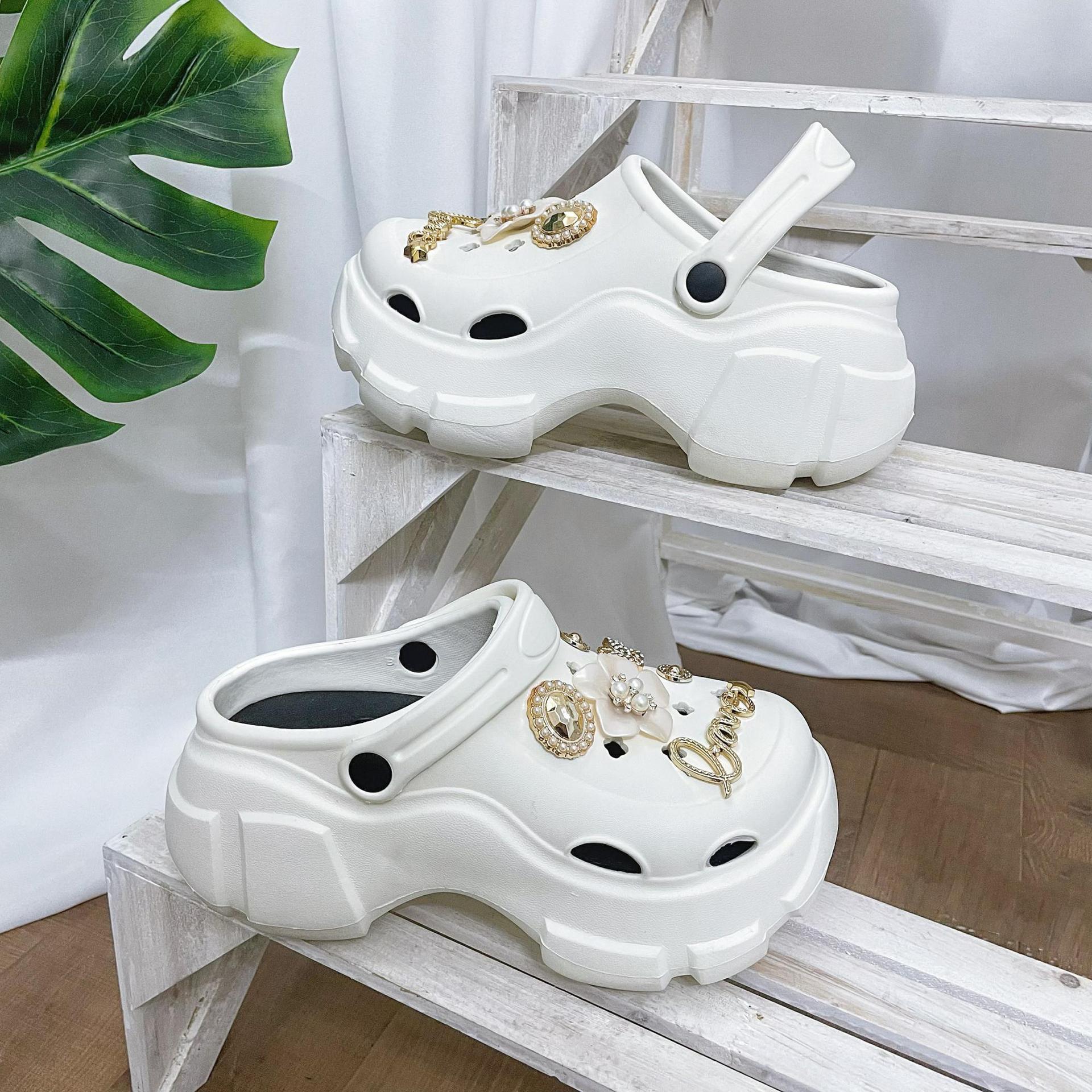 여성을위한 비치 동백 구멍 신발 여름 두꺼운 밑창 미끄럼 방지 여성 겉옷 여성 PVC 샌들 여성 여름 도매스토어 가기
