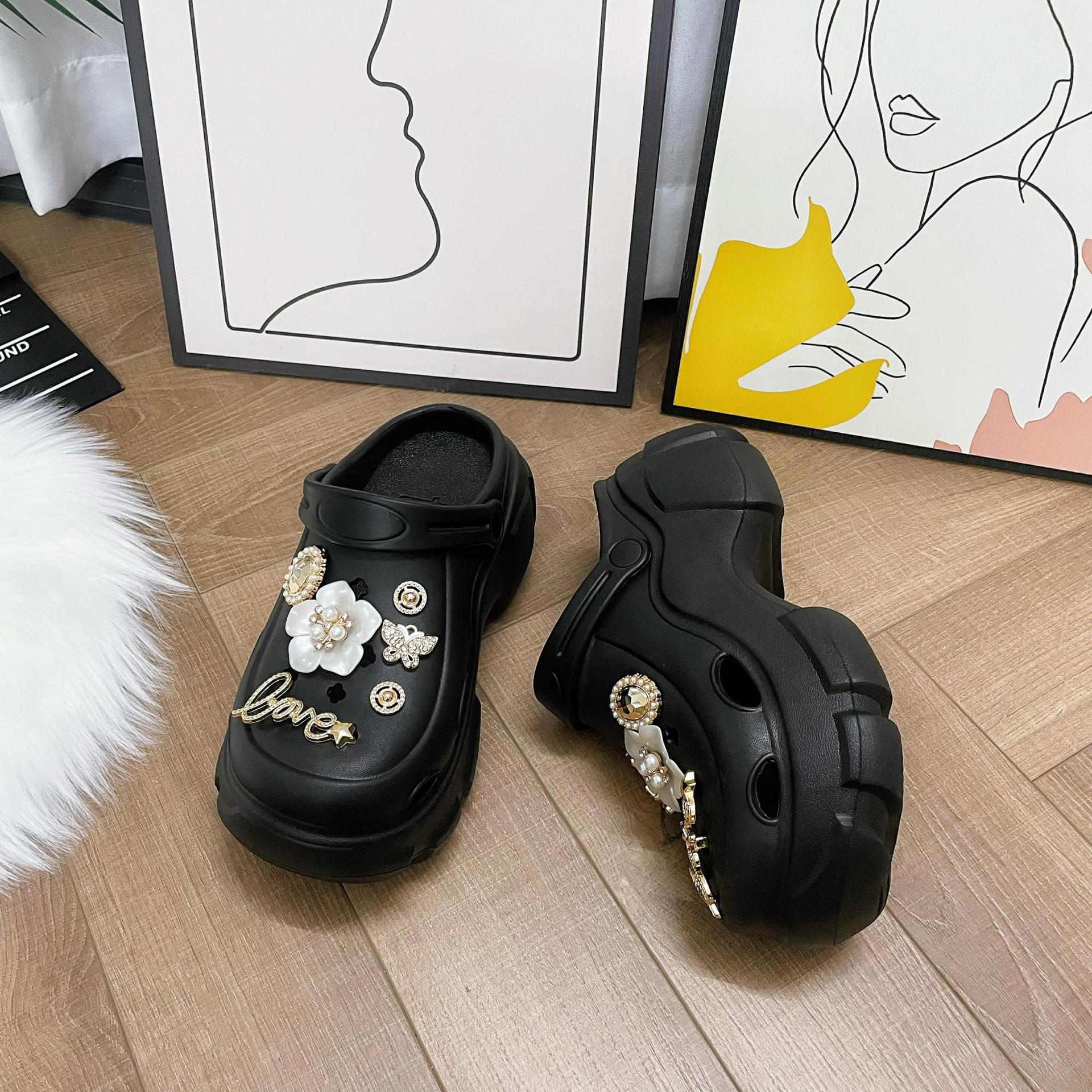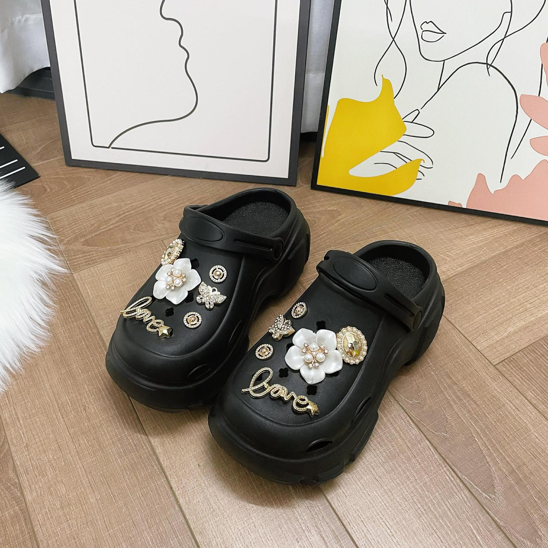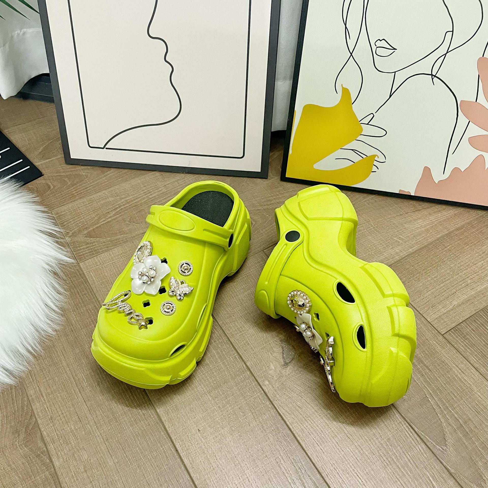 여성을위한 비치 동백 구멍 신발 여름 두꺼운 밑창 미끄럼 방지 여성 겉옷 여성 PVC 샌들 여성 여름 도매스토어 가기
