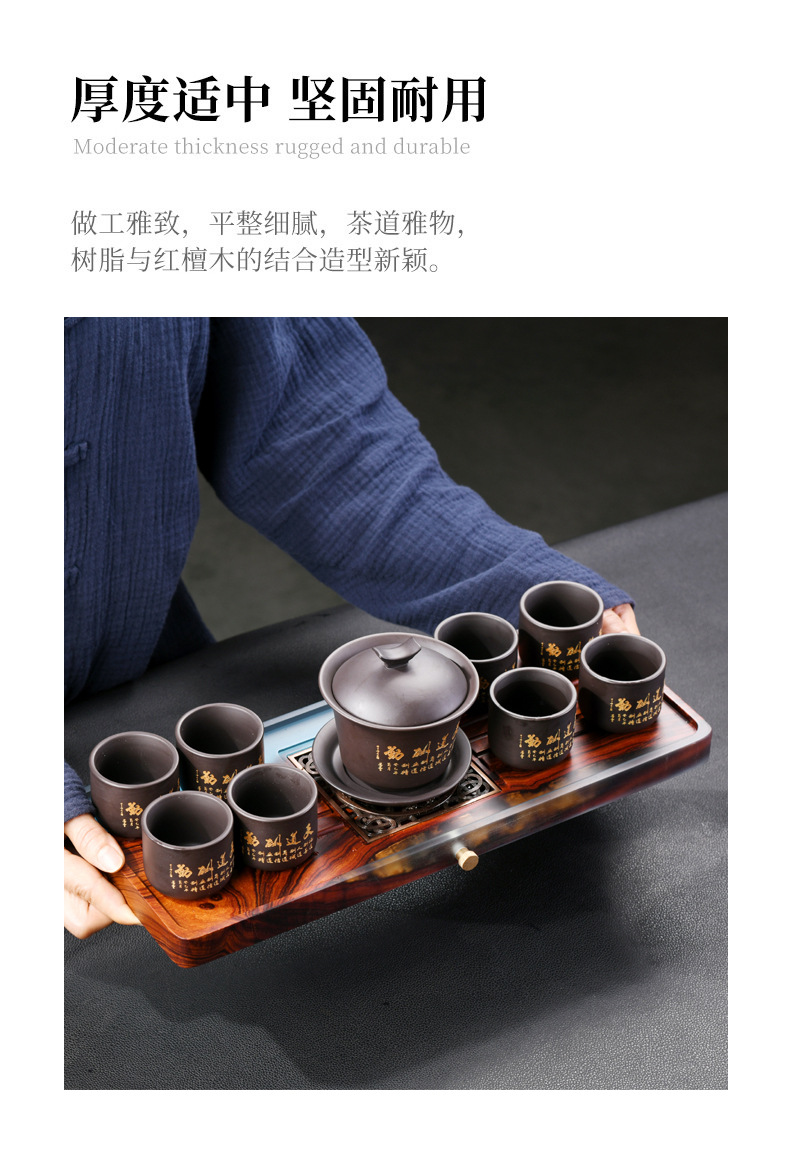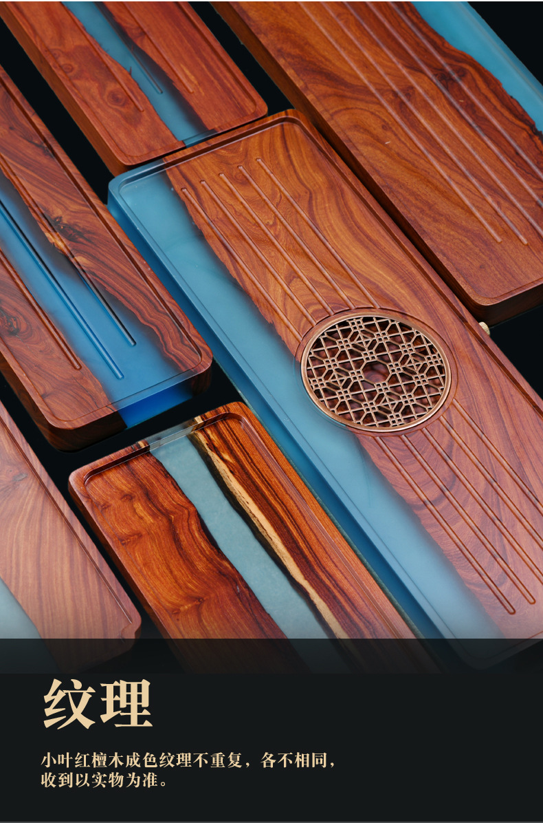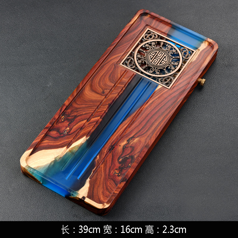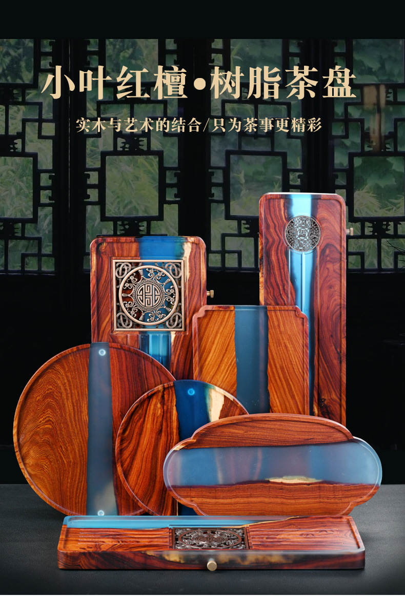 수지 작은 잎 붉은 백단 단단한 나무 접시 차 트레이 직사각형 대형 가정용 배수 건조 차 테이블 차 세트 트레이 나무 접시스토어 가기