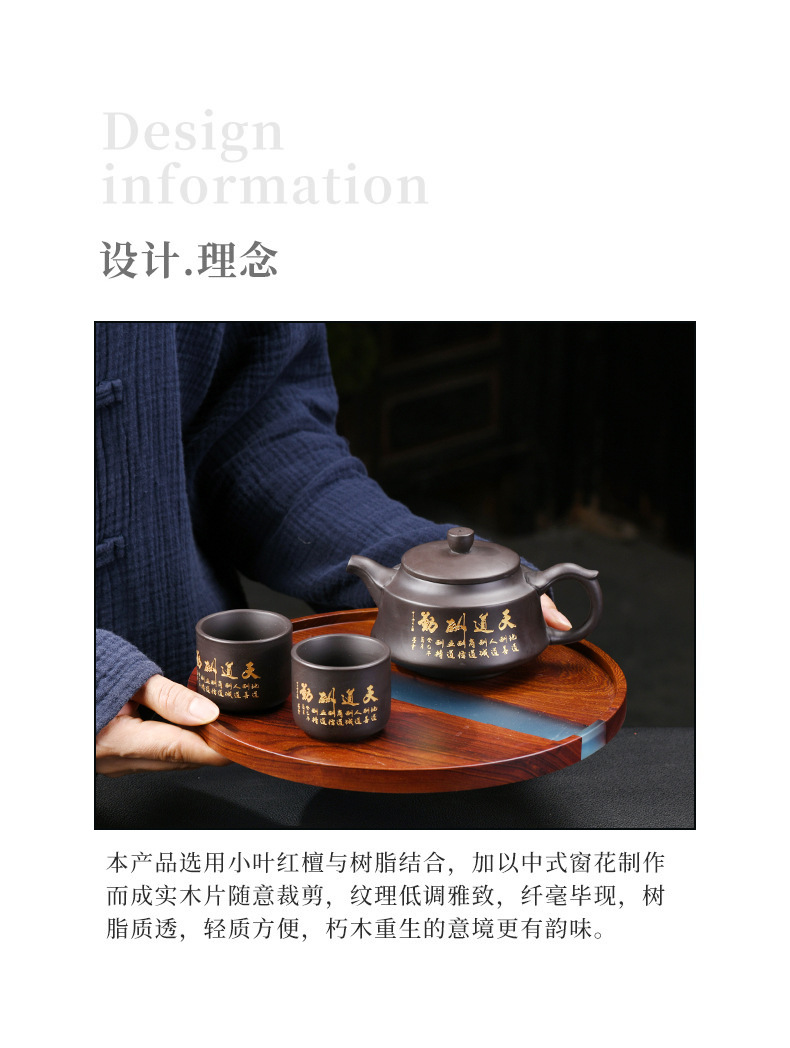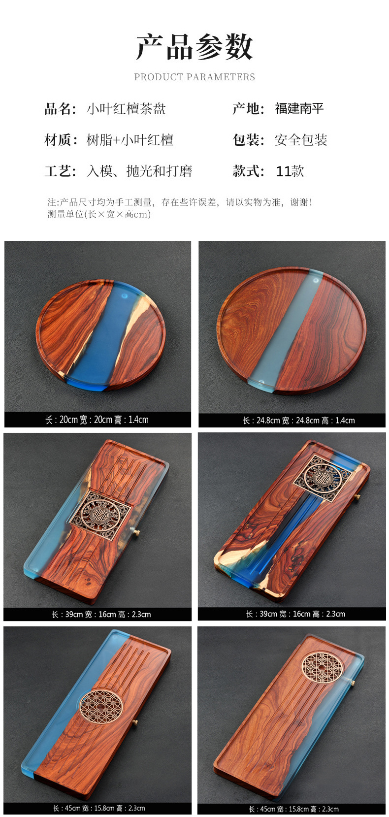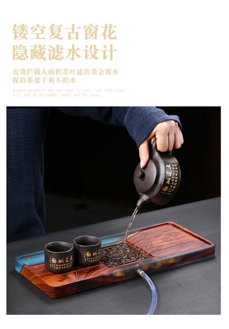 수지 작은 잎 붉은 백단 단단한 나무 접시 차 트레이 직사각형 대형 가정용 배수 건조 차 테이블 차 세트 트레이 나무 접시스토어 가기