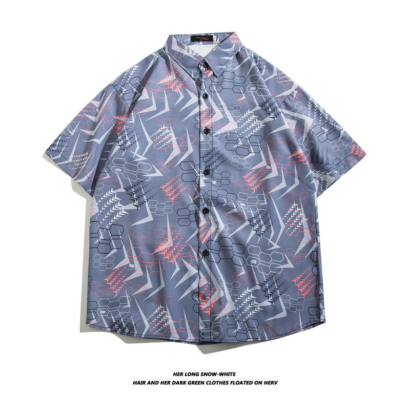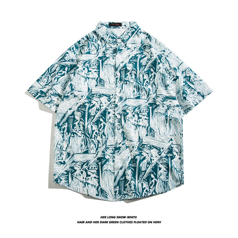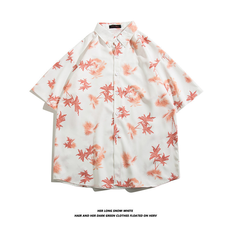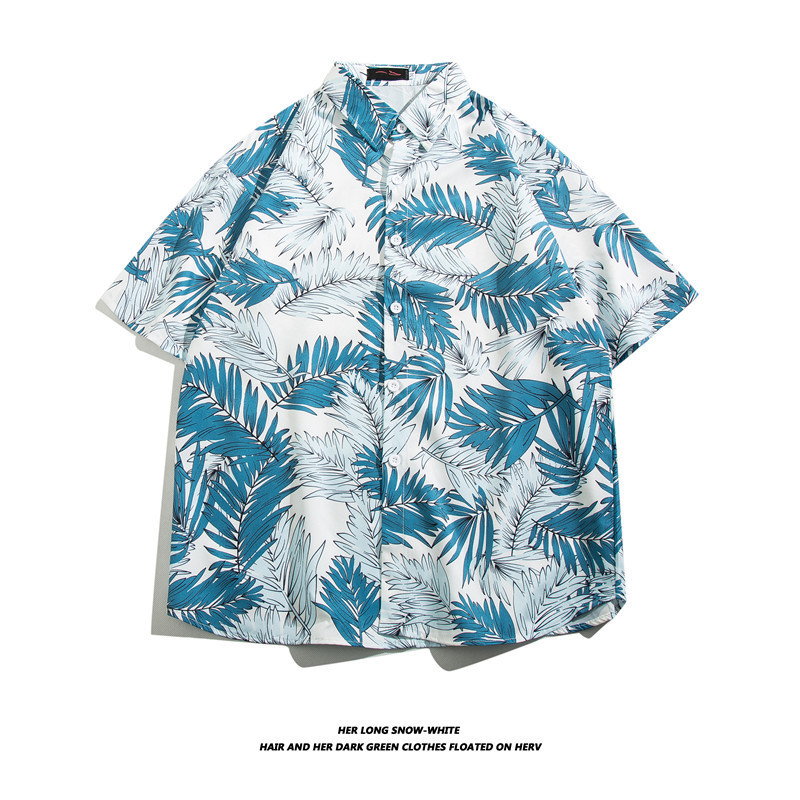 하와이 반팔 셔츠 남자의 유행 브랜드 반팔 셔츠 남자의 여름 해변 꽃 셔츠 커플의 느슨한 셔츠스토어 가기