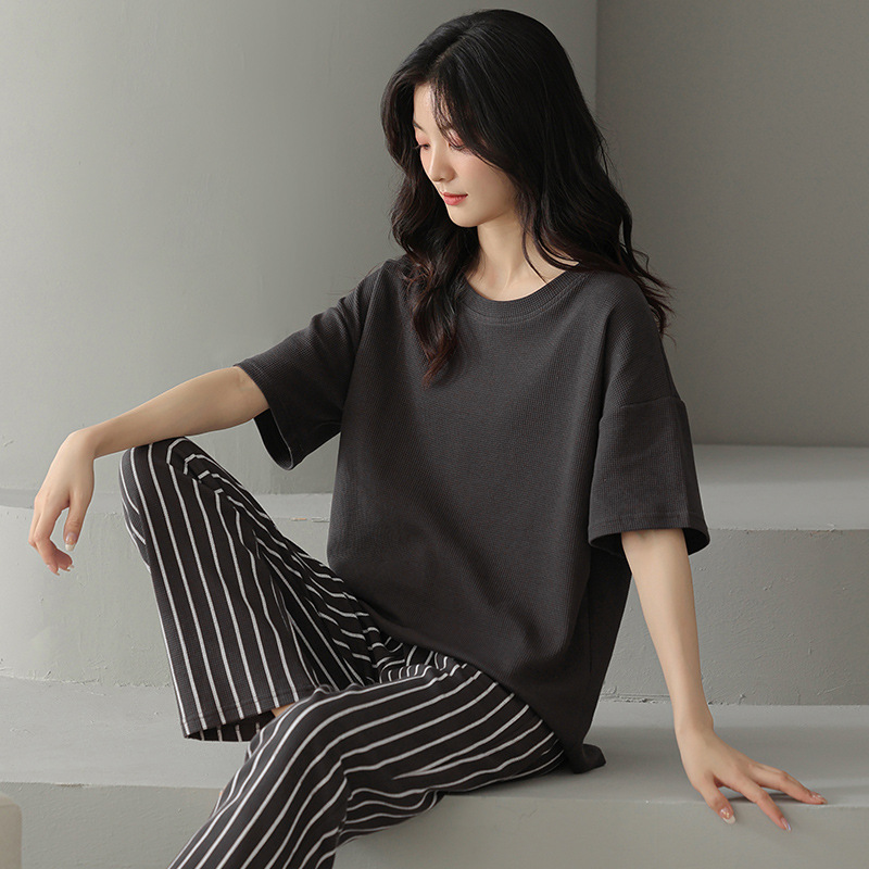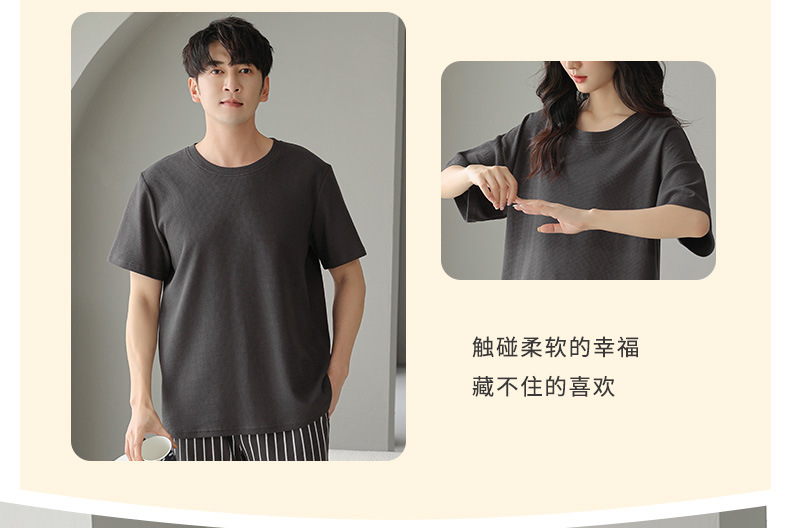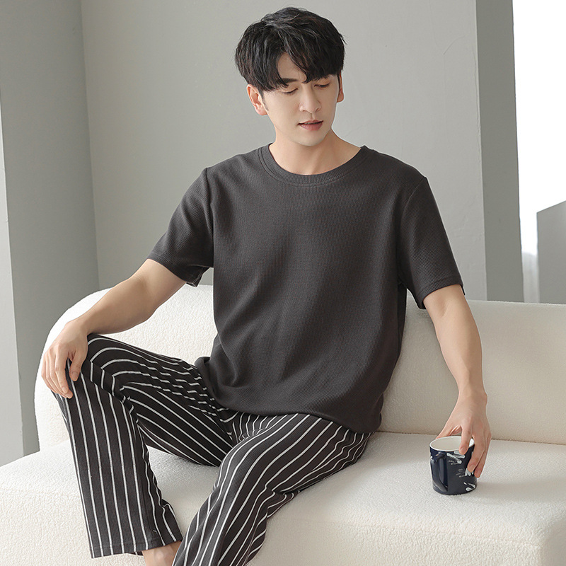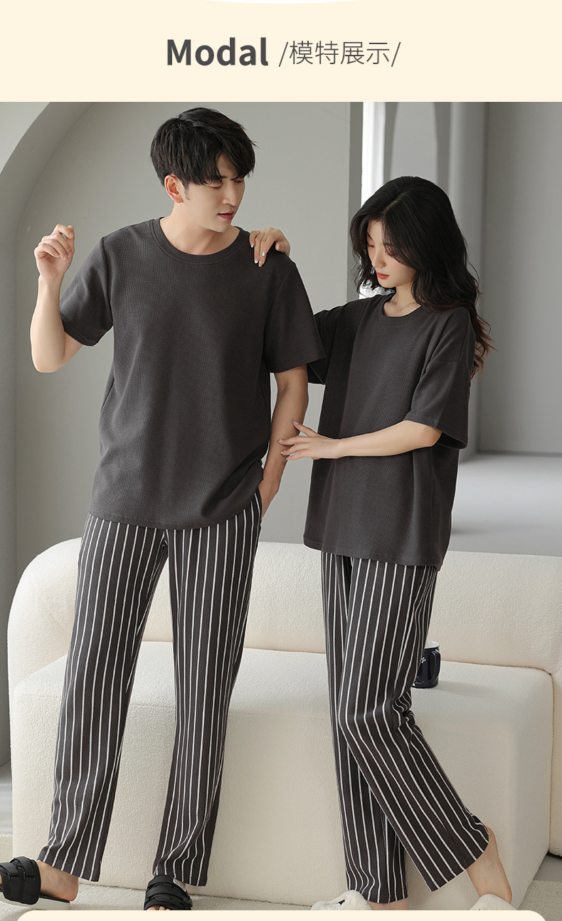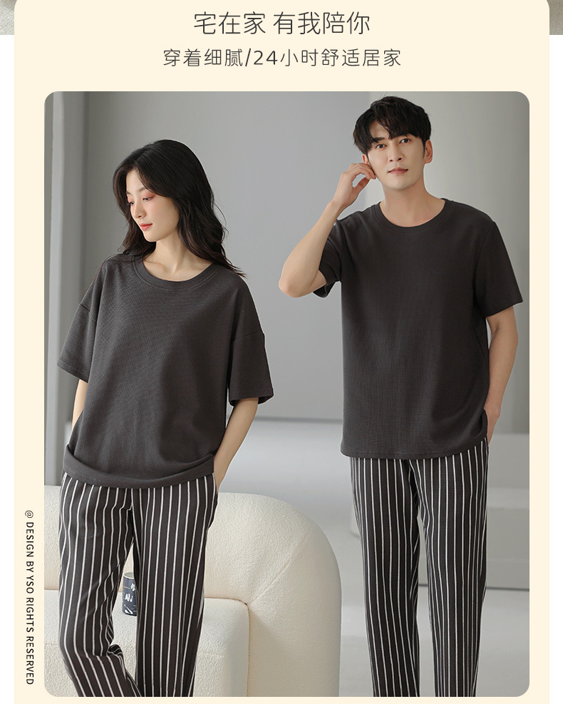 남성과 여성을 위한 커플 잠옷 봄과 여름 와플 순면 반팔 바지 캐주얼 여름 간단한 홈웨어 세트