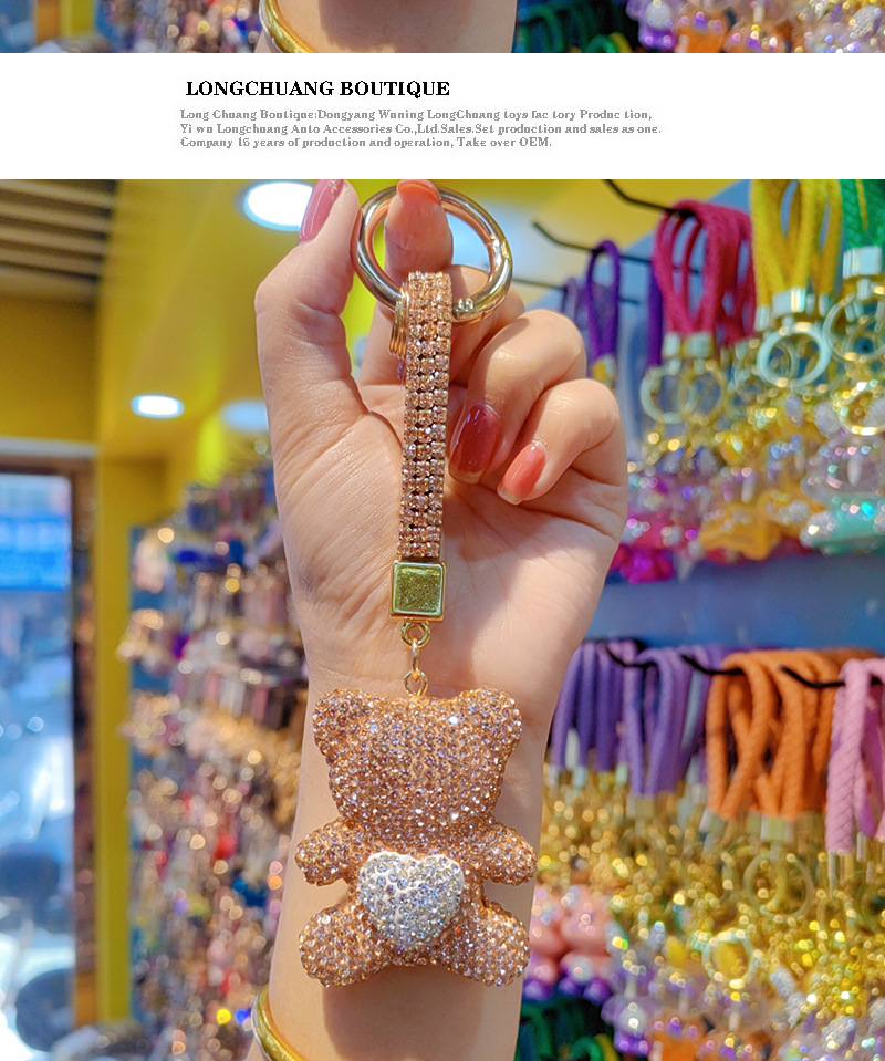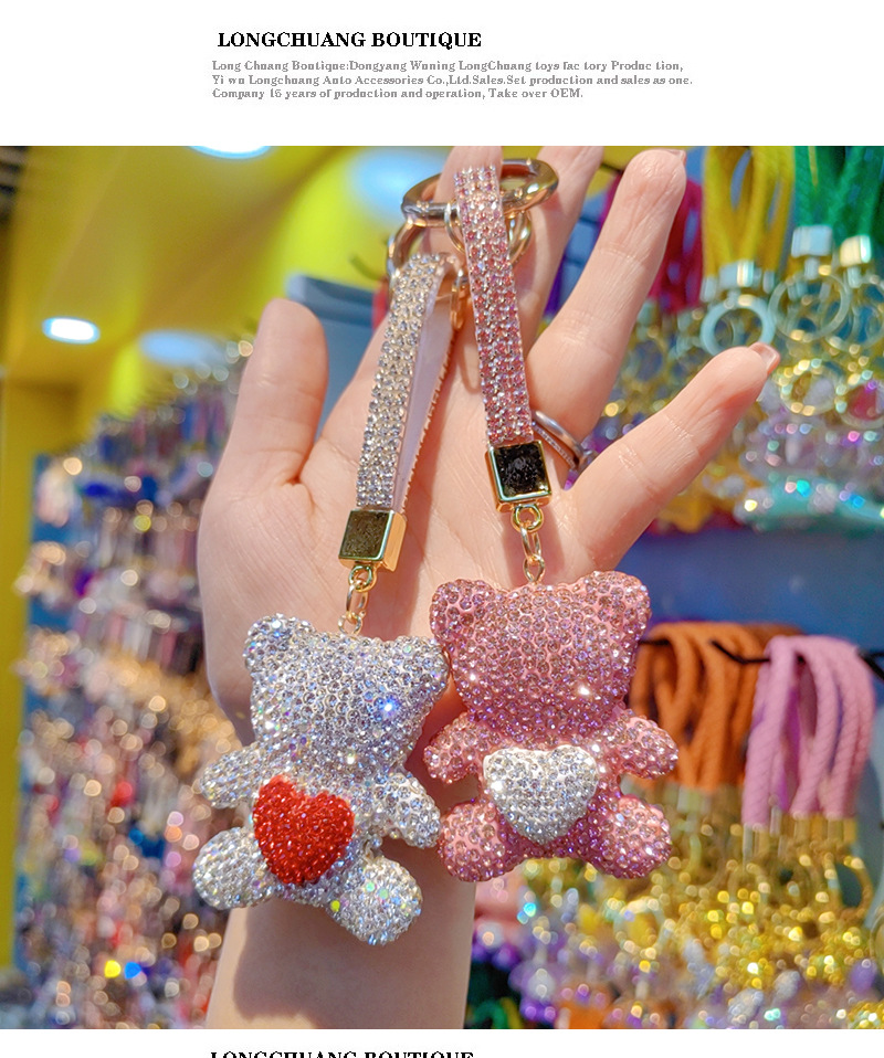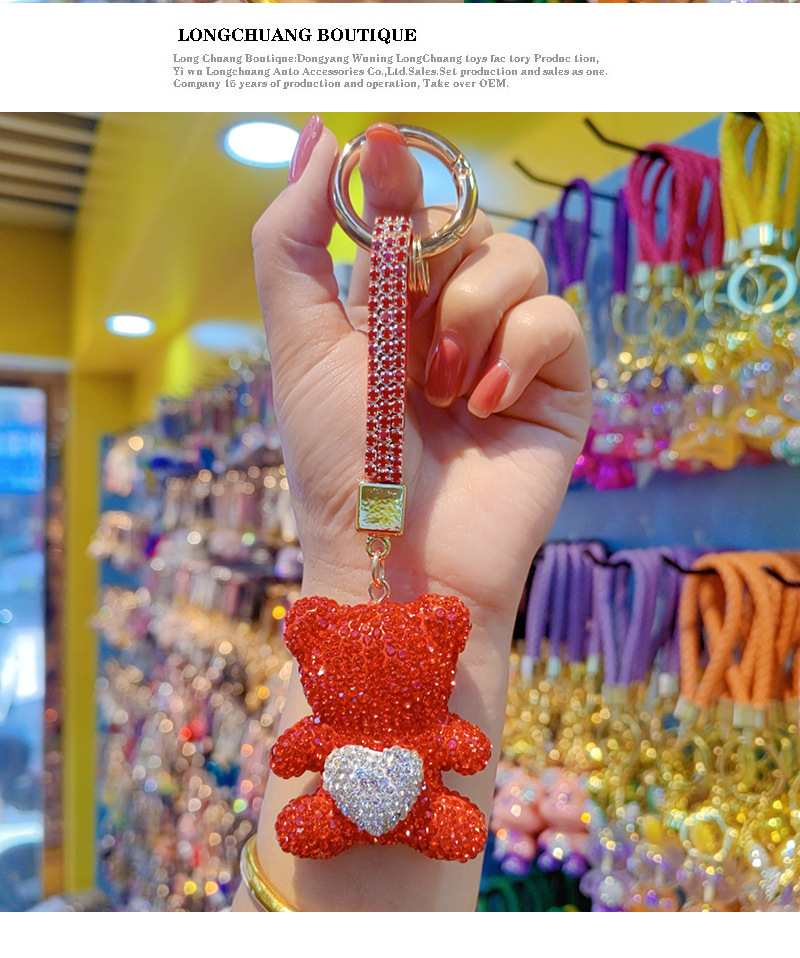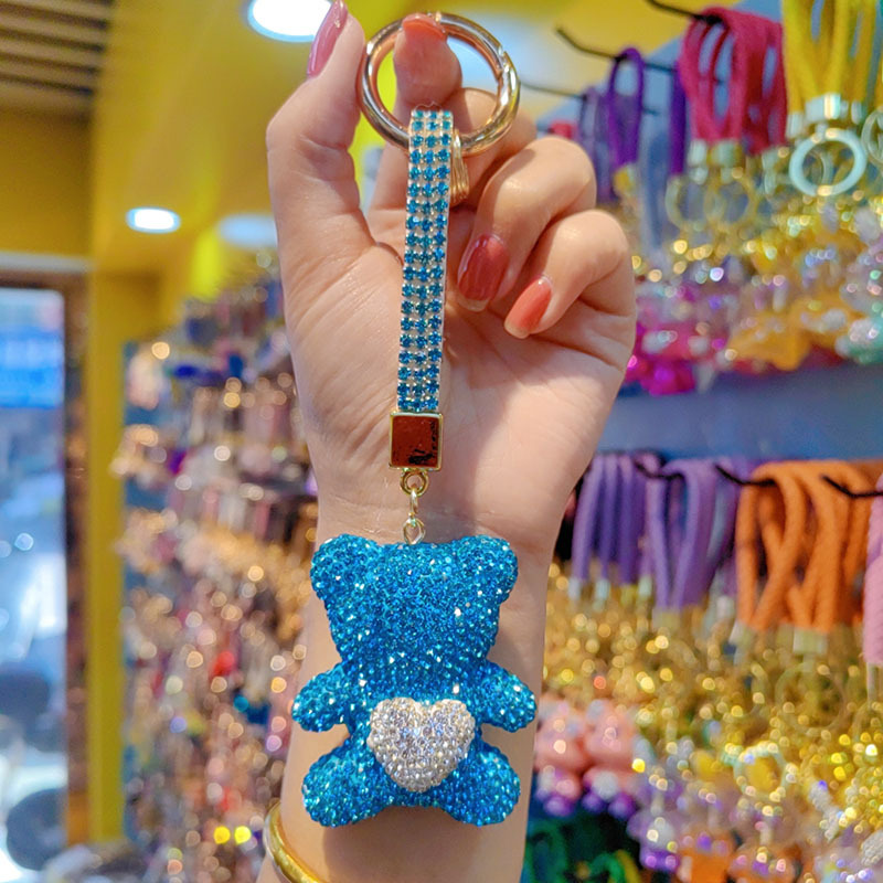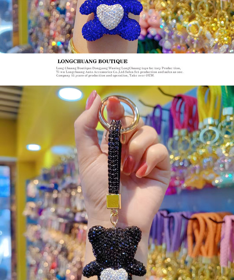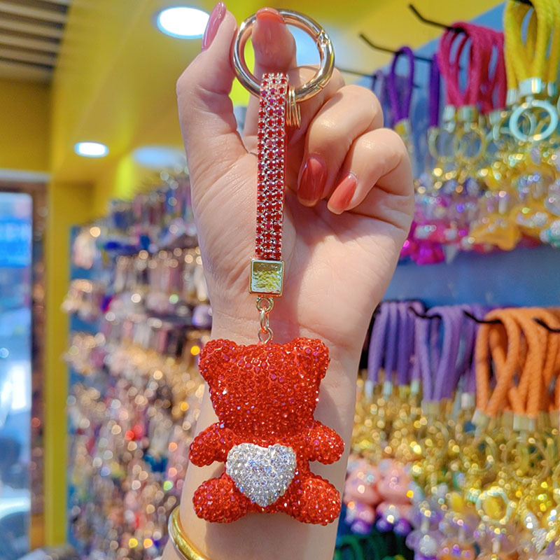 도자기 진흙 전체 다이아몬드 곰 사랑 키 체인 귀여운 연인 곰 가방 체인 자동차 열쇠 고리 펜던트 보석 도매스토어 가기